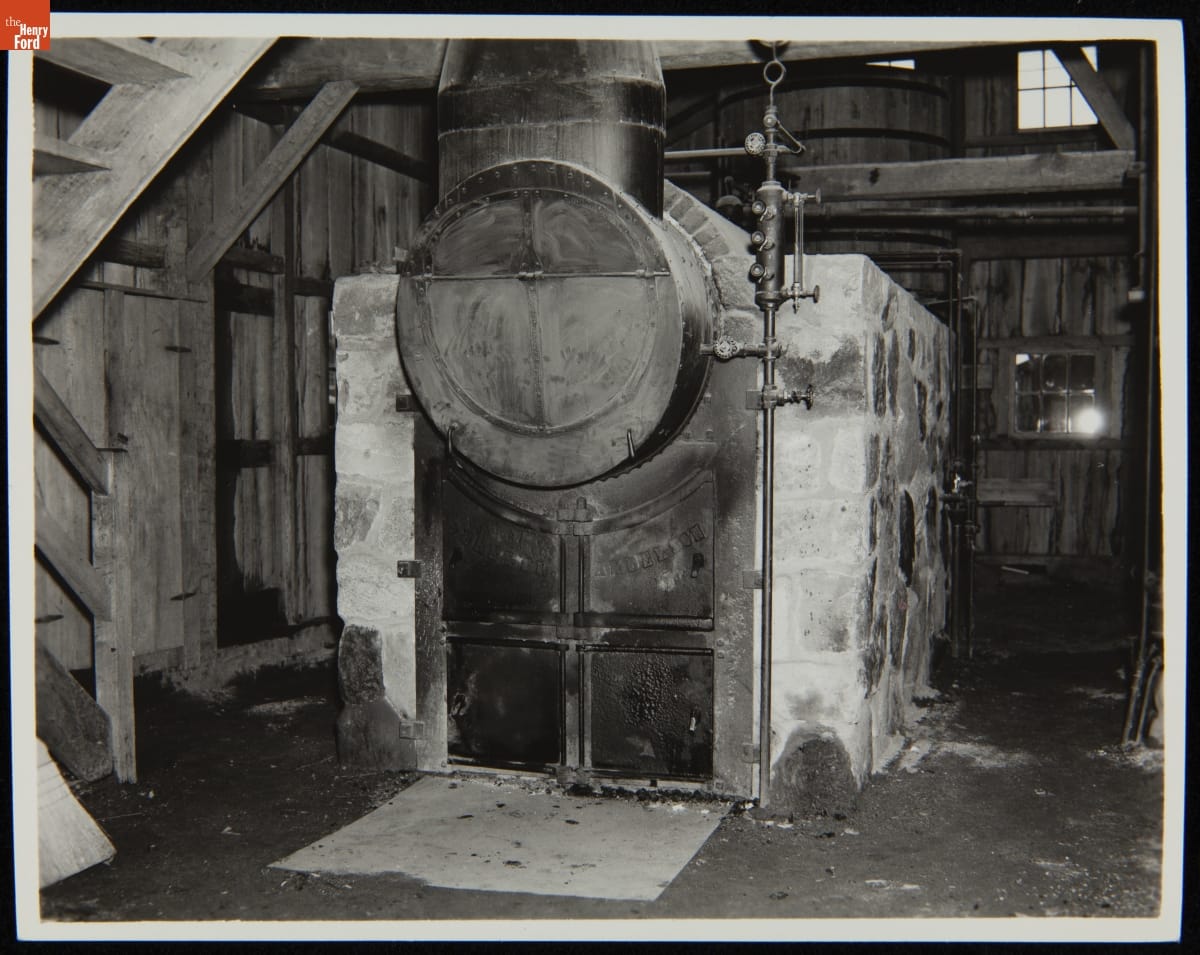 Boiler inside the Tripp Sawmill in Greenfield Village, 1932-1940