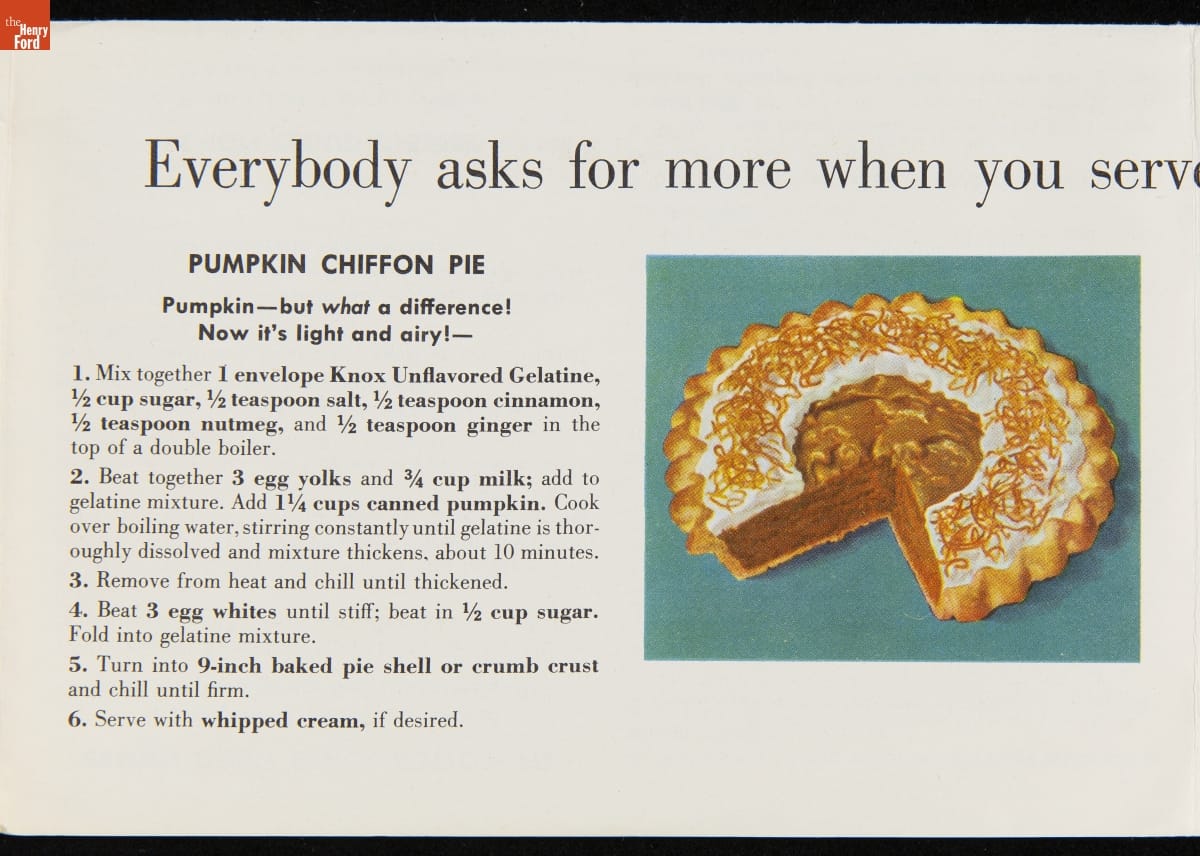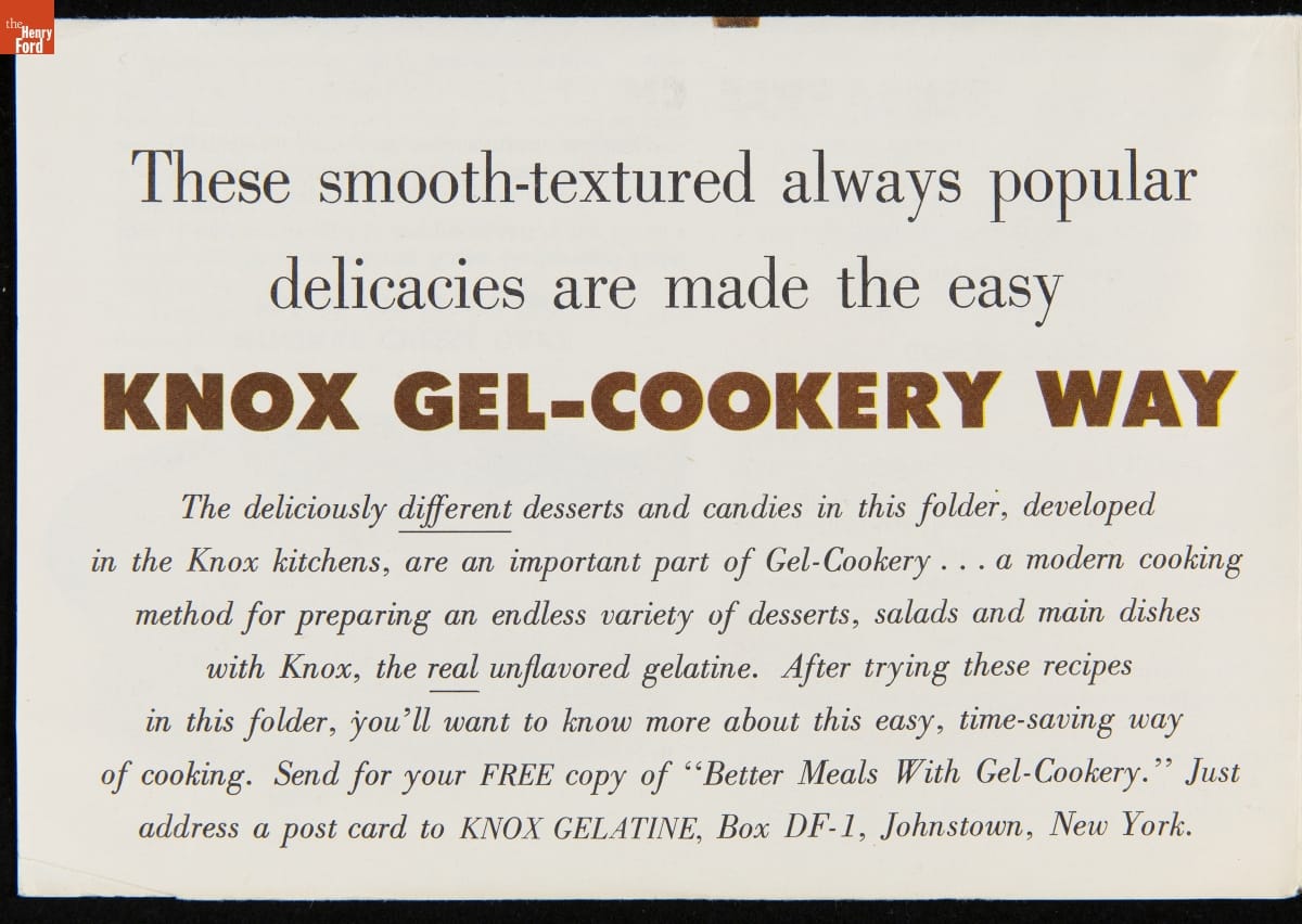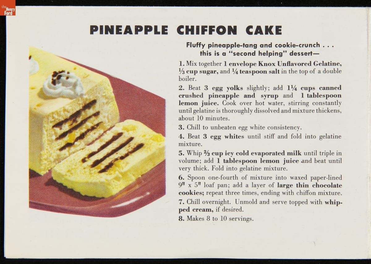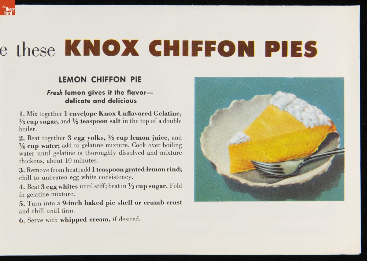 Recipe Leaflet, "Knox Gelatine Co. Delicious Chiffon-Light Desserts: Extra Special to Serve... Extra-Easy to Make," circa 1955