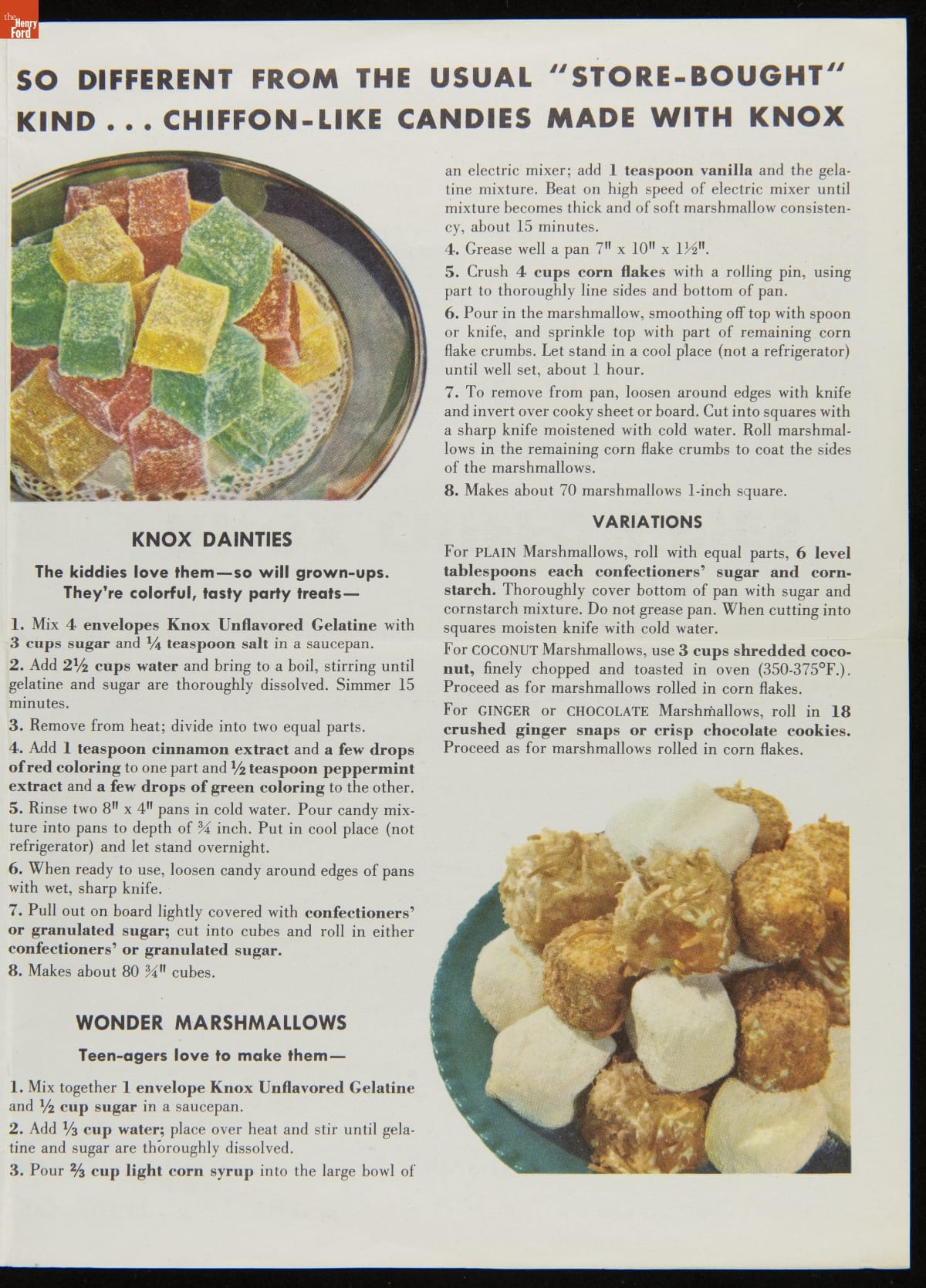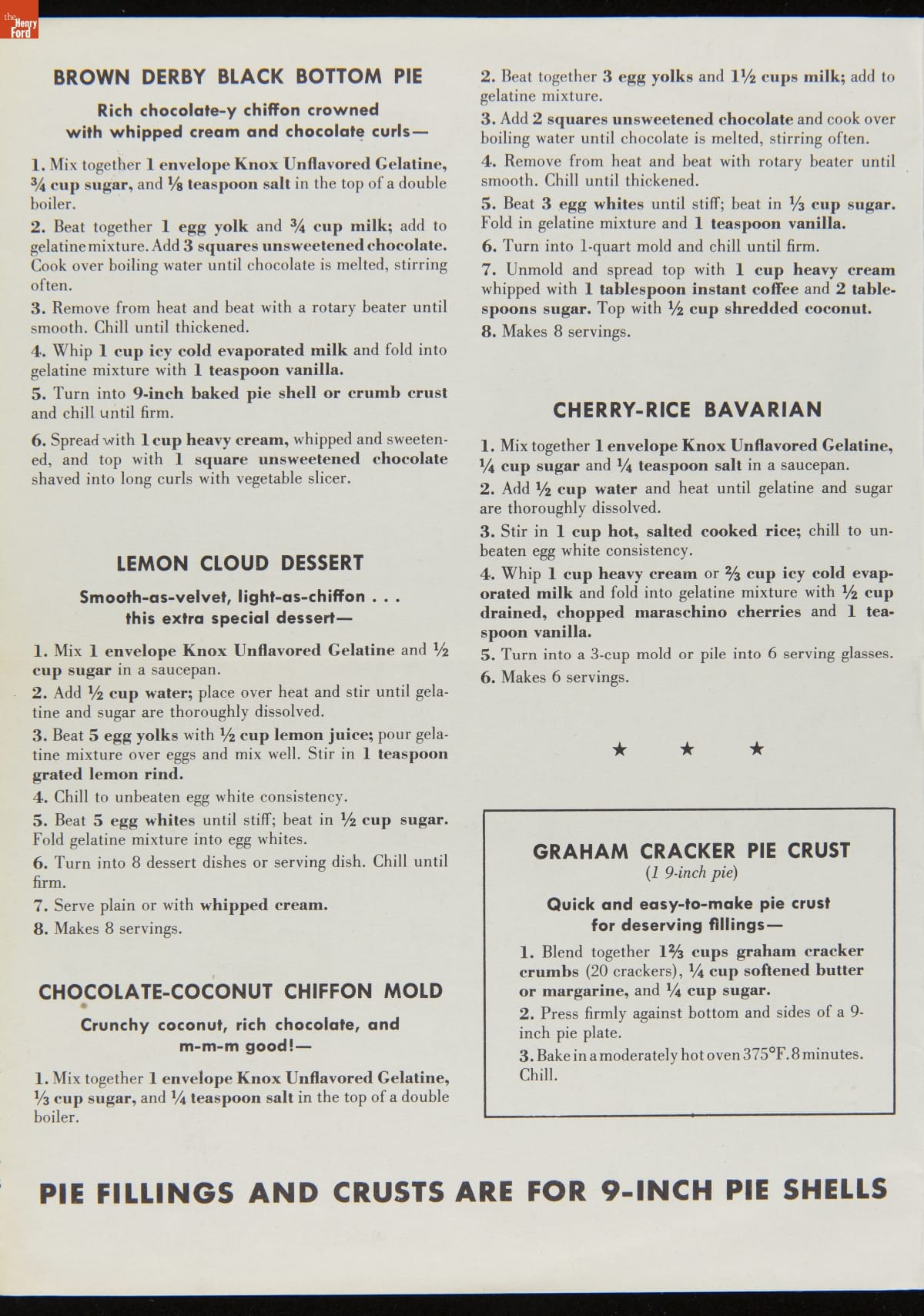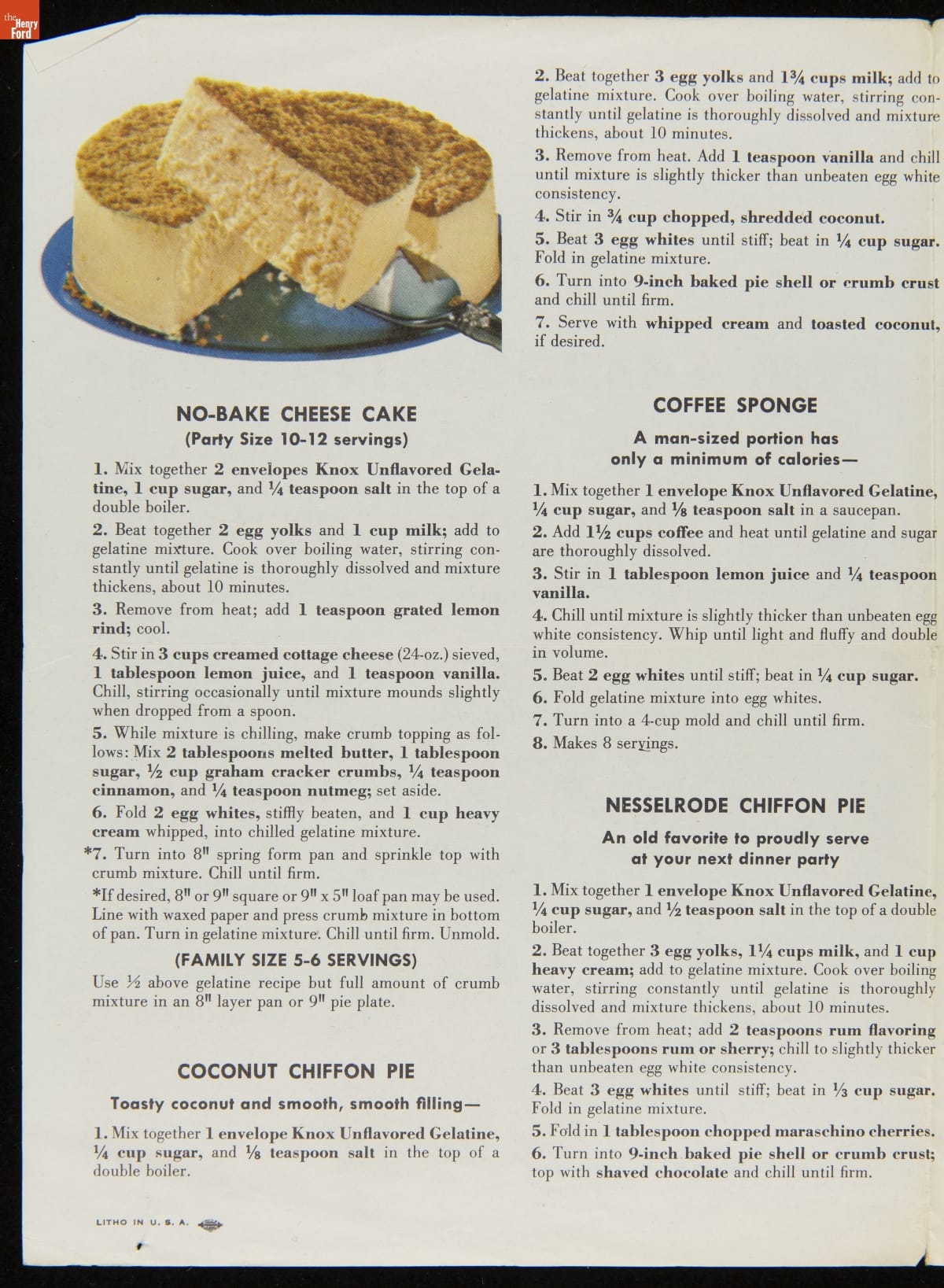 Recipe Leaflet, "Knox Gelatine Co. Delicious Chiffon-Light Desserts: Extra Special to Serve... Extra-Easy to Make," circa 1955