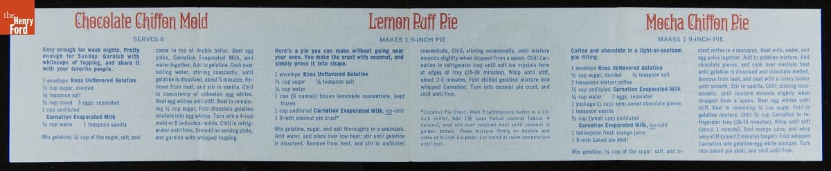Recipe Leaflet, "Desserts with a Delicate Air," circa 1968