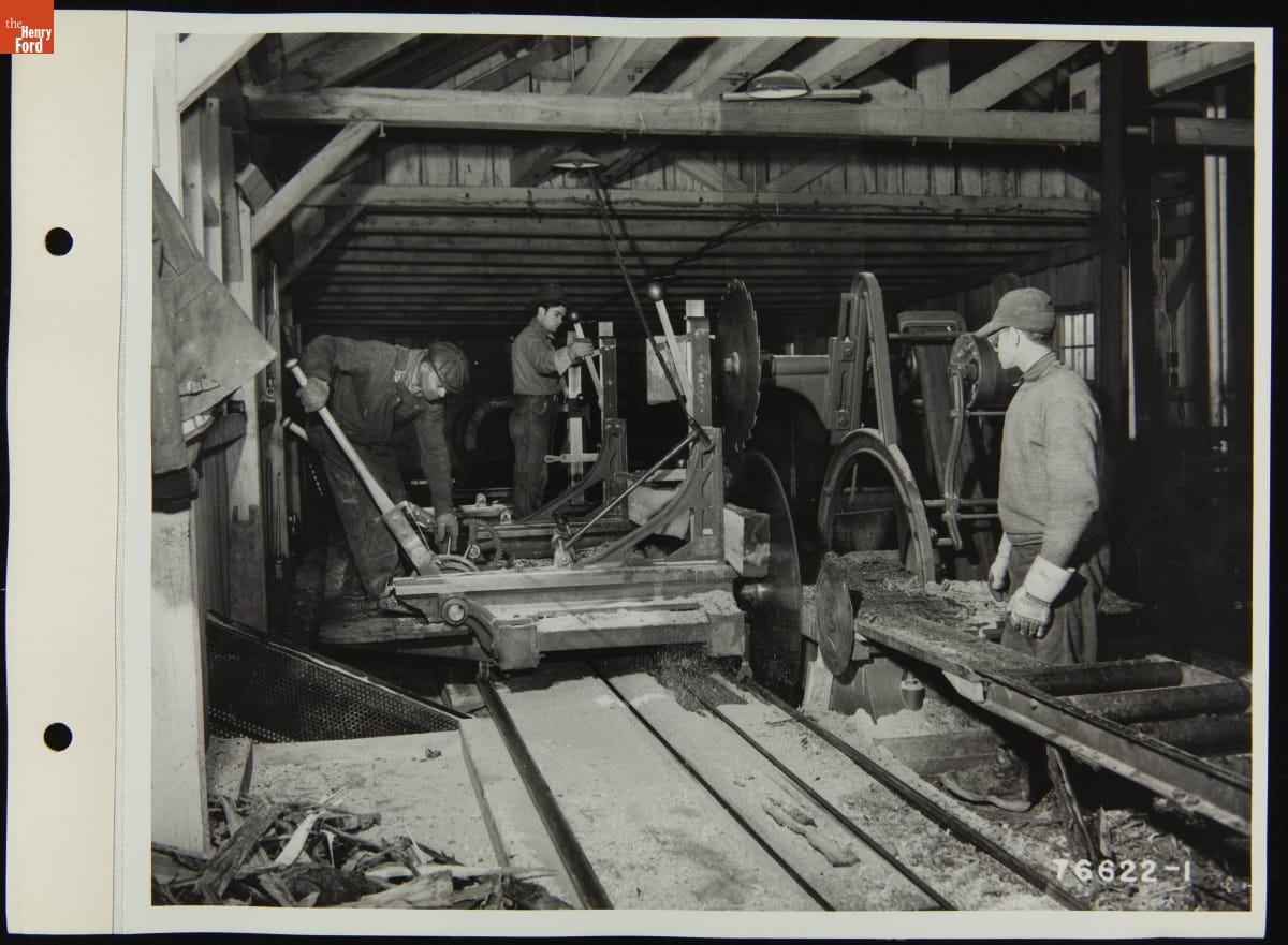 Men Working at a Sawmill during Construction of the Willow Run Bomber Plant, March 5, 1942