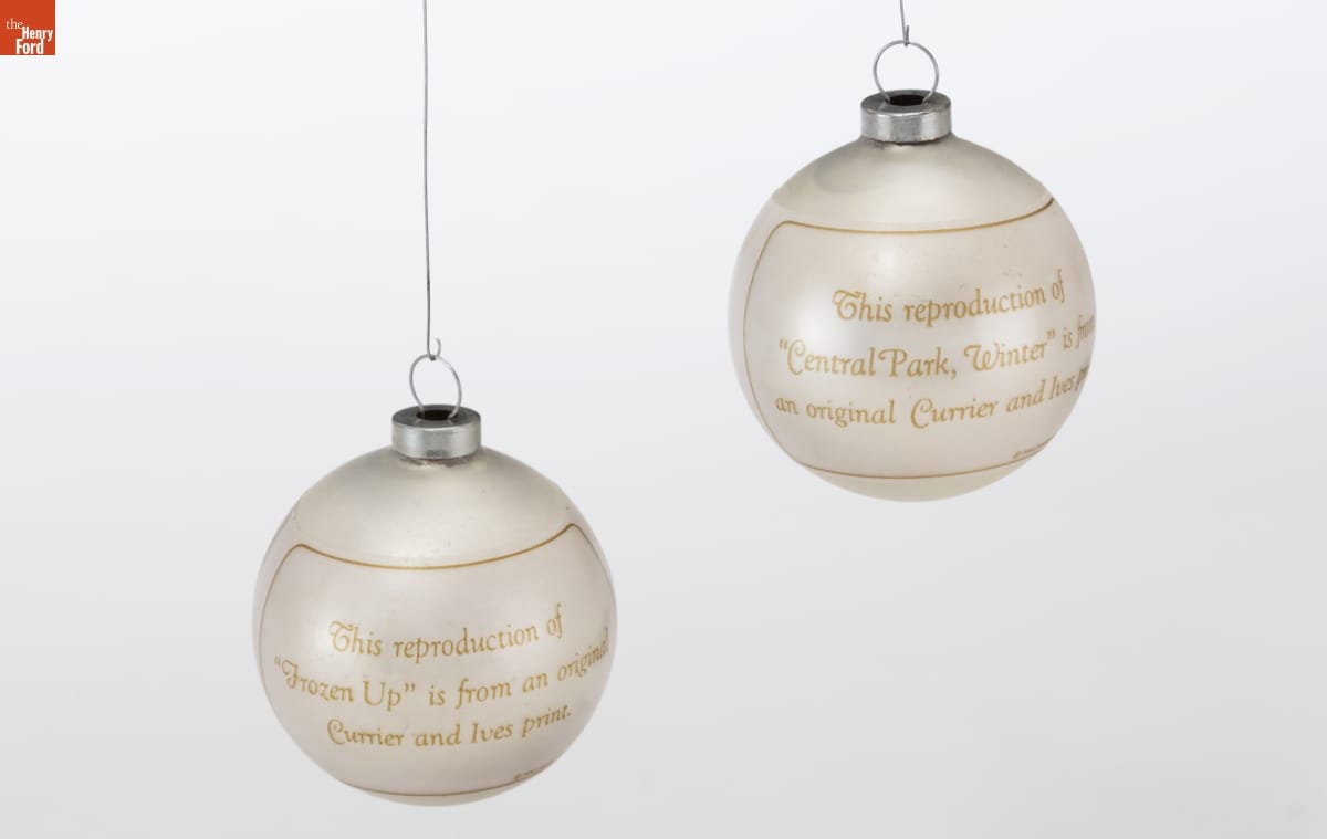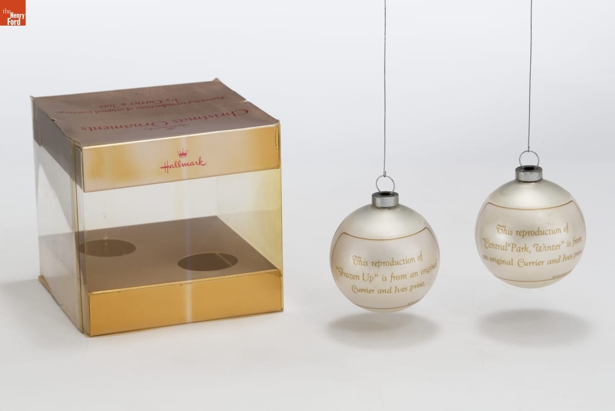Original artwork by Currier & Ives. Ornament designed by Hallmark Cards, Inc. in Kansas City, Missouri. Made in the United States.