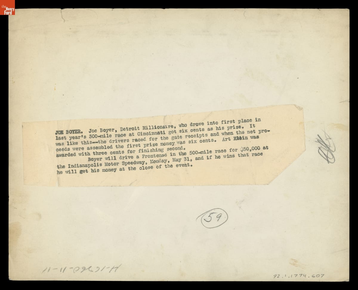 Race Car Driver Joe Boyer, circa 1920