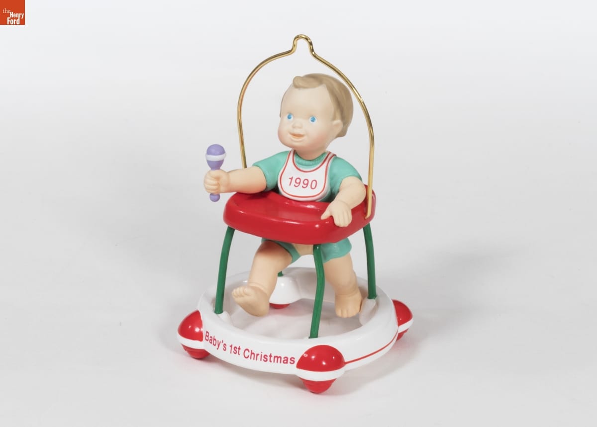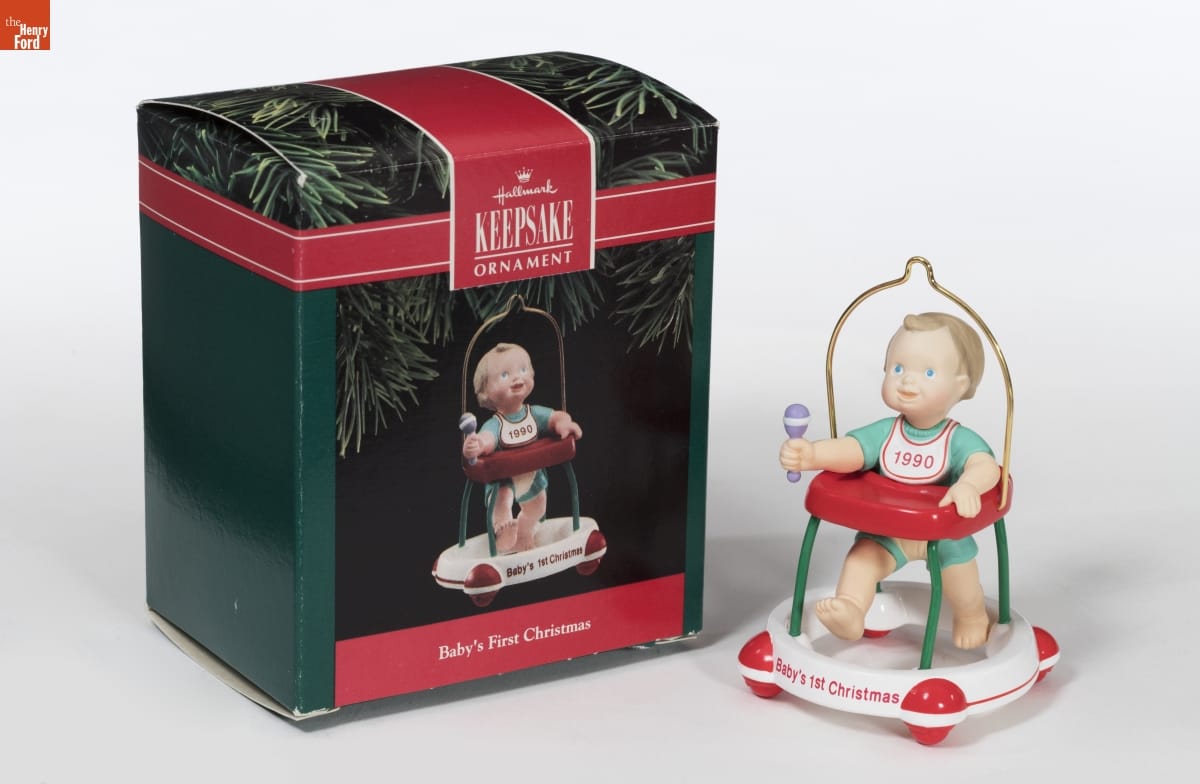 Already known for greeting cards, Hallmark introduced a line of Christmas ornaments in 1973. The company's annual release of an increasing array of ornaments appealed to customers' interest in marking memories and milestones as well as expressing one's personality and unique tastes. Purchasing an ornament like this one would bring back happy family memories of that event year after year.