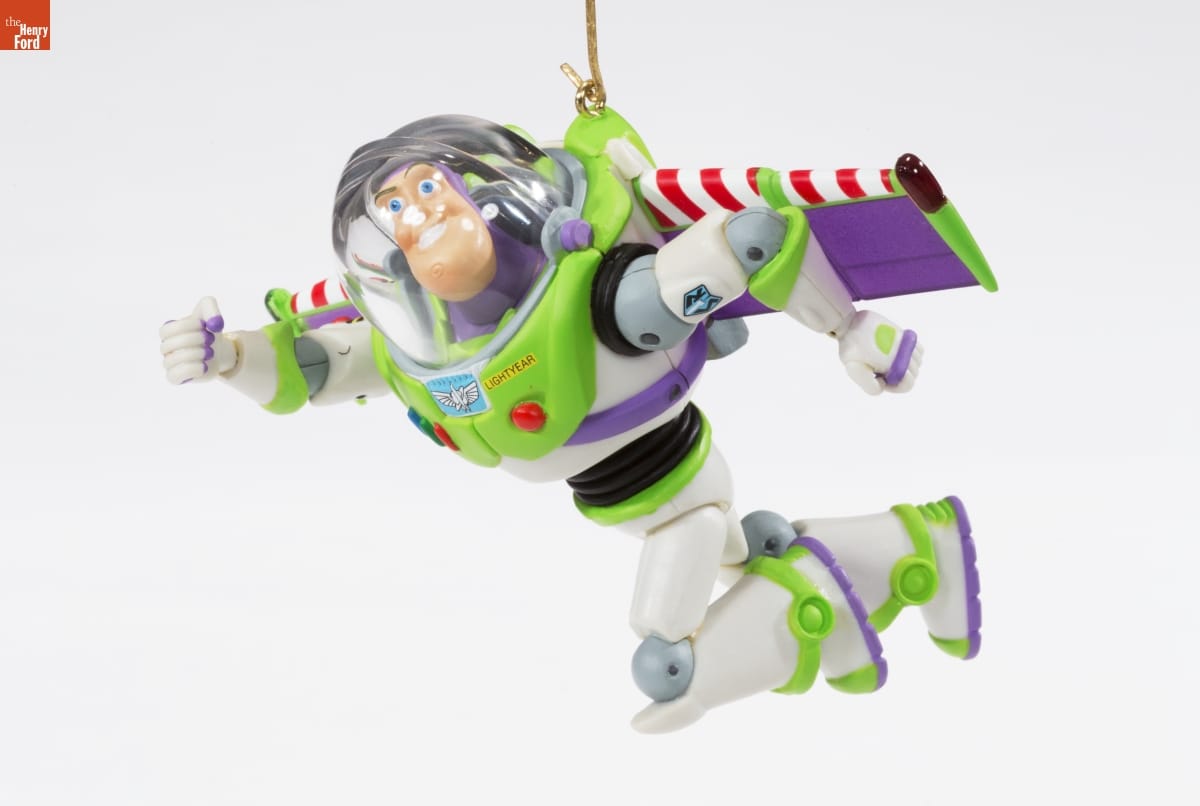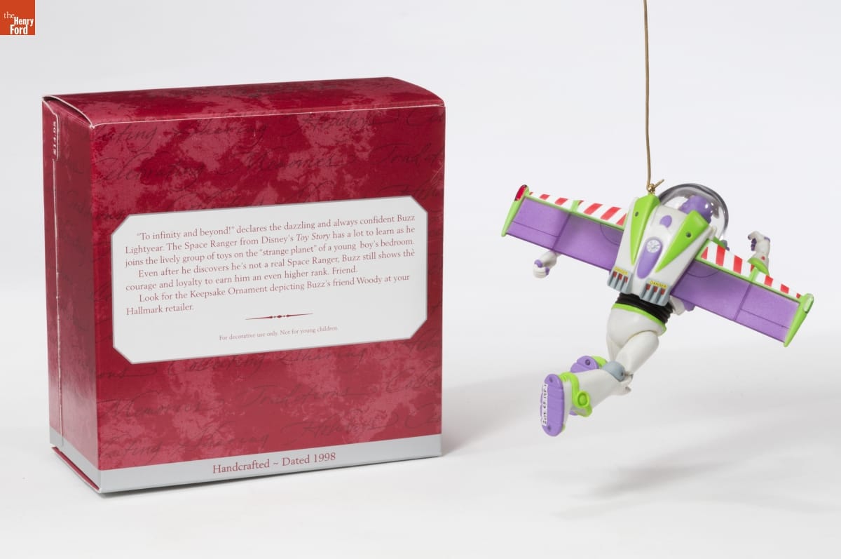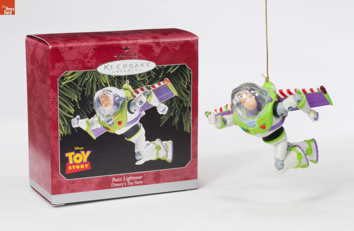 Already known for greeting cards, Hallmark introduced a line of Christmas ornaments in 1973. The company's annual release of an increasing array of ornaments appealed to customers' interest in marking memories and milestones as well as expressing one's personality and unique tastes. This Buzz Lightyear, along with a corresponding Sheriff Woody, were the first of many Hallmark Toy Story ornaments.