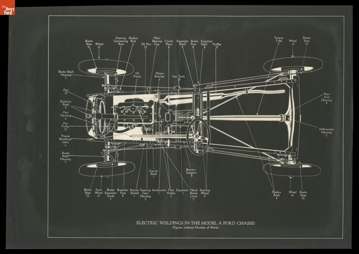 Drawing, "Electric Weldings in the Model A Ford Chassis," 1928-1929