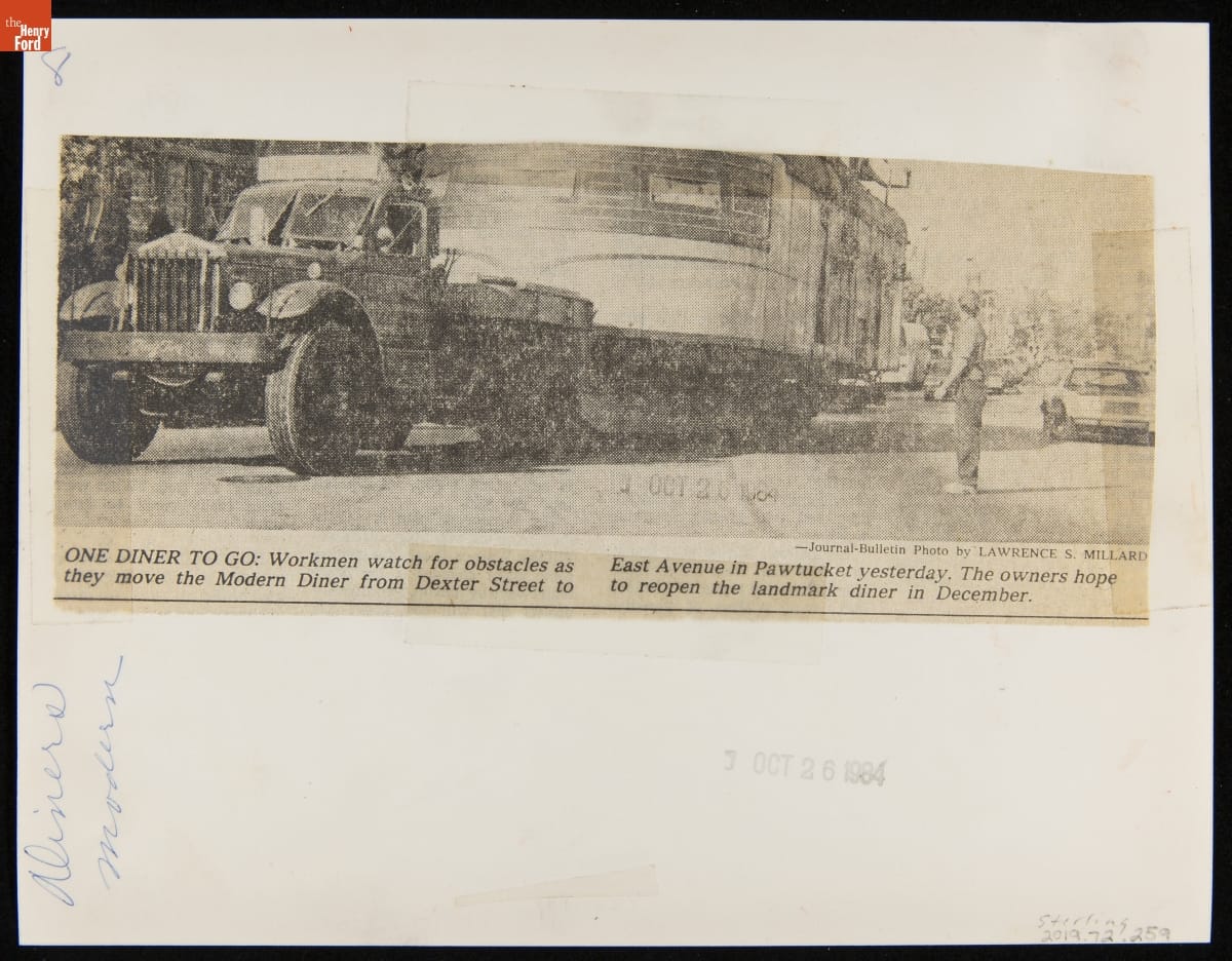 Modern Diner Moving from Dexter Street to East Avenue, Pawtucket, Rhode Island, October 26, 1984