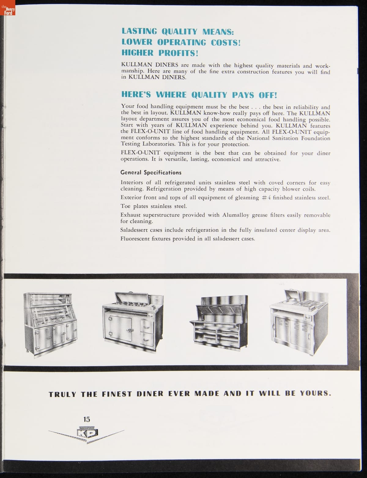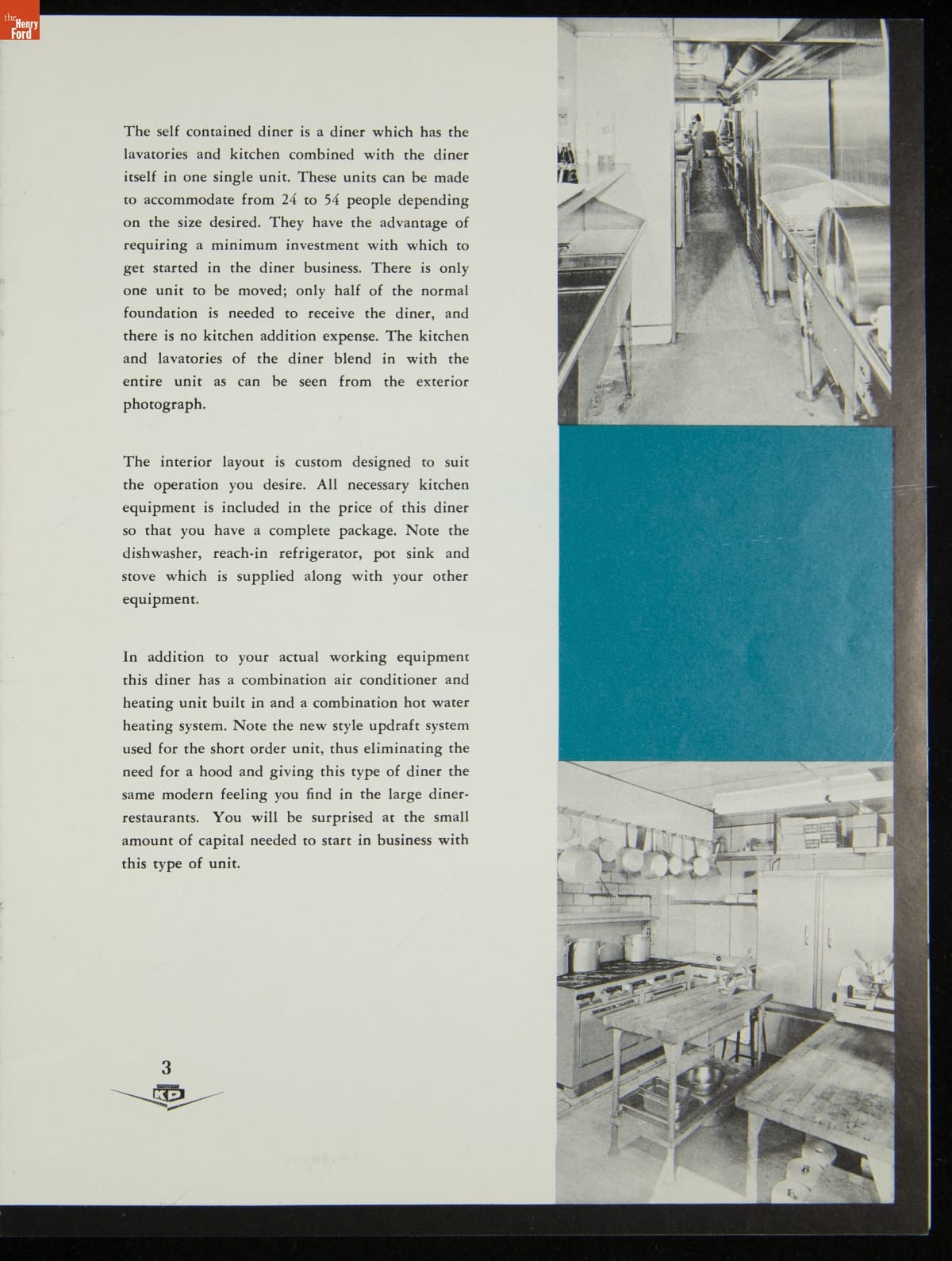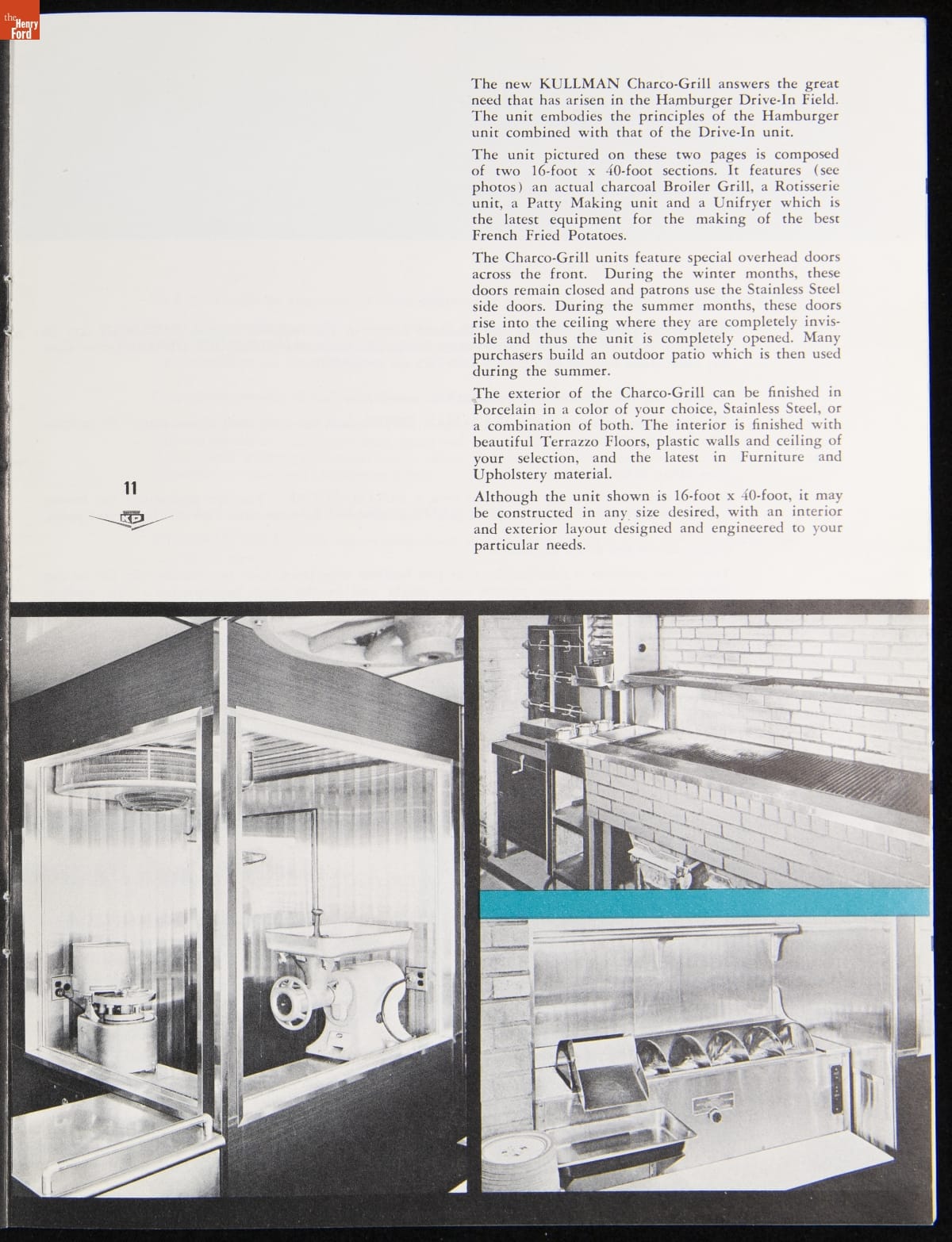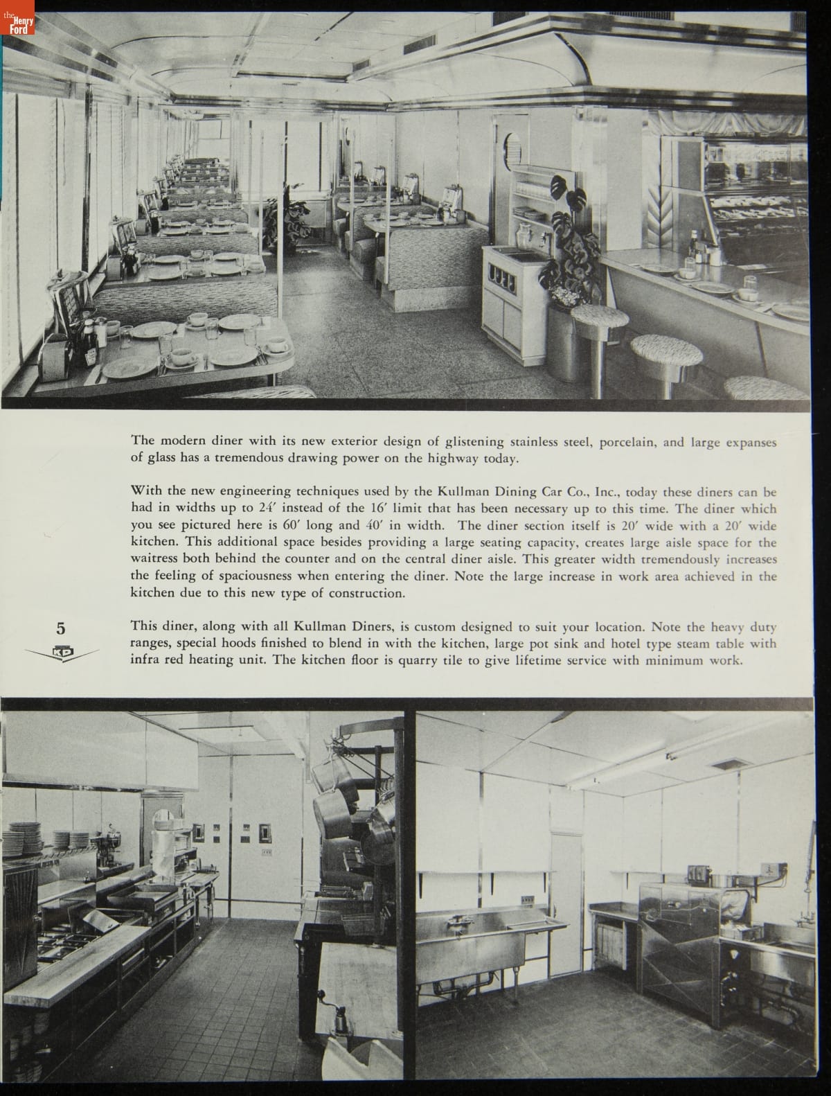 The New Jersey-based Kullman Dining Car Company, founded in 1927, was one of the longest-lived companies in the diner business. Continually responding to changing market needs, Kullman produced some of the largest, best designed restaurant-type models in the industry during the 1950s. The newest models of diner-restaurants are featured in this ca. 1957 catalog.