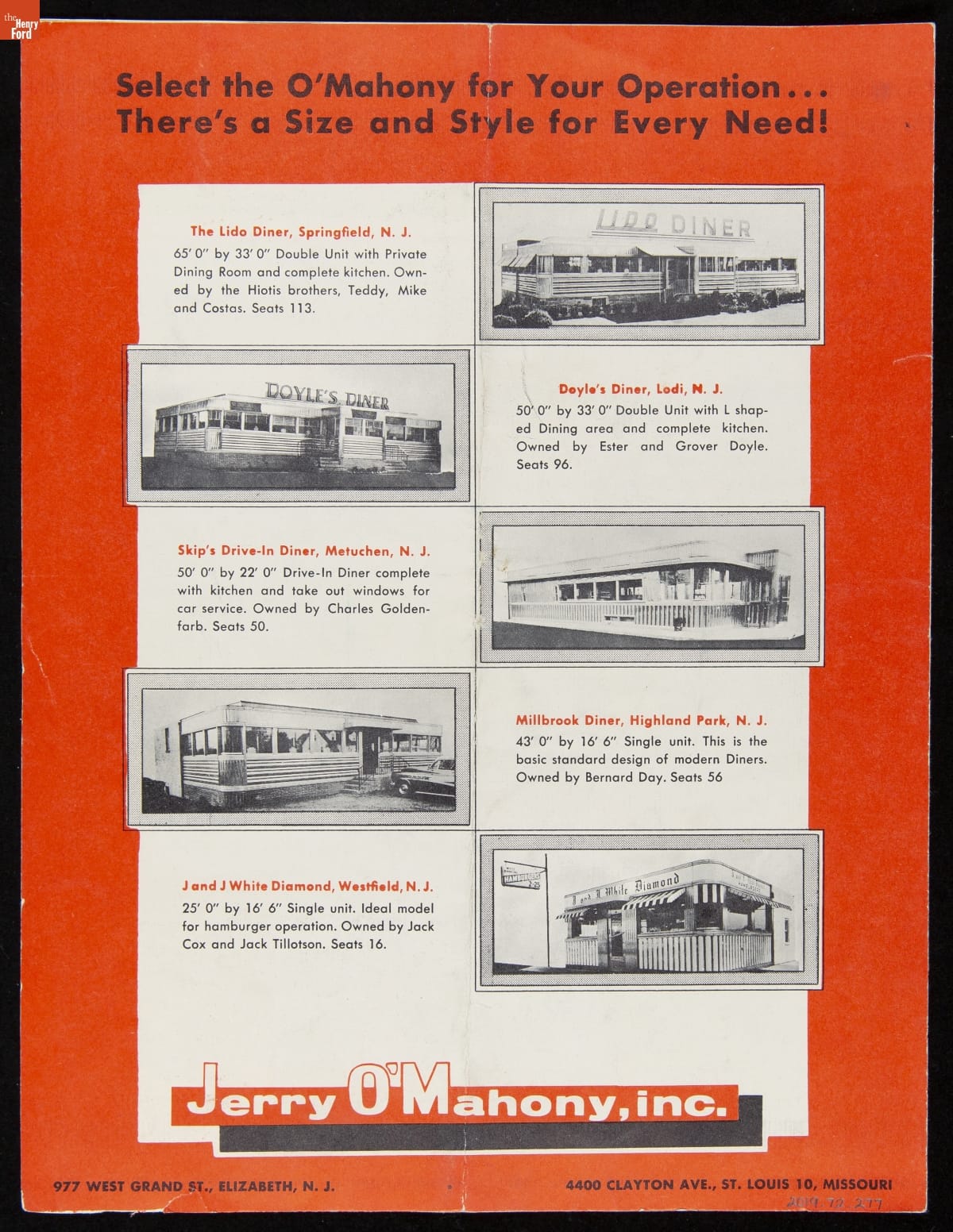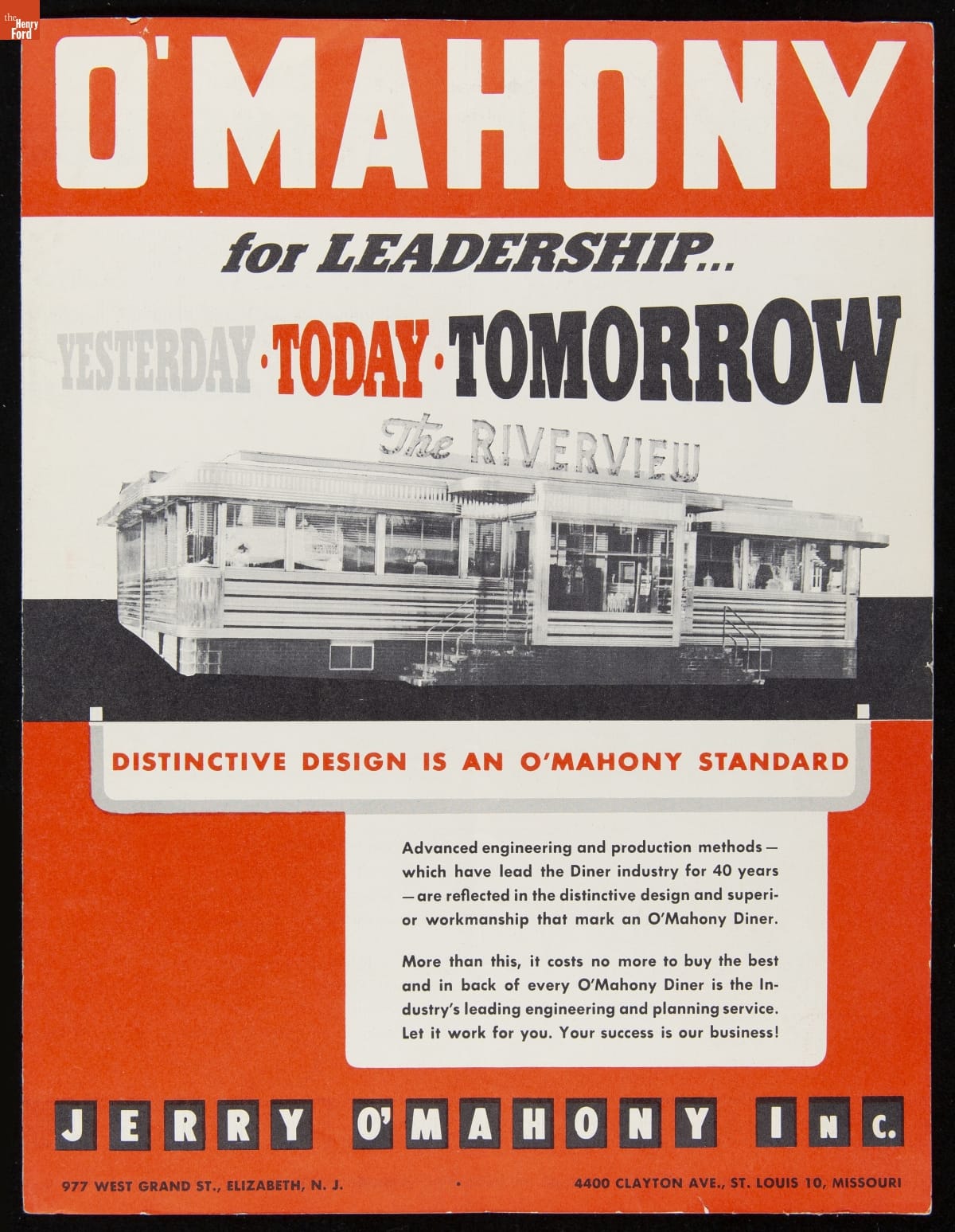 Jerry O'Mahony Diner Company Brochure, "O'Mahony for Leadership... Yesterday, Today, Tomorrow," 1952-1956