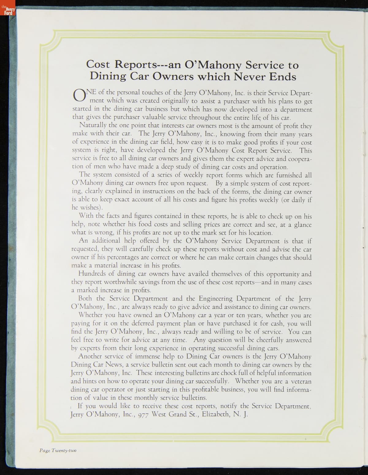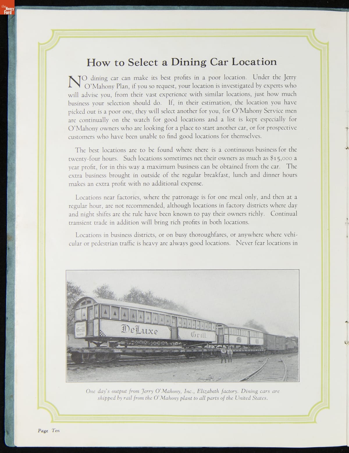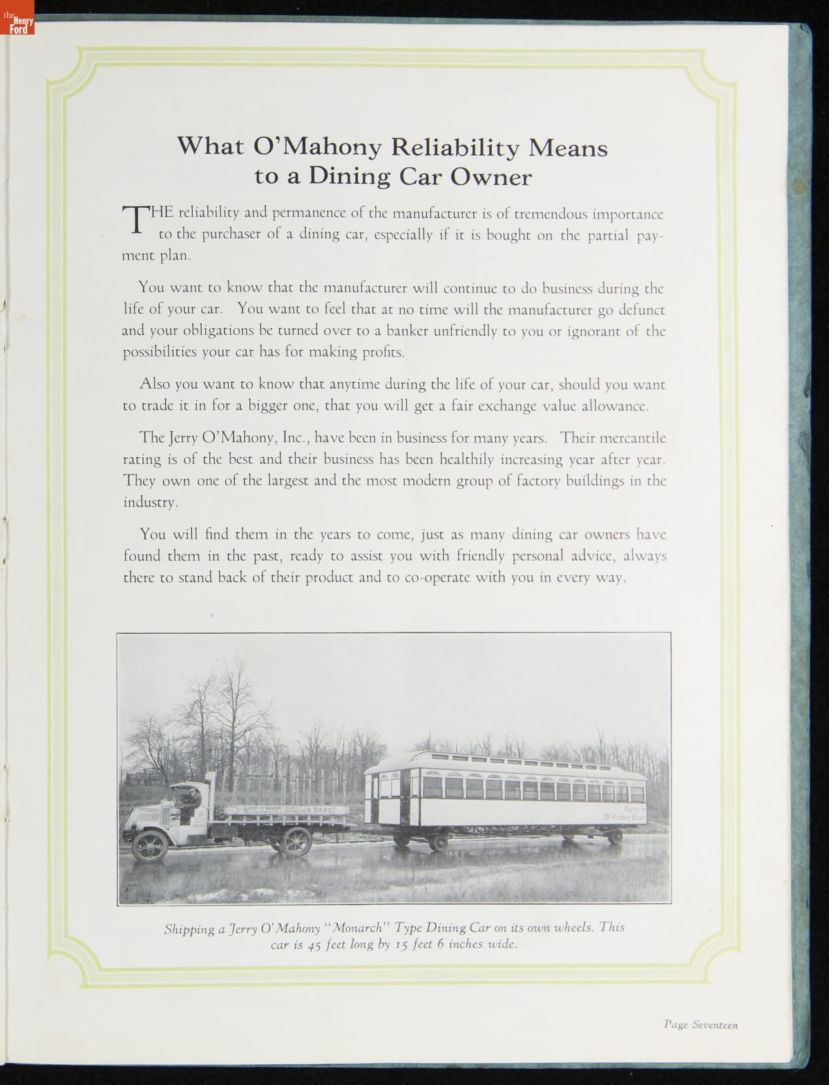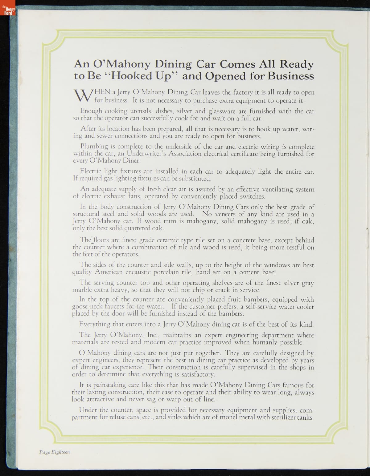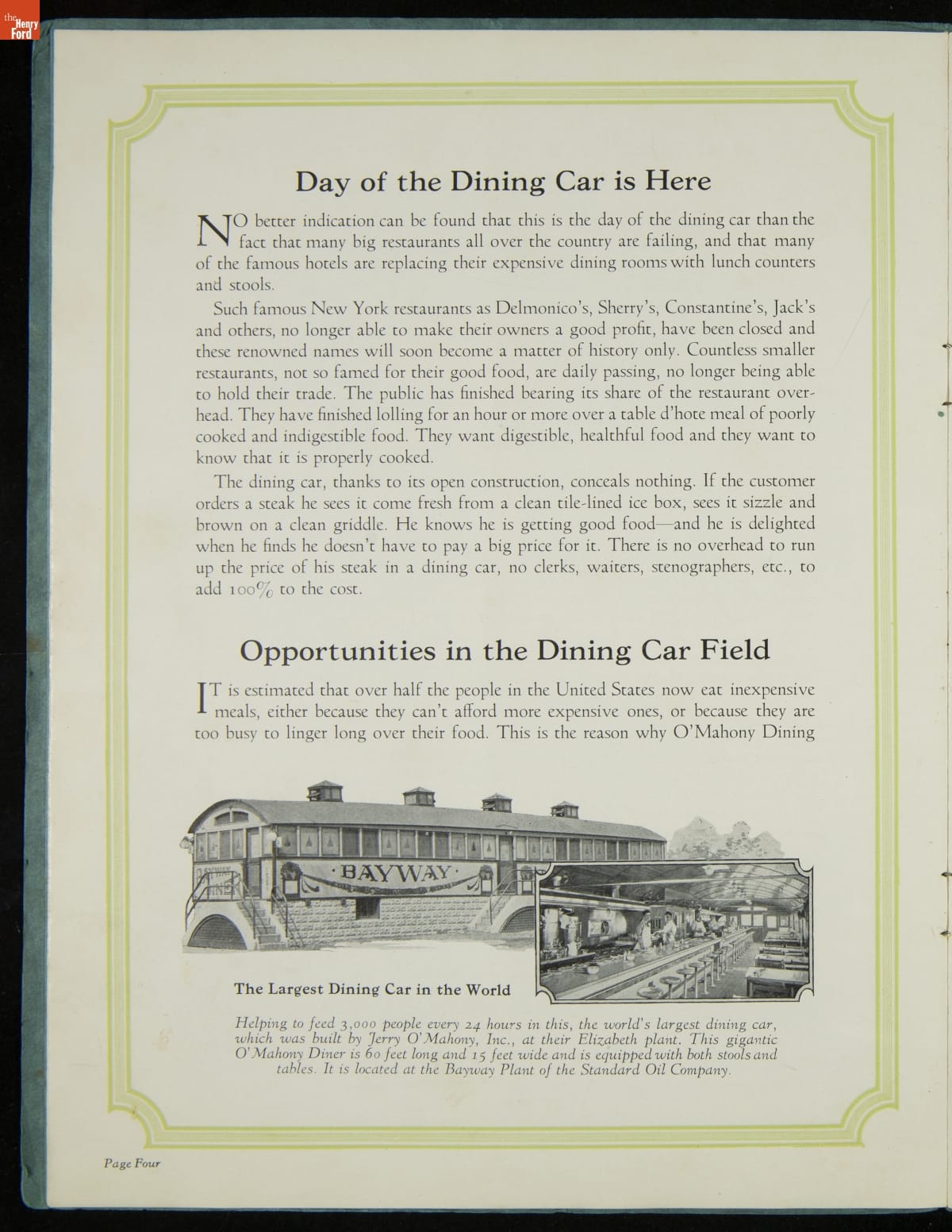 "Jerry O'Mahony Dining Cars: In Our Line We Lead the World," 1928
