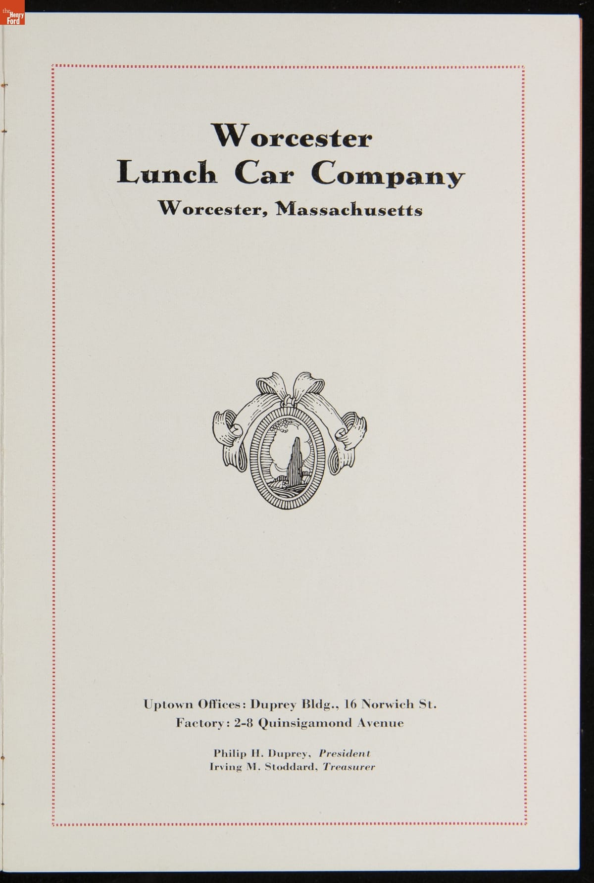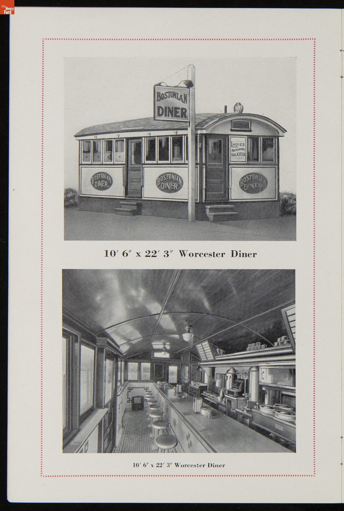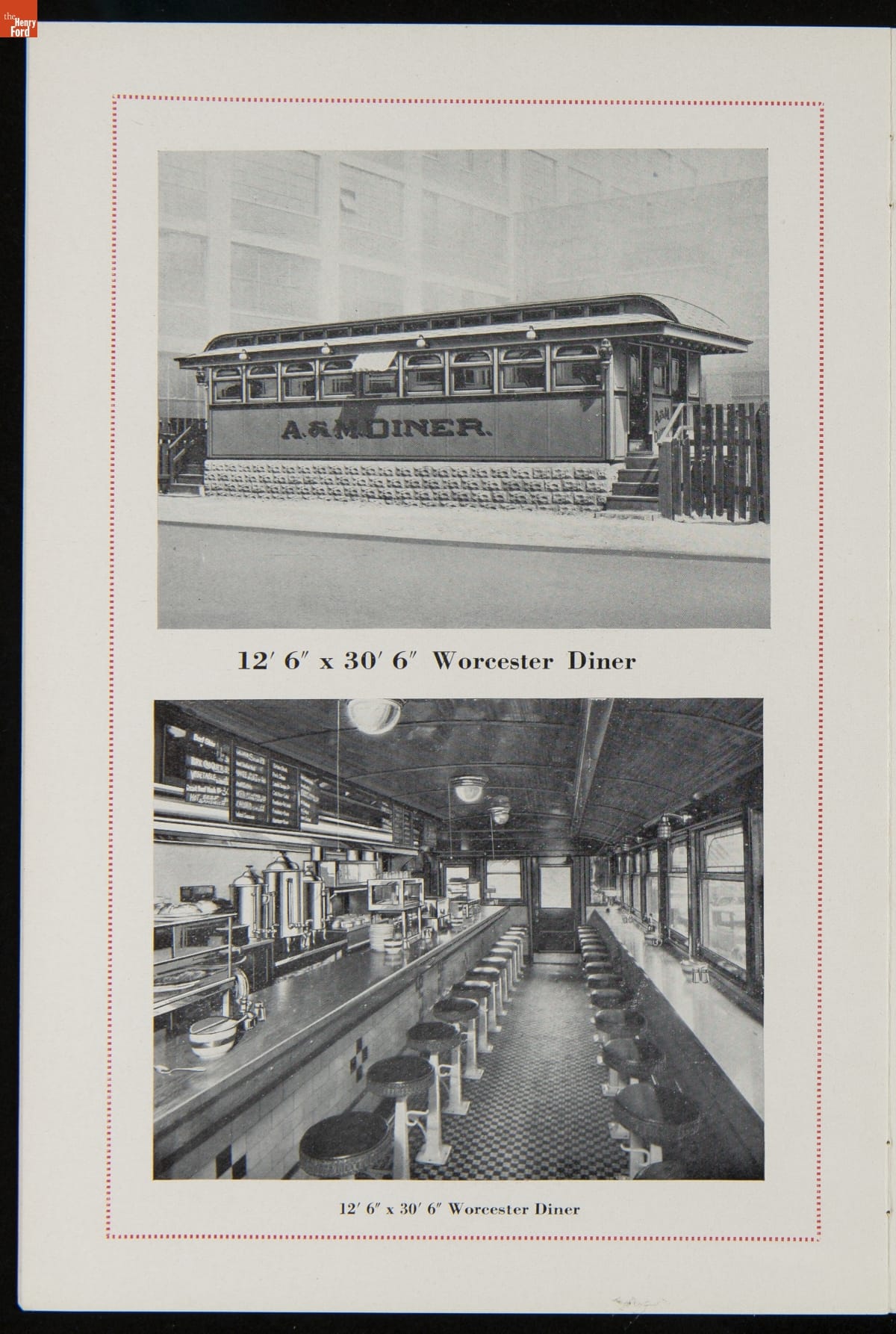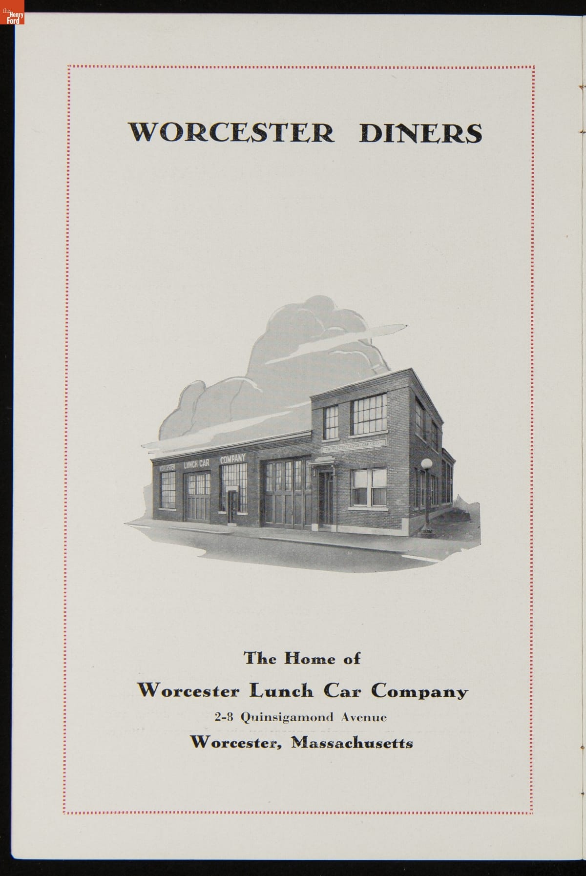 One of New England's premier diner manufacturers, the Worcester Lunch Car Company of Worcester, Massachusetts, began as a lunch wagon builder in 1905. From the mid-1920s to the mid-1950s, this company produced at least seven models of diners, with customizable choices. This 1930-34 catalog was one of only four that the company issued during its existence.