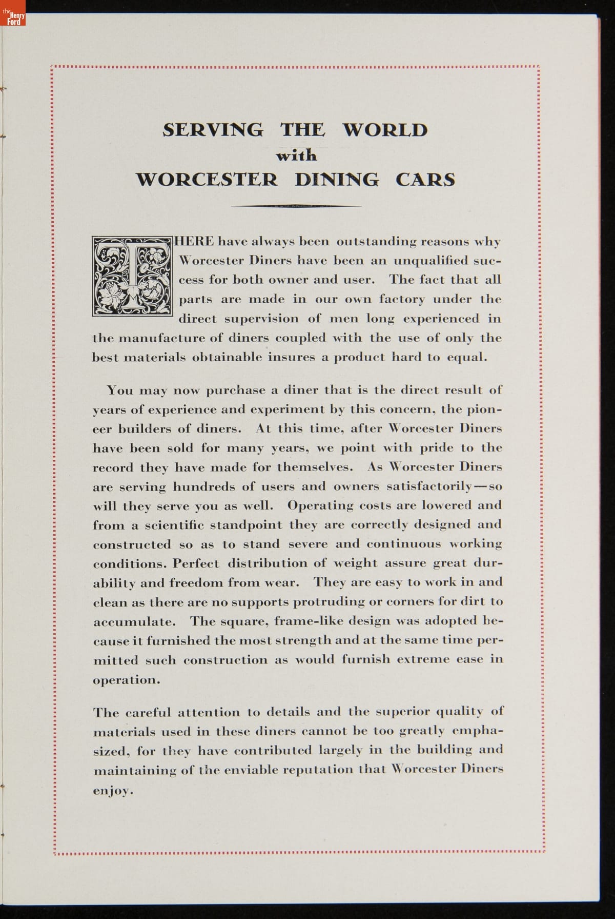 "Serving the World," Worcester Lunch Car Company Catalog, 1930-1934