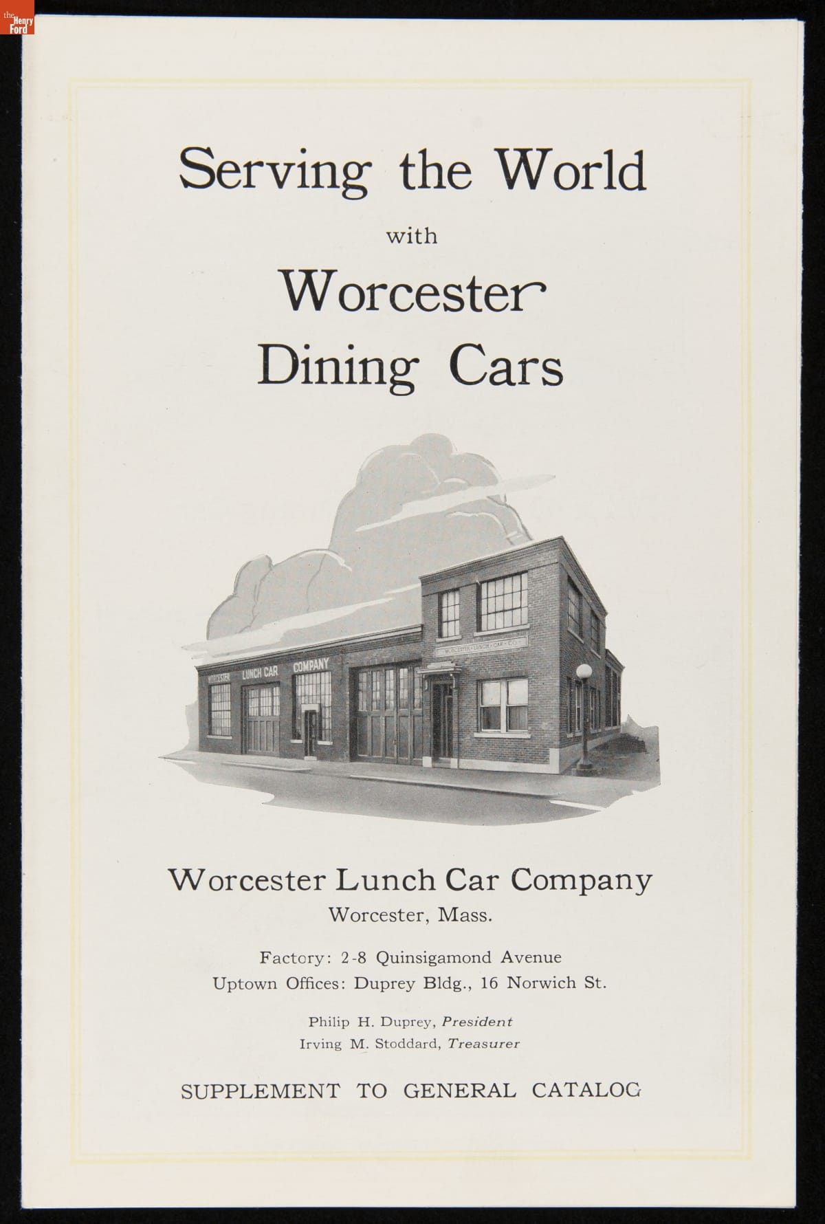 Worcester Lunch Car Company Catalog Supplement, "Serving the World with Worcester Dining Cars," 1926-1930