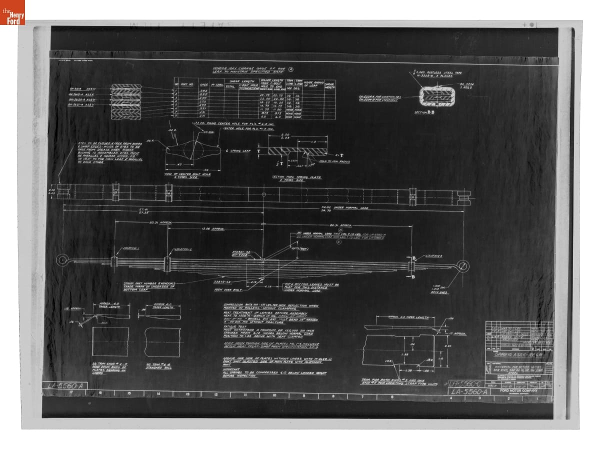 The Ford Motor Company created over a million parts drawings from 1903 to 1957. Many of these drawings specify engineering requirements for the components of Ford-made vehicles--including automobiles, trucks, tractors, military vehicles and Tri-motor airplanes. Others document assembly components, stages of casting and forging, or experimental designs. Beginning in the 1940s, Ford transferred the drawings to microfilm.