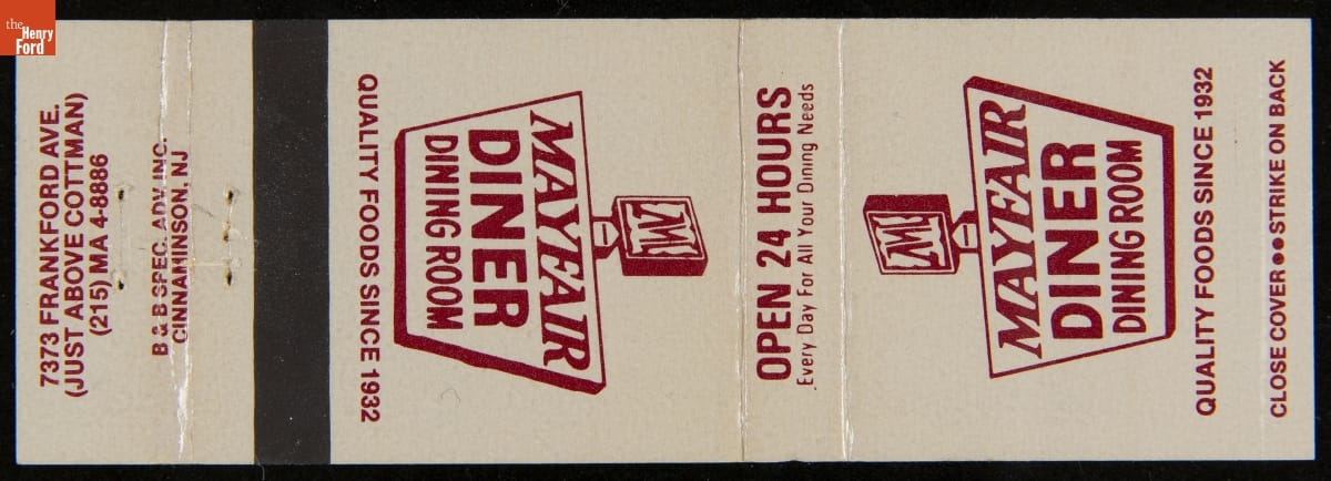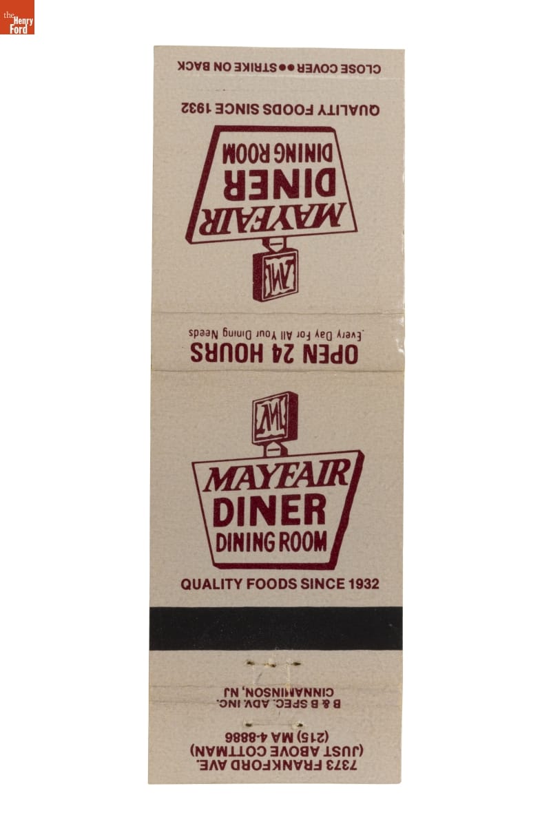 Mayfair Diner Matchbook, Philadelphia, Pennsylvania, 1970-1990