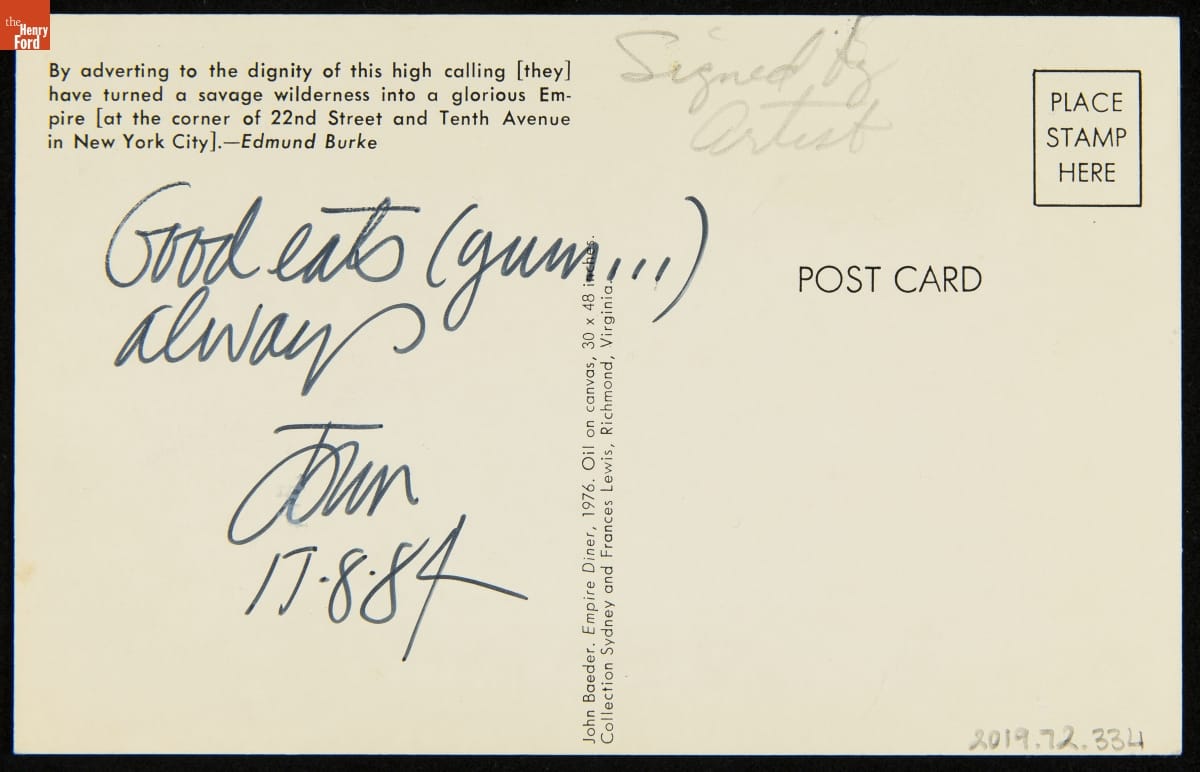 From the Collections of The Henry Ford. Richard J.S. Gutman Diner Collection.