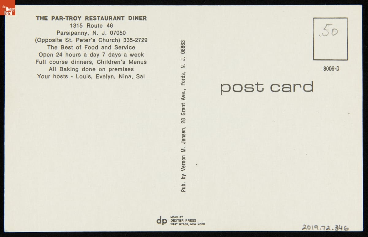 From the Collections of The Henry Ford. Richard J.S. Gutman Diner Collection.