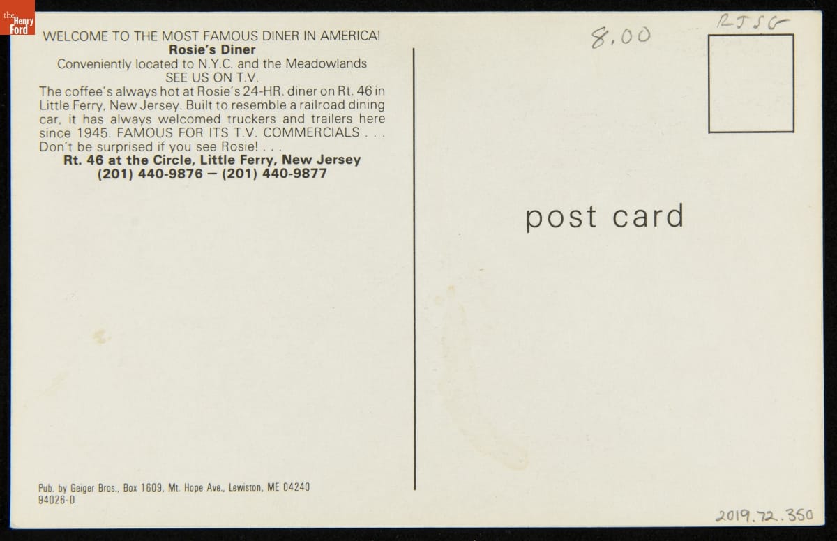 From the Collections of The Henry Ford. Richard J.S. Gutman Diner Collection.
