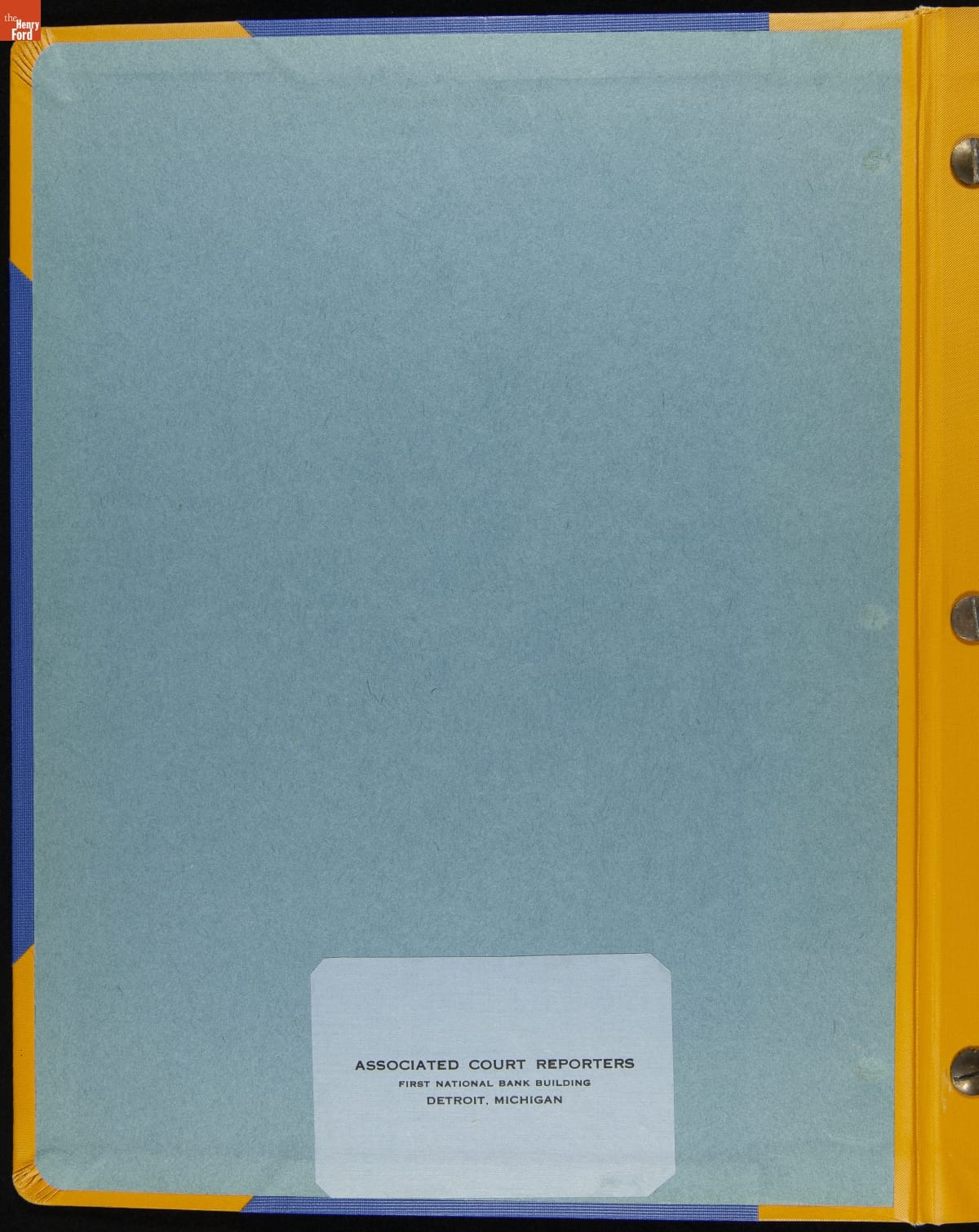 THF277333 / Stenographic Report of Proceedings of Light's Golden Jubilee at Dearborn, Michigan, October 21, 1929 / inside front cover