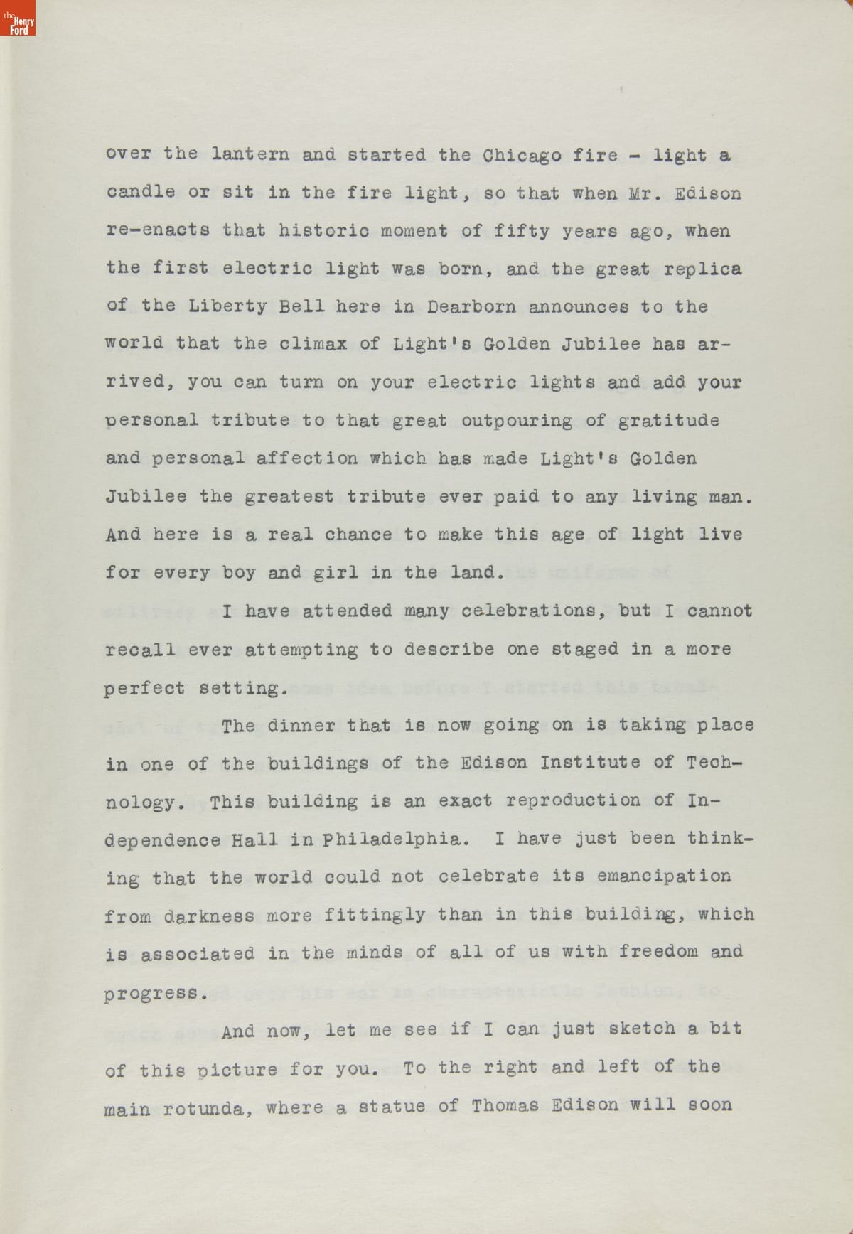 THF277336 / Stenographic Report of Proceedings of Light's Golden Jubilee at Dearborn, Michigan, October 21, 1929 / page2