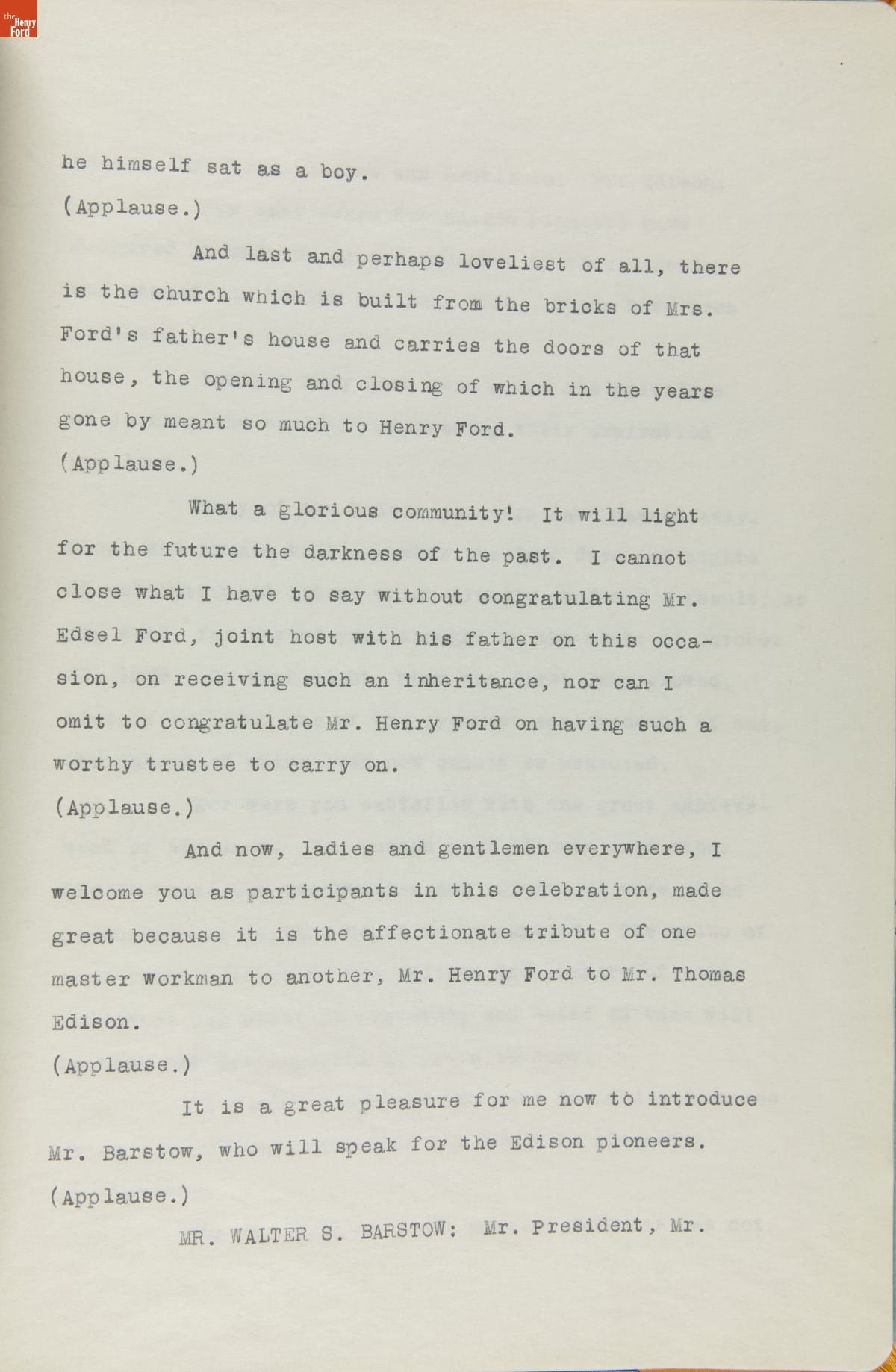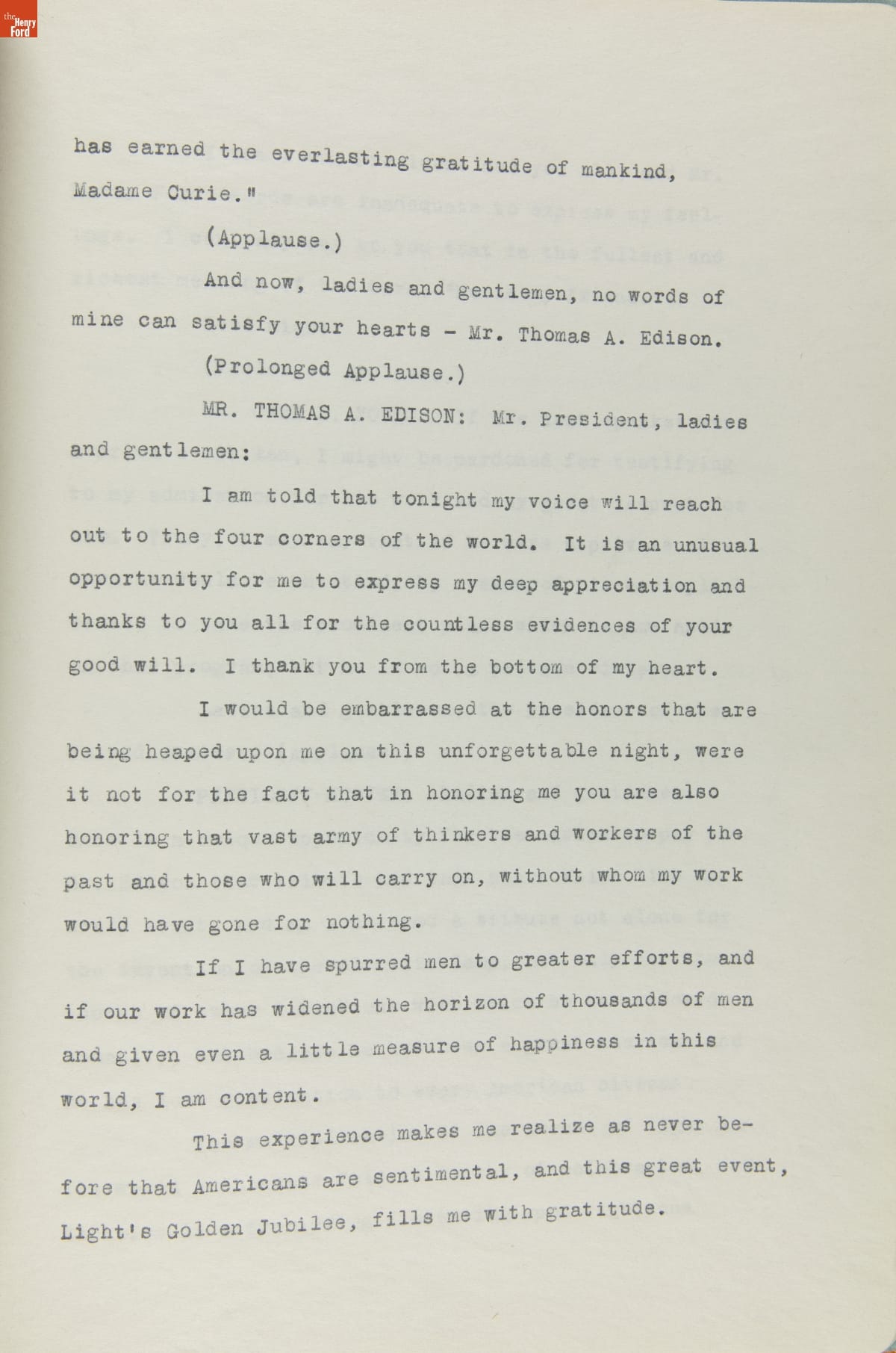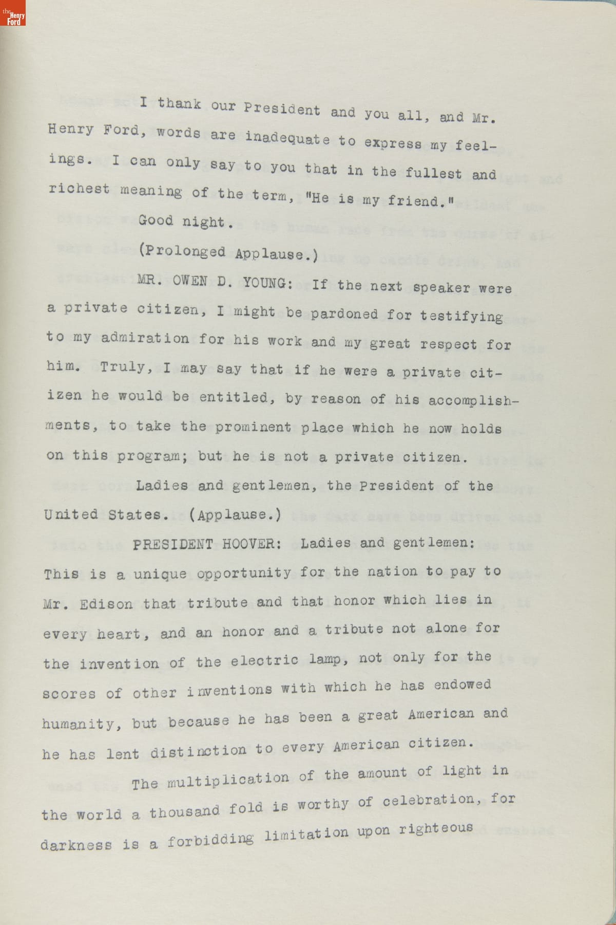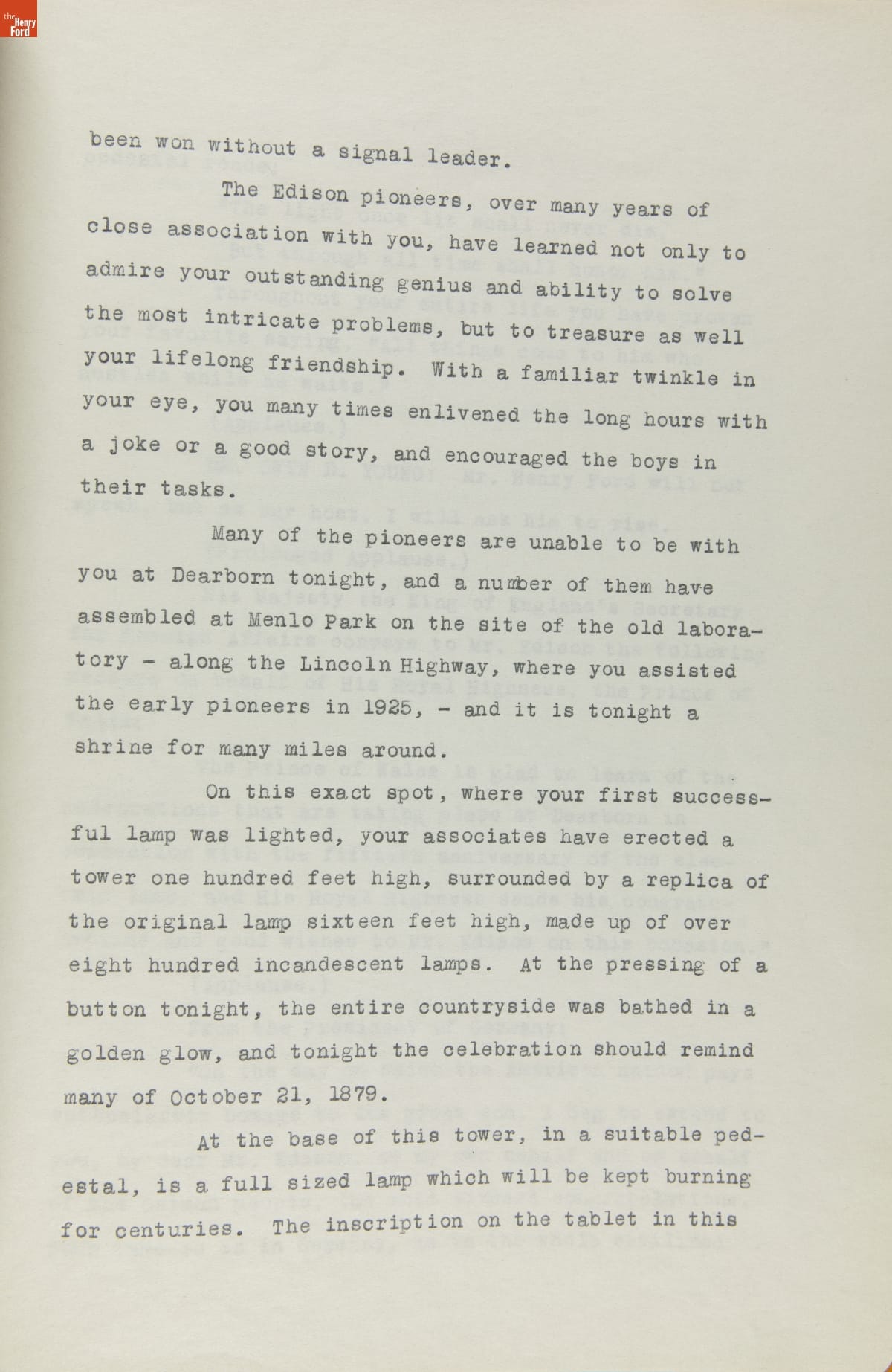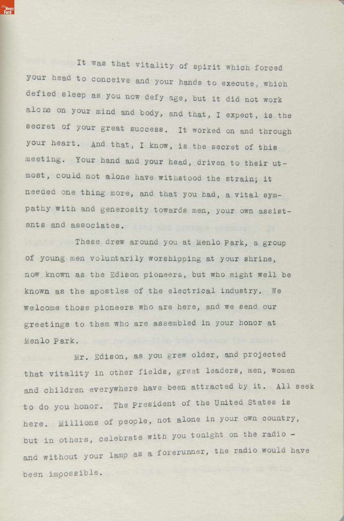 THF277338 / Stenographic Report of Proceedings of Light's Golden Jubilee at Dearborn, Michigan, October 21, 1929 / page4