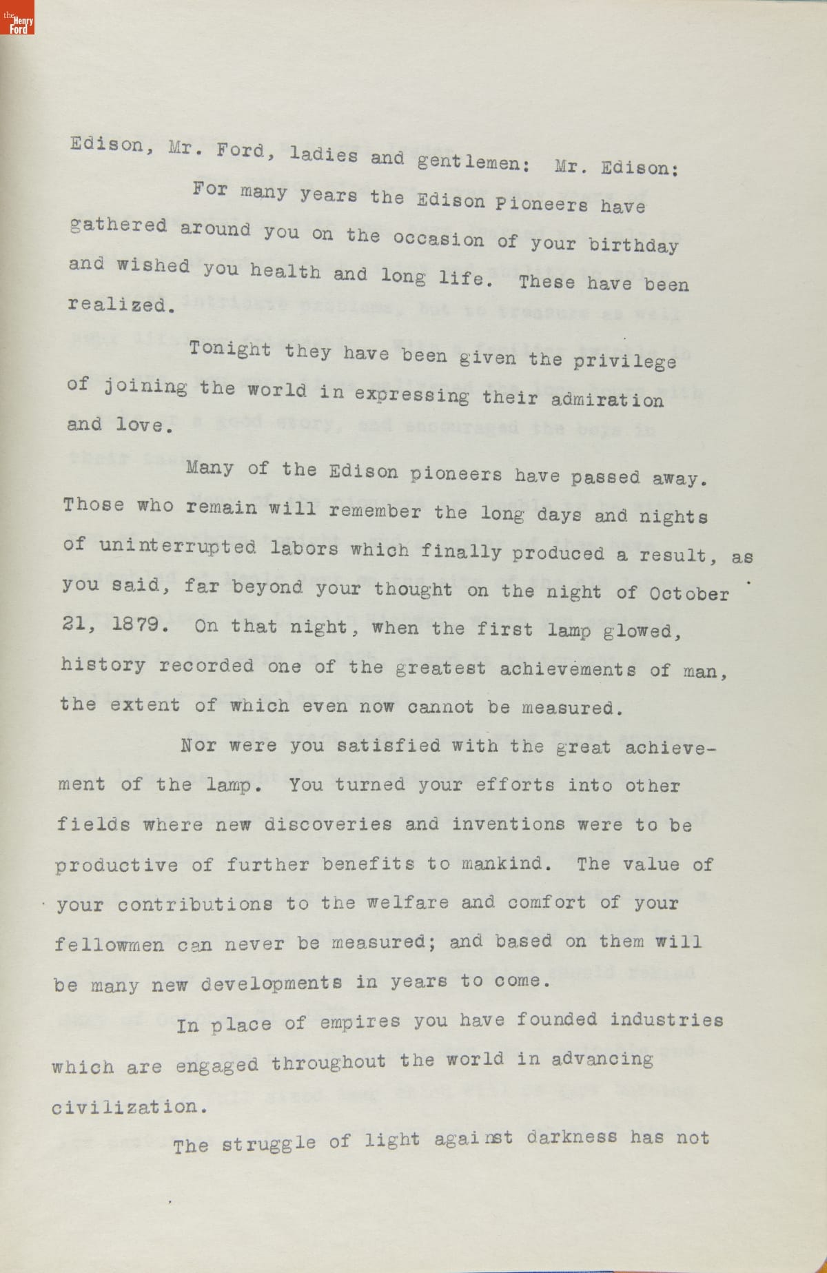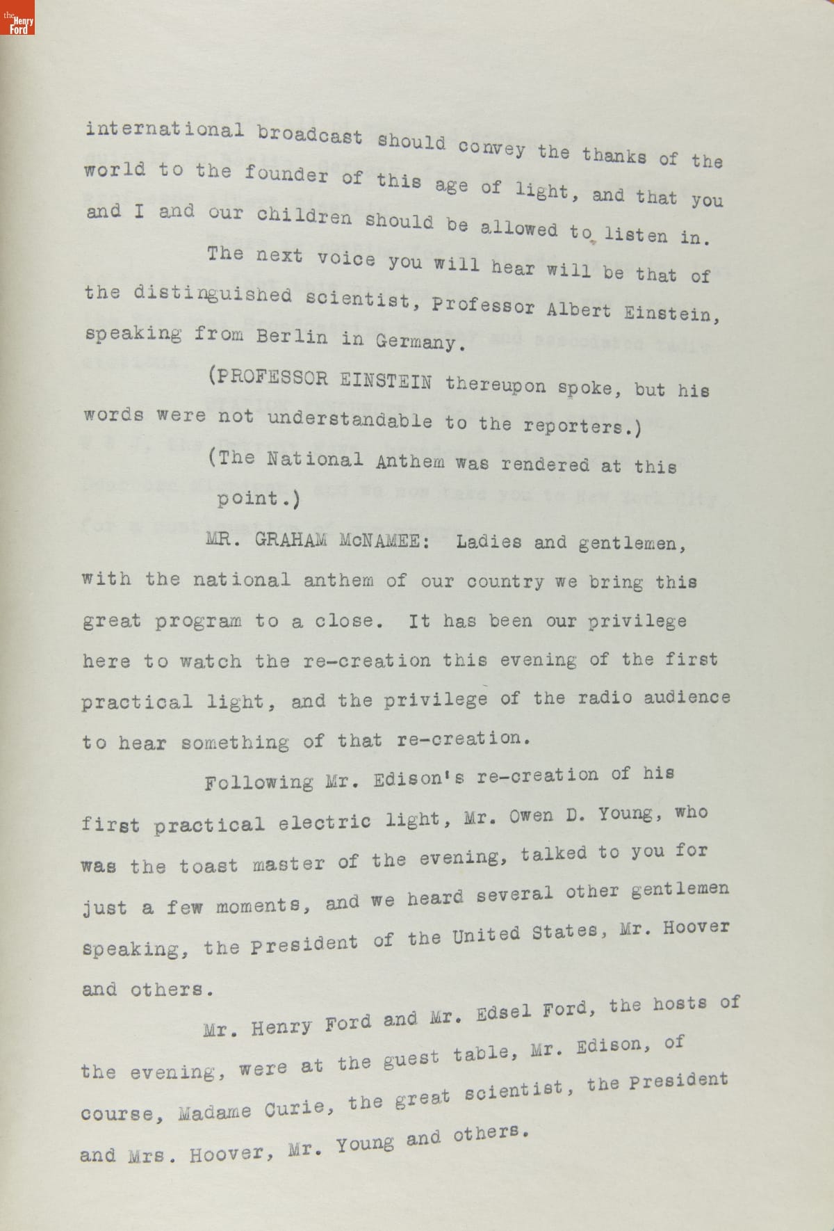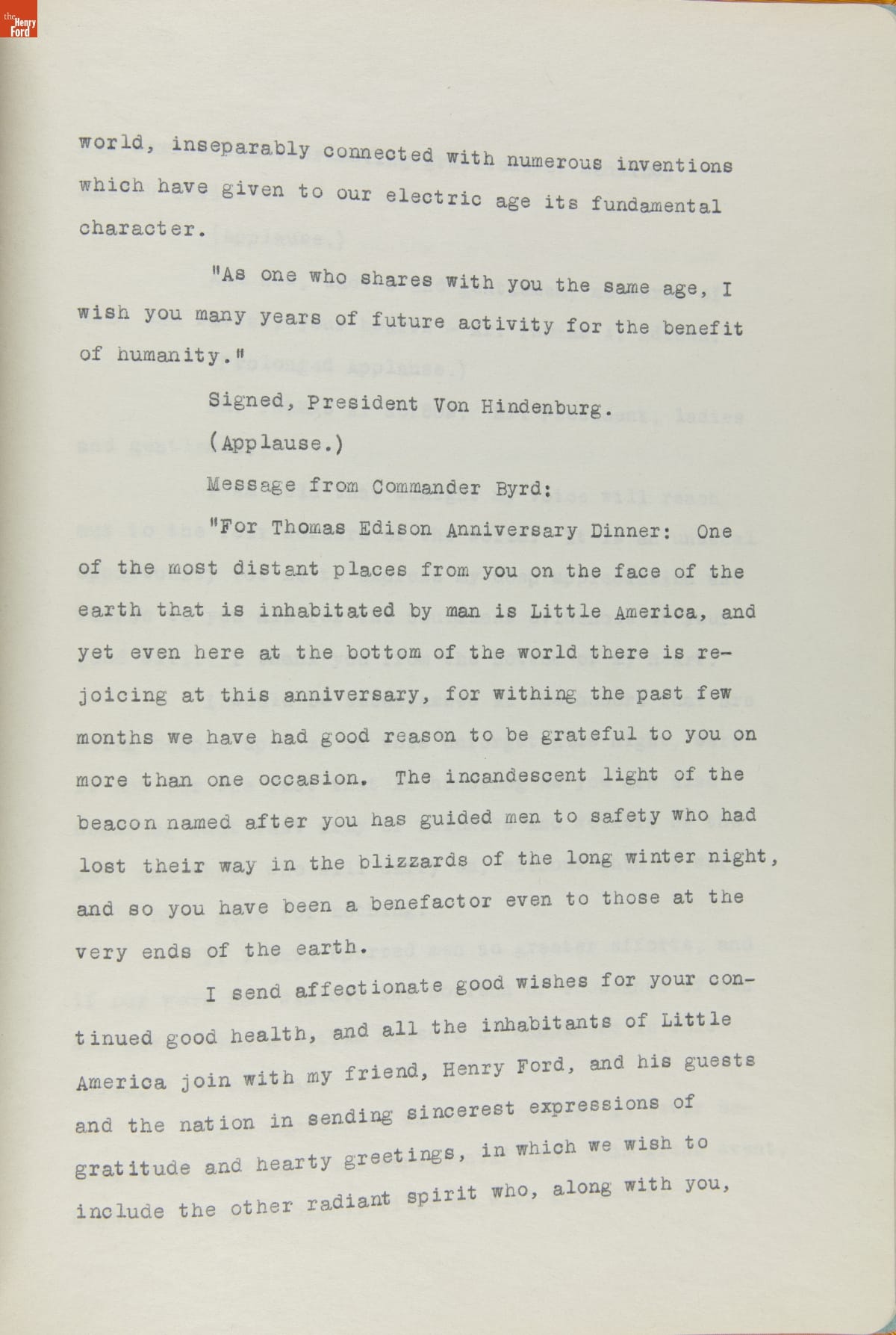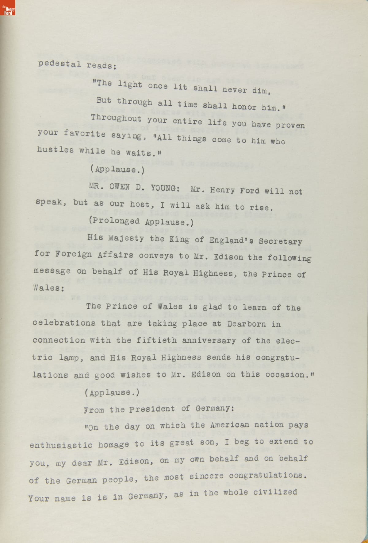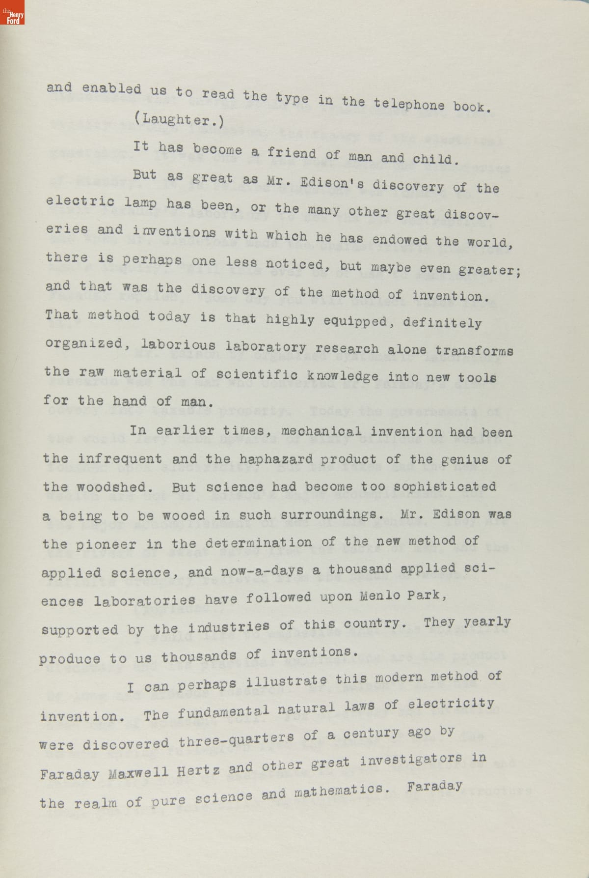 THF277338 / Stenographic Report of Proceedings of Light's Golden Jubilee at Dearborn, Michigan, October 21, 1929 / page4