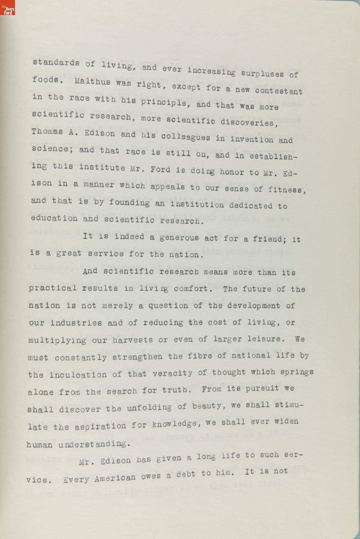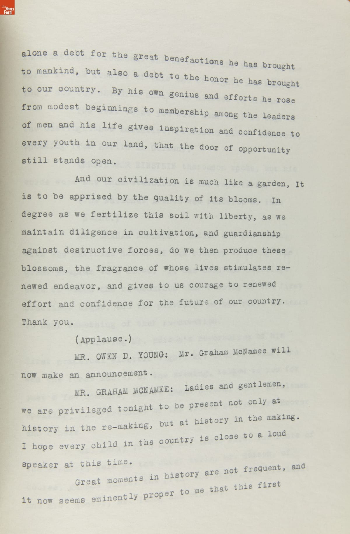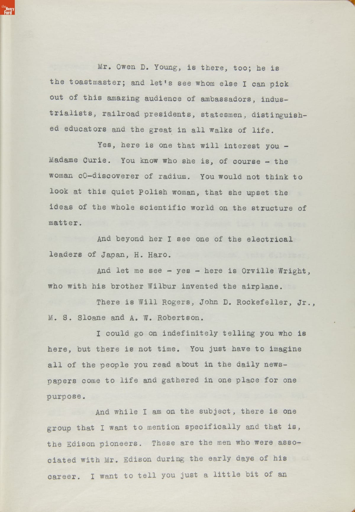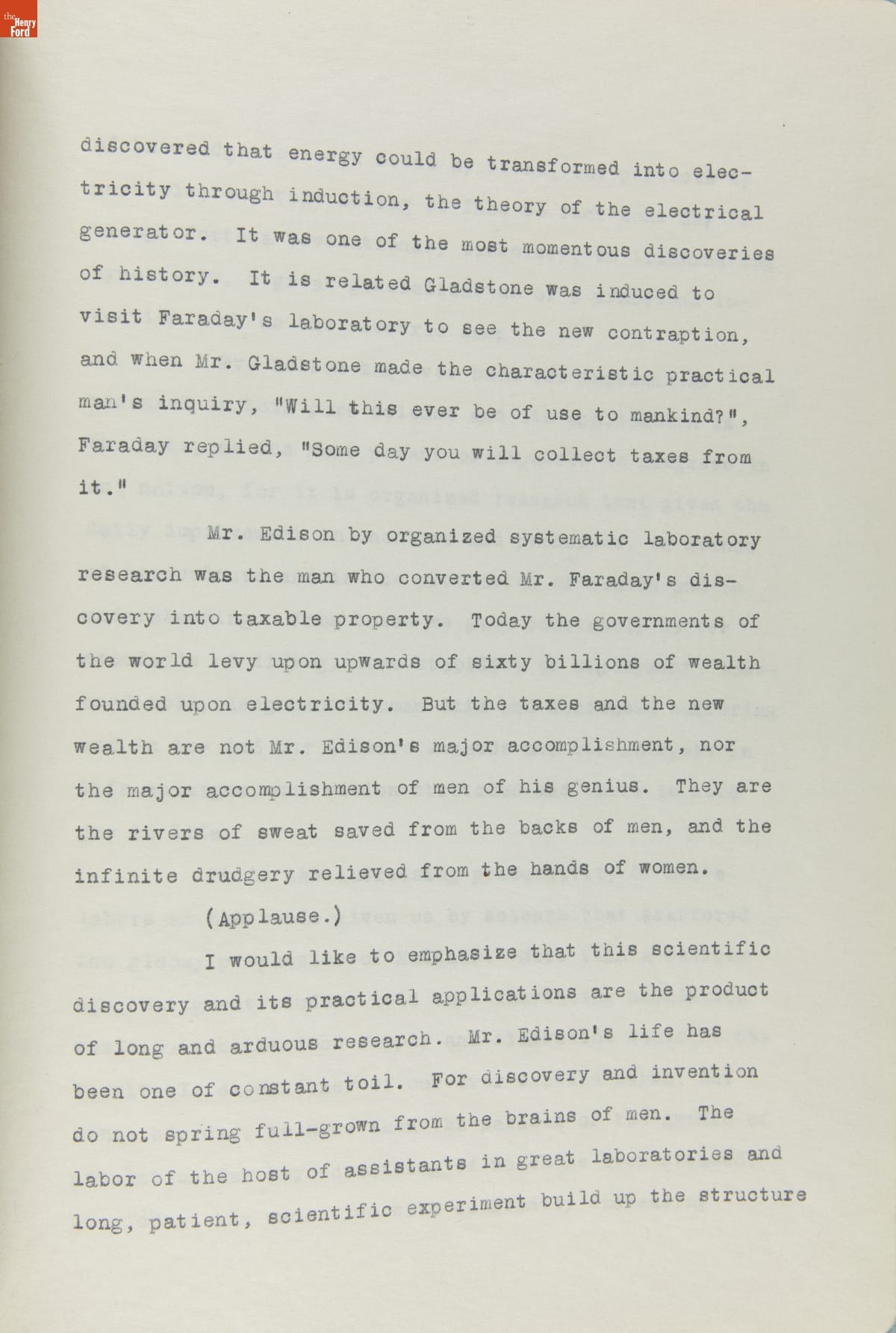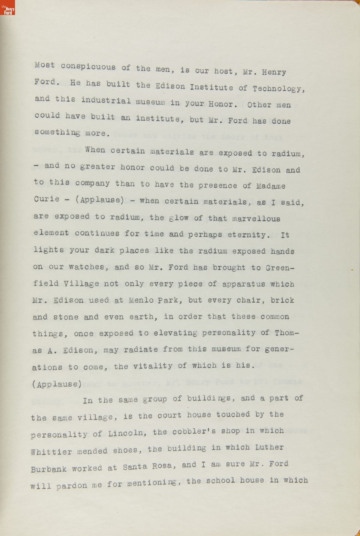 THF277338 / Stenographic Report of Proceedings of Light's Golden Jubilee at Dearborn, Michigan, October 21, 1929 / page4