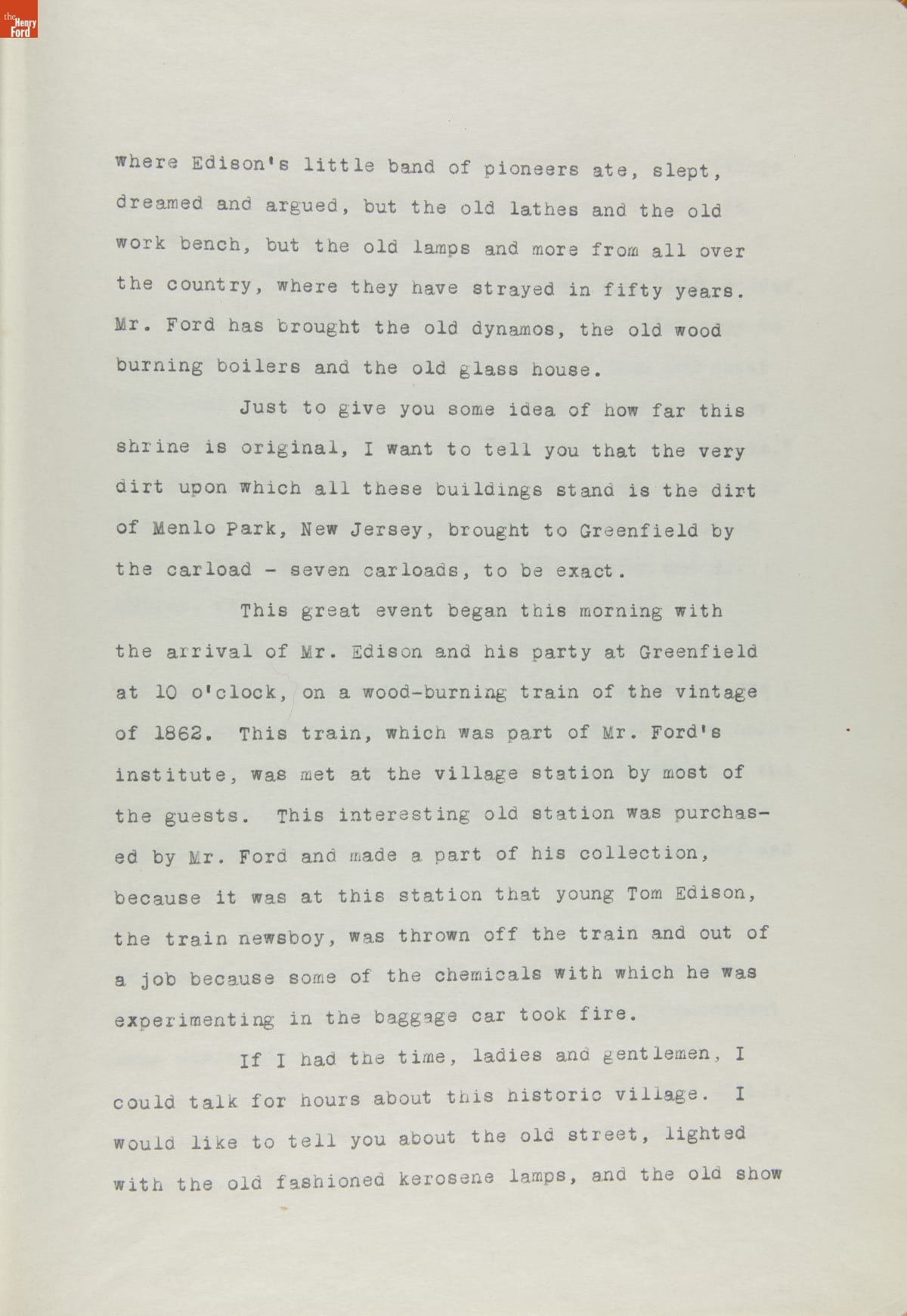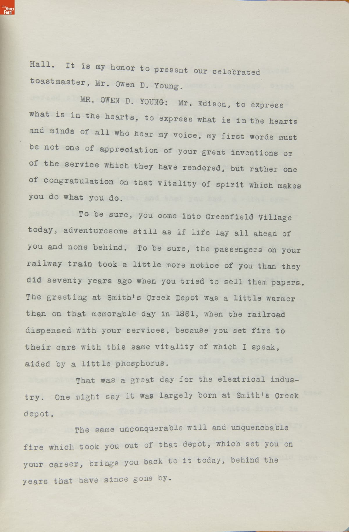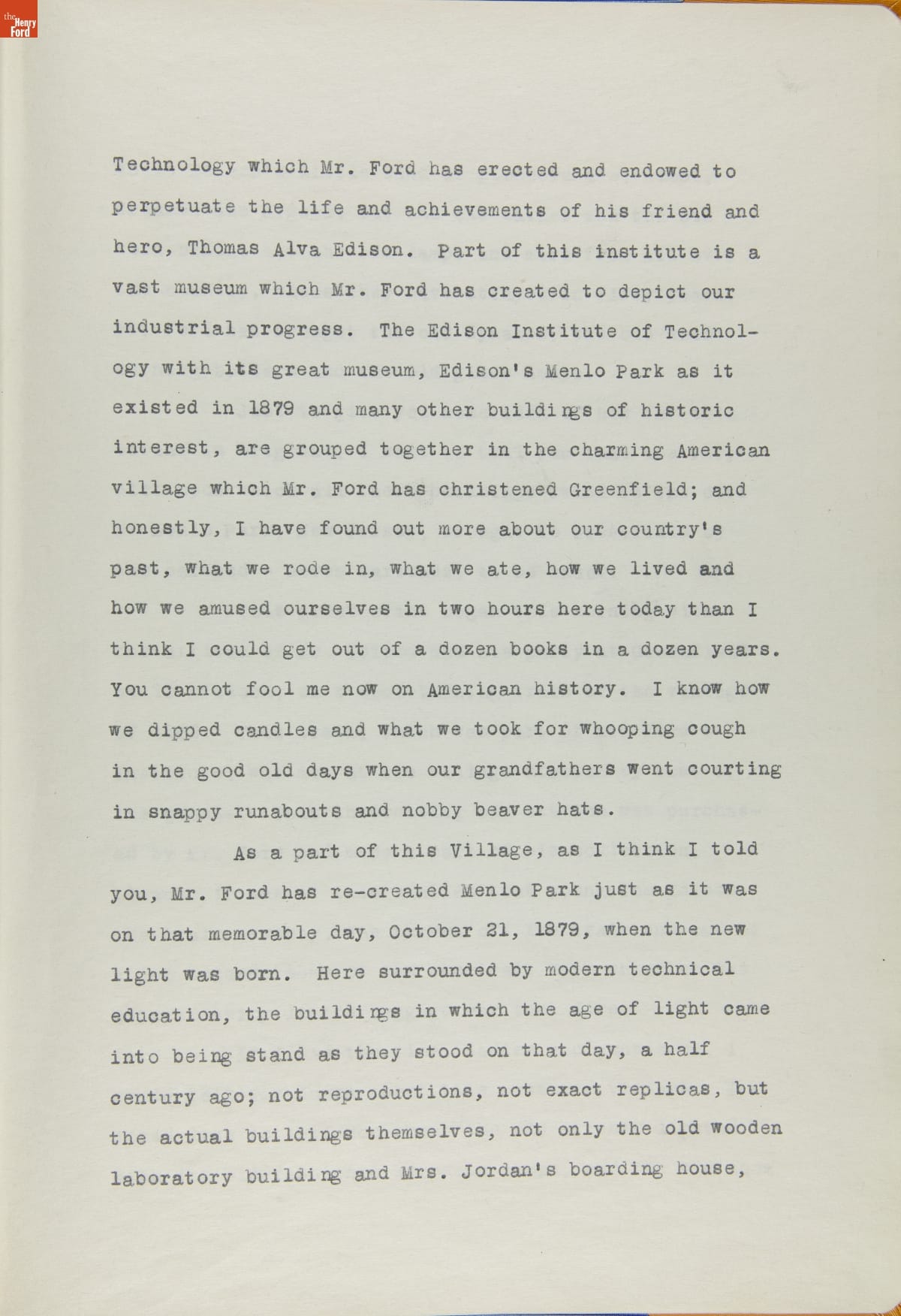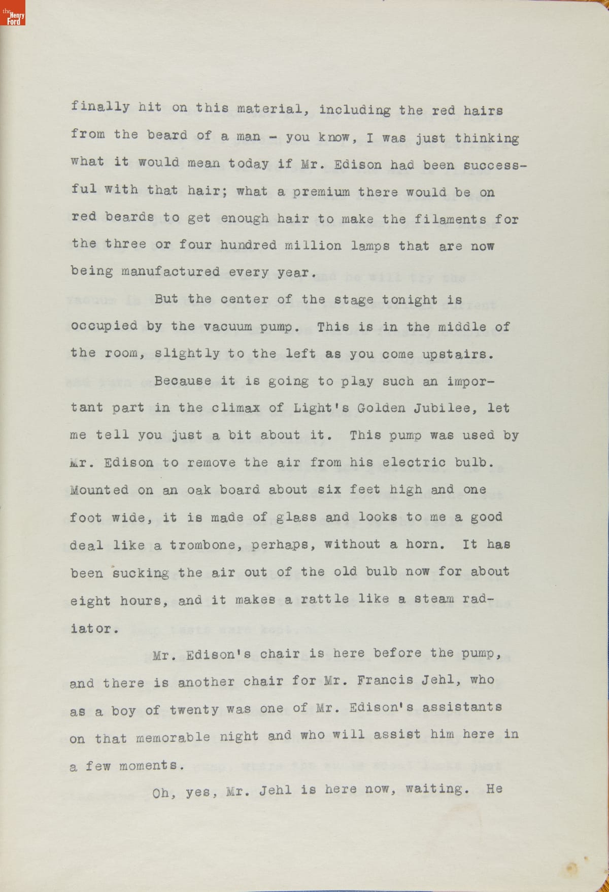 THF277337 / Stenographic Report of Proceedings of Light's Golden Jubilee at Dearborn, Michigan, October 21, 1929 / page3