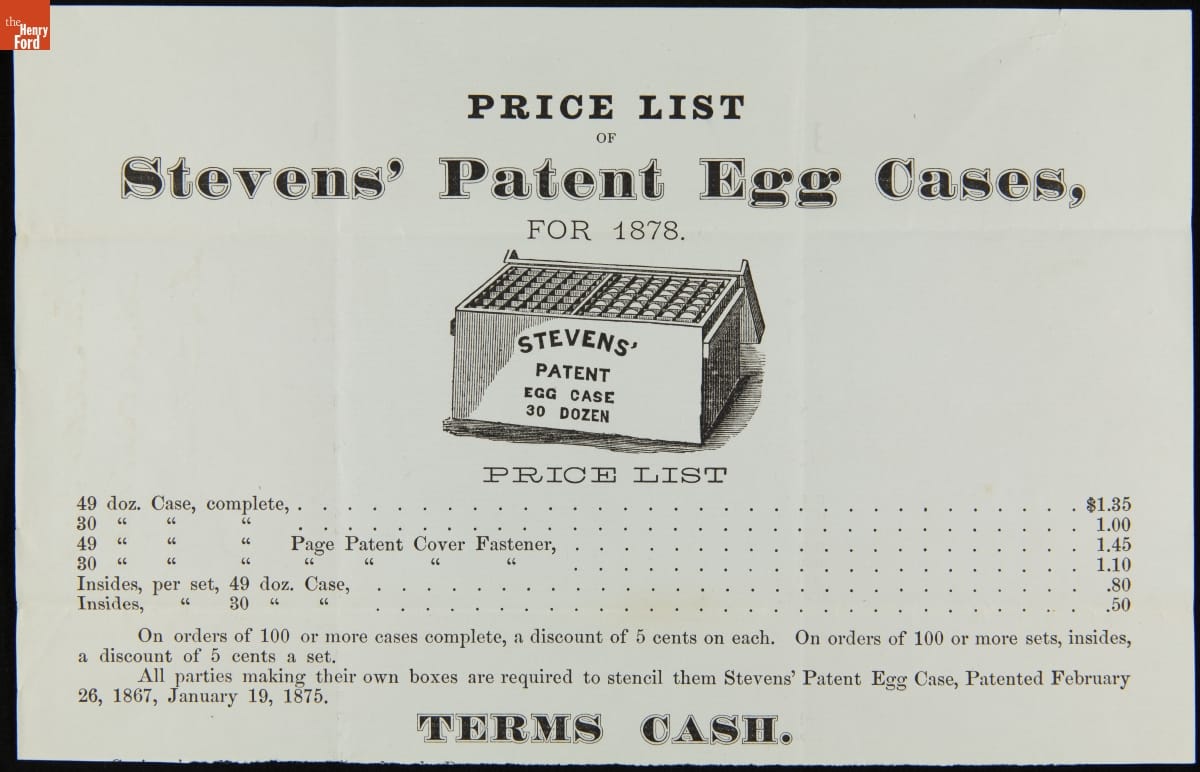 Price List for Stevens' Patent Egg Cases, 1878