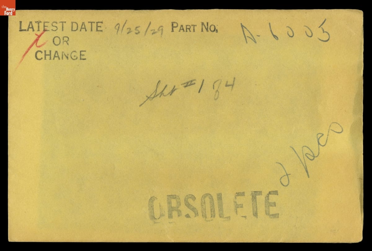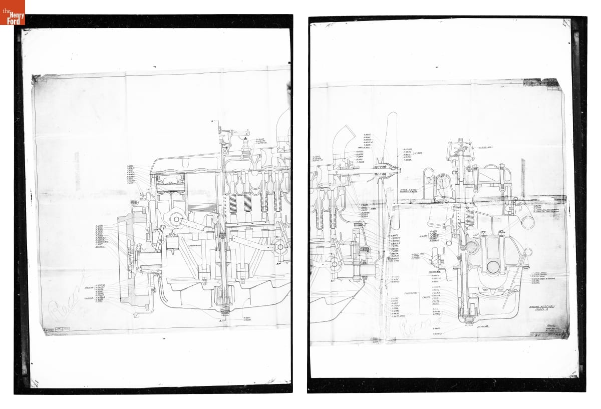 The Ford Motor Company created over a million parts drawings from 1903 to 1957. Many of these drawings specify engineering requirements for the components of Ford-made vehicles--including automobiles, trucks, tractors, military vehicles and Tri-motor airplanes. Others document assembly components, stages of casting and forging, or experimental designs. Beginning in the 1940s, Ford transferred the drawings to microfilm.
