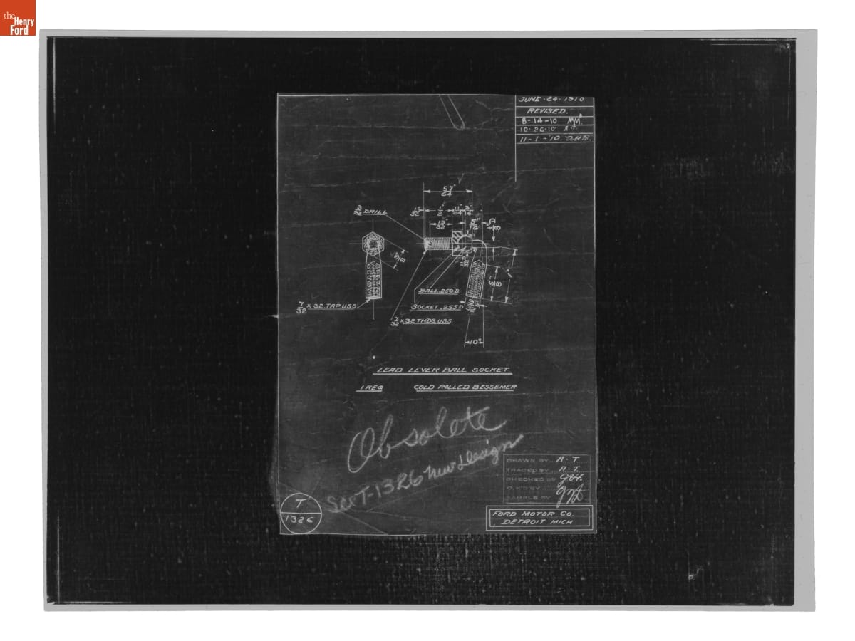 Drawing, "Lead Lever Ball Socket," Ford Model T, November 1, 1910