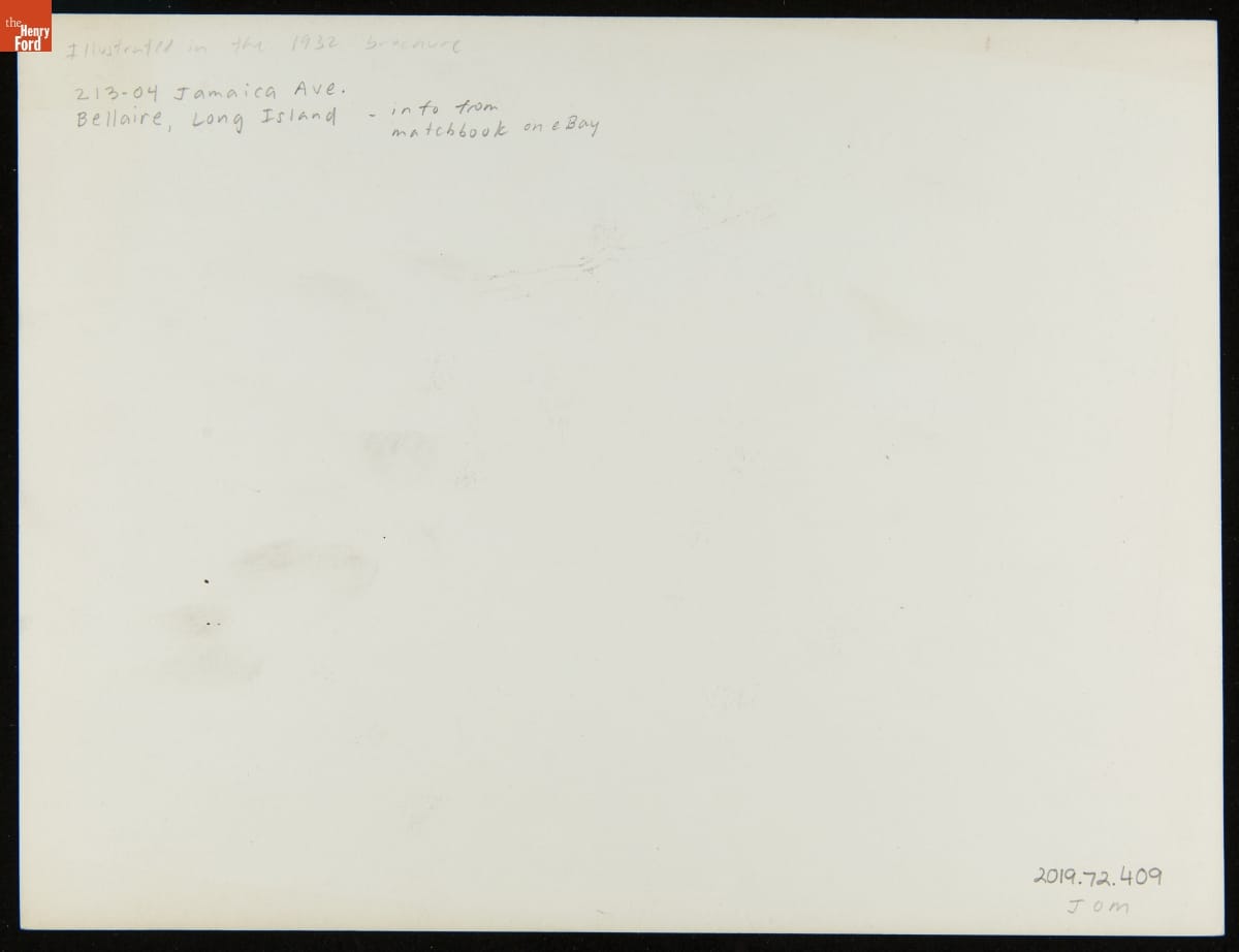 Illustrated in the 1932 brochure / 213-04 Jamaica Ave. / Bellaire, Long Island - info from matchbook on ebay / JOM