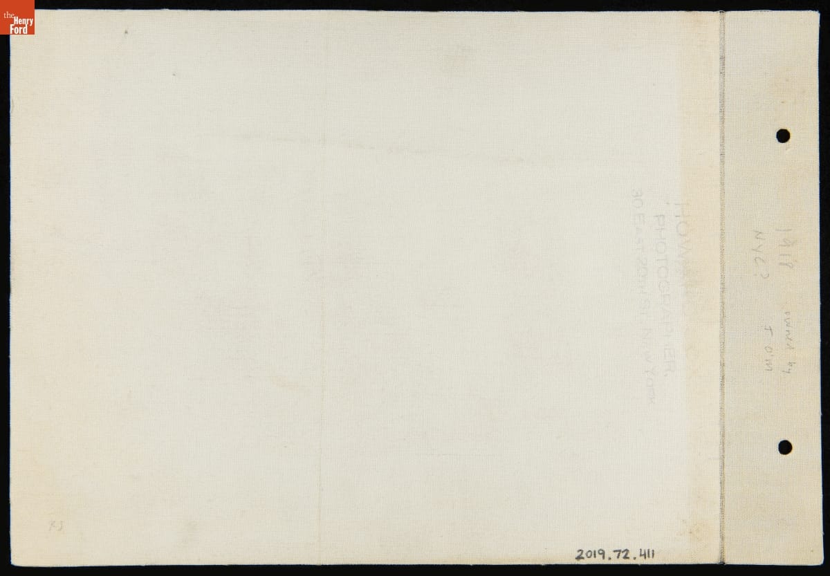 1918 / NYC? / owned by J O'M [Jerry O'Mahony] / Howard Cox. / Photographer / 30 East 20th St. New York