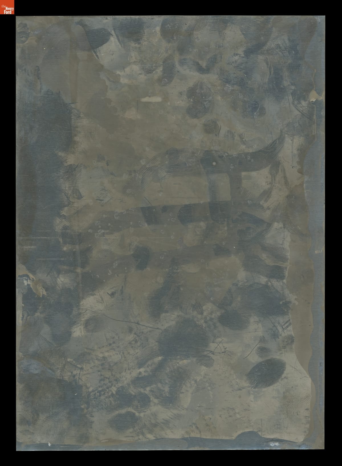In 2019, The Henry Ford's staff and production partners filmed a story about tintype photography for the weekly television show, The Henry Ford's Innovation Nation. A modern-day tintypist used traditional methods to create this tintype photograph of Mo Rocca, the show's host, and Jeanine Head Miller, curator of domestic life. They struck a pose typical of the mid-1800s outside the Greenfield Village Tintype Studio.