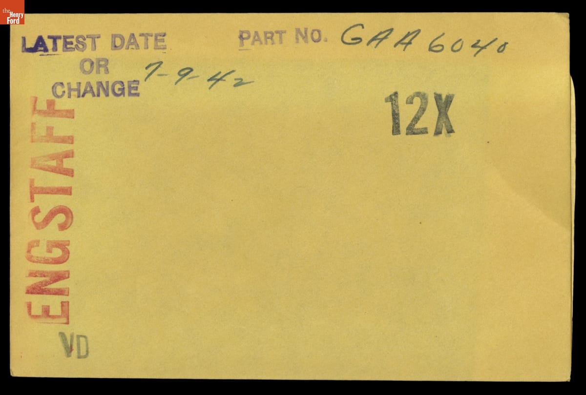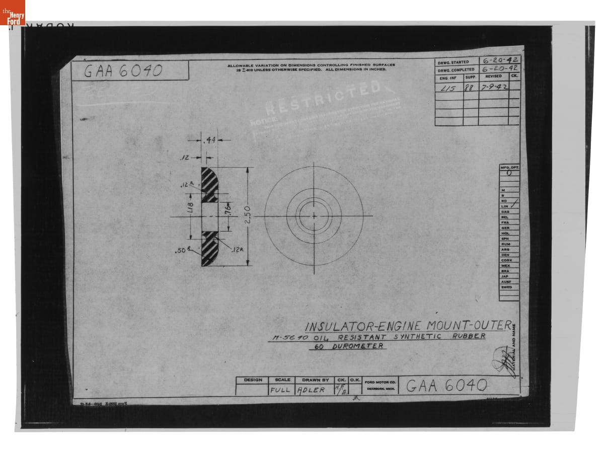 The Ford Motor Company created over a million parts drawings from 1903 to 1957. Many of these drawings specify engineering requirements for the components of Ford-made vehicles--including automobiles, trucks, tractors, military vehicles and Tri-motor airplanes. Others document assembly components, stages of casting and forging, or experimental designs. Beginning in the 1940s, Ford transferred the drawings to microfilm.