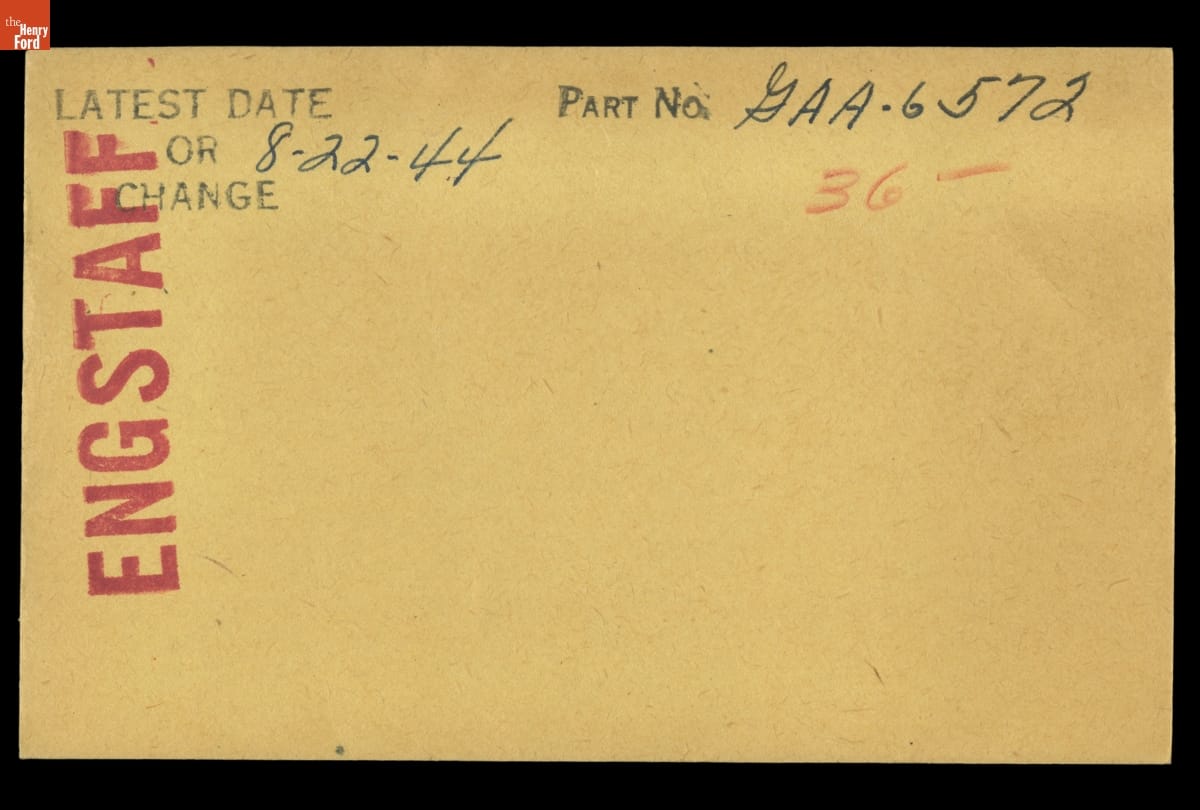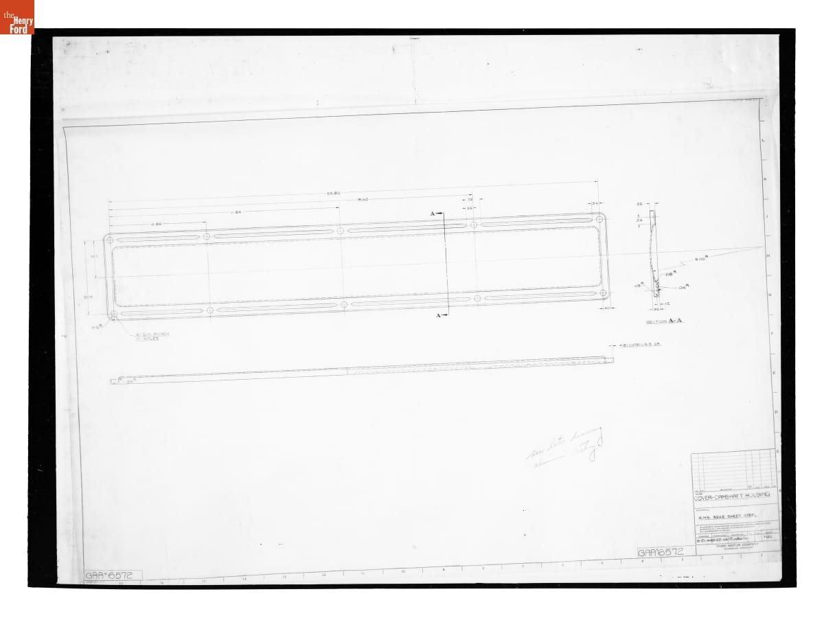 The Ford Motor Company created over a million parts drawings from 1903 to 1957. Many of these drawings specify engineering requirements for the components of Ford-made vehicles--including automobiles, trucks, tractors, military vehicles and Tri-motor airplanes. Others document assembly components, stages of casting and forging, or experimental designs. Beginning in the 1940s, Ford transferred the drawings to microfilm.