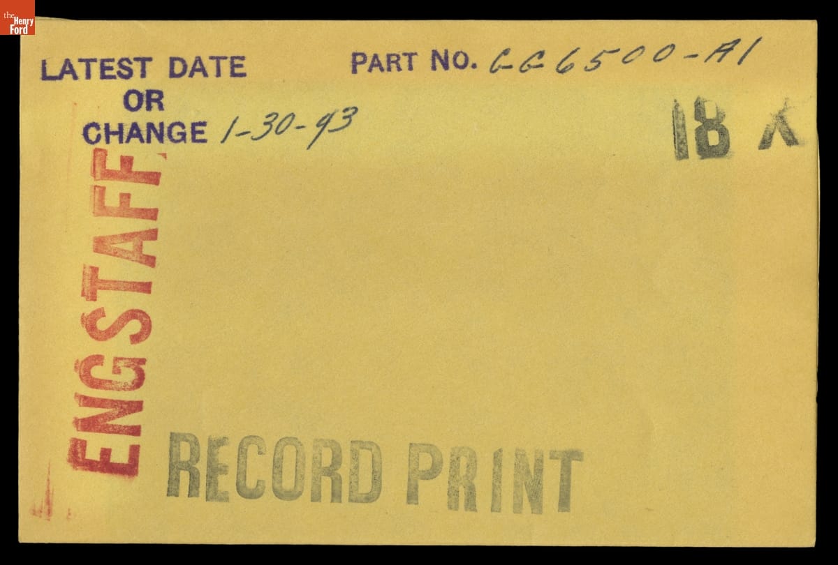 The Ford Motor Company created over a million parts drawings from 1903 to 1957. Many of these drawings specify engineering requirements for the components of Ford-made vehicles--including automobiles, trucks, tractors, military vehicles and Tri-motor airplanes. Others document assembly components, stages of casting and forging, or experimental designs. Beginning in the 1940s, Ford transferred the drawings to microfilm.