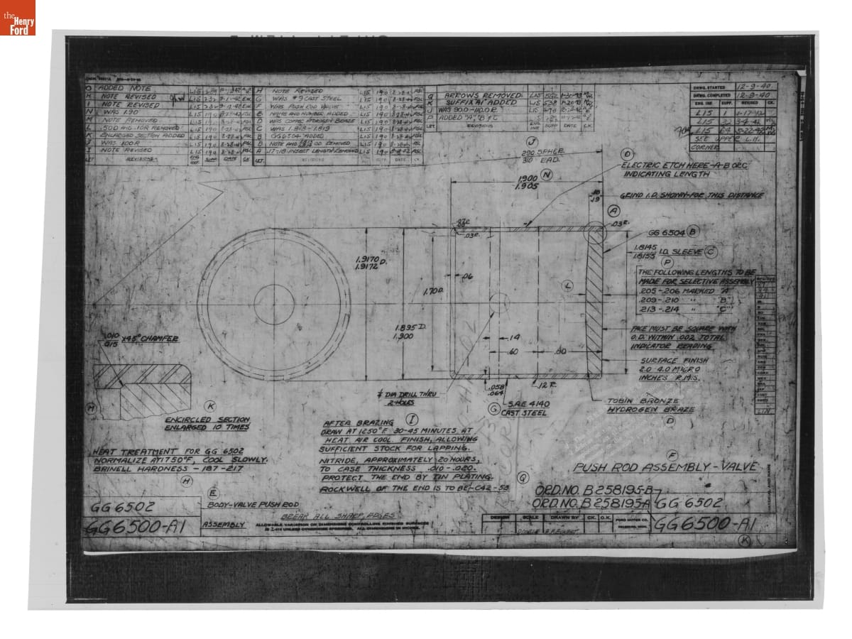 Drawing, "Push Rod Assembly - Valve," Ford V-12 Aircraft Engine (GG Aero Engine), January 30, 1943