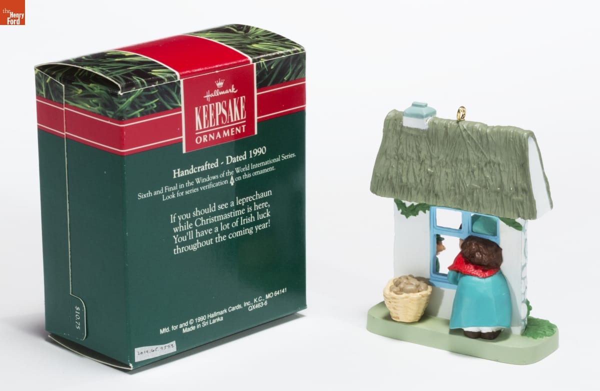Hallmark / KEEPSAKE / ORNAMENT / Handcrafted - Dated 1990 / Sixth and final in the Windows of the World International Series. / Look for series verification 6 on this ornament. / If you should see a leprechaun / while Christmastime is here, / You'll have a lot of Irish luck / throughout the coming year! / Mfd. for and (C) 1990 Hallmark Cards, Inc., K.C., MO 64141 / Made in Sri Lanka QX463-6