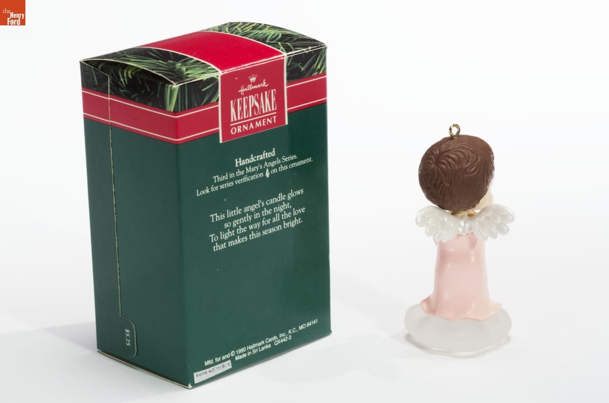 Hallmark / KEEPSAKE / ORNAMENT / Handcrafted / Third in the Mary's Angels Series. / Look for series verification 3 on this ornament. / This little angel's candle glows / so gently in the night, / To light the way for all the love / that makes this season bright. / Mfd. for and (C) 1990 Hallmark Cards, Inc., K.C., MO 64141 / Made in Sri Lanka QX442-3