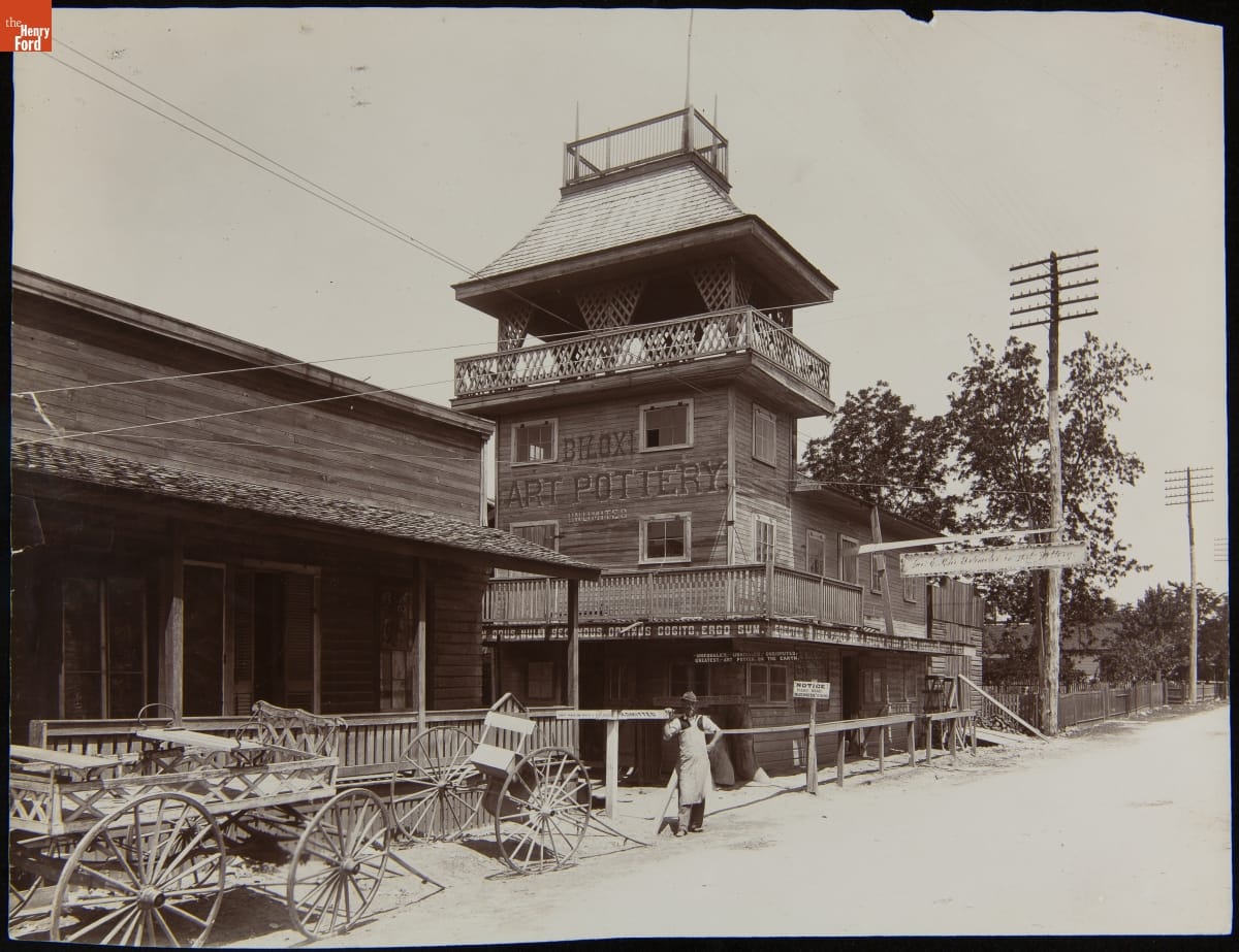 George E. Ohr Standing outside Biloxi Art Pottery Unlimited, Biloxi, Mississippi, 1901