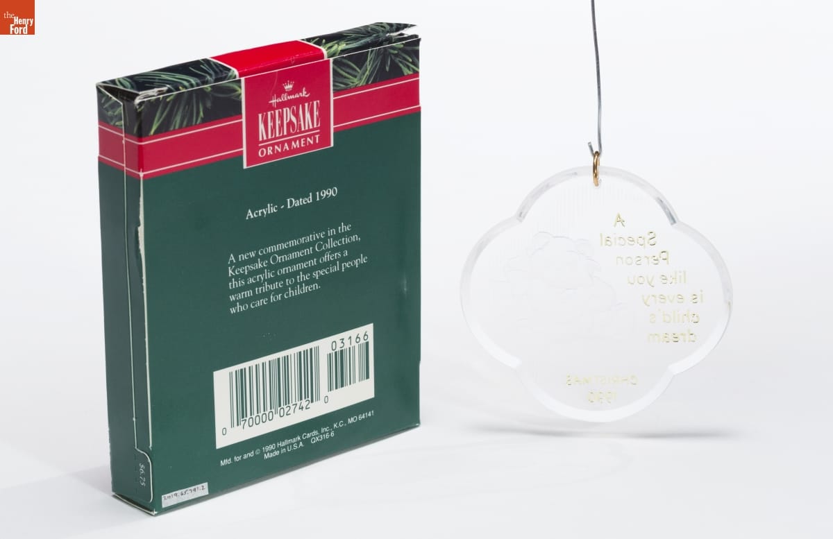 Hallmark / KEEPSAKE / ORNAMENT / Acrylic - Dated 1990 / A new commemorative in the / Keepsake Ornament Collection, / this acrylic ornament offers a / warm tribute to the special people / who care for children. / Mfd. for and (C) 1990 Hallmark Cards, Inc., K.C., MO 64141 / Made in U.S.A. QX316-6