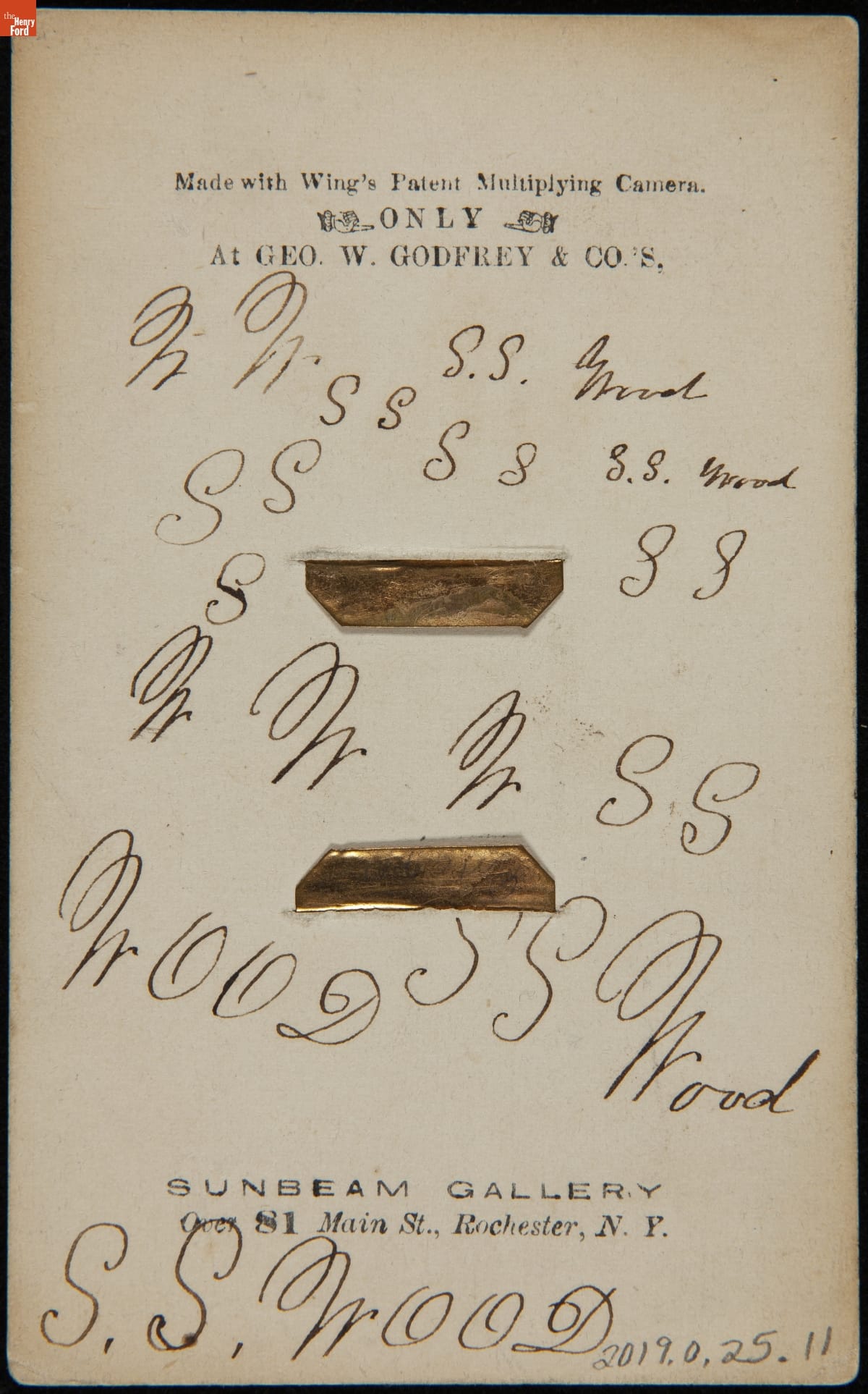 back: variations on "S.S. Wood" are written across the back of the paper frame