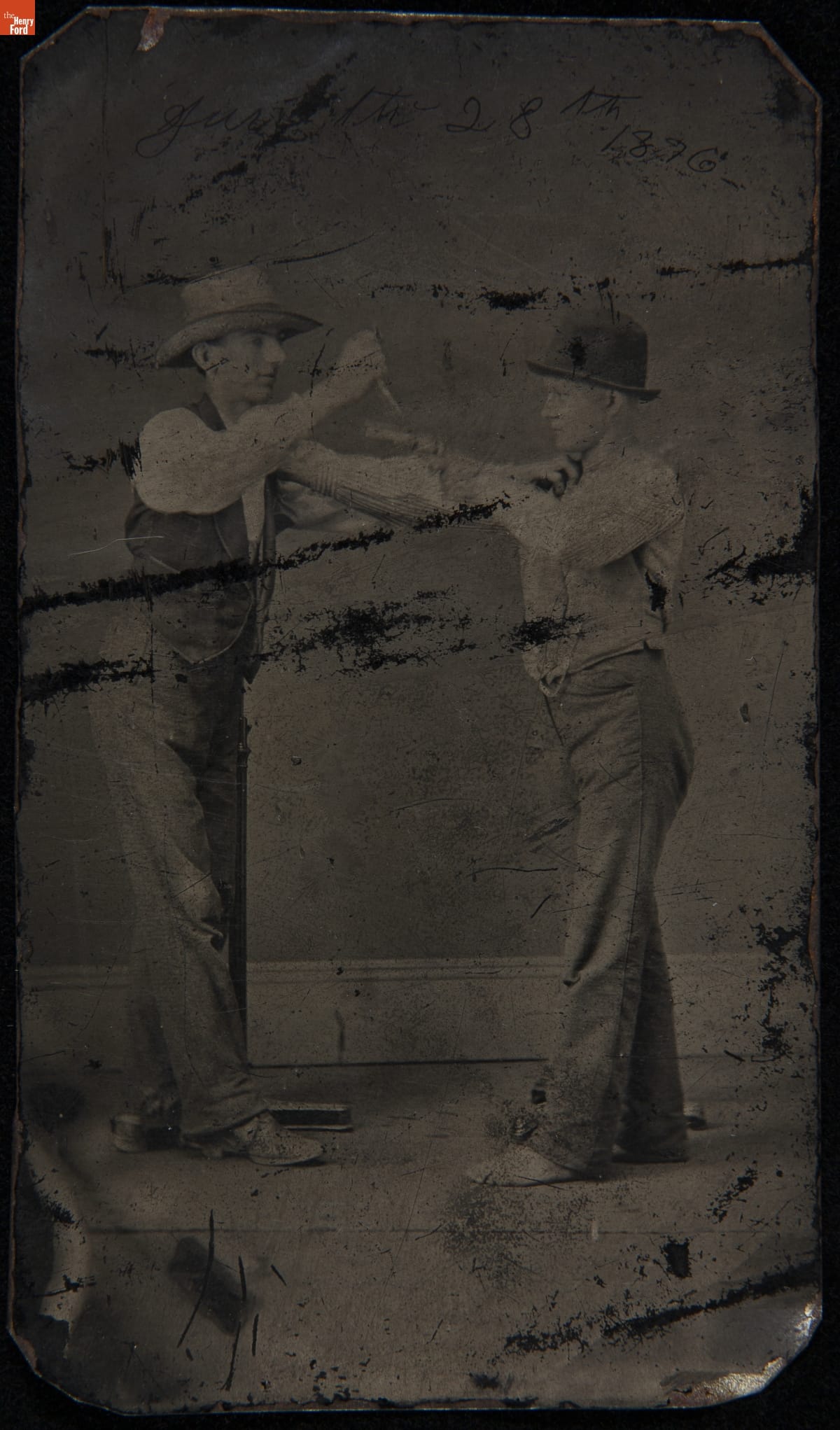 Staged Portrait of Two Teenage Boys Fighting, June 28, 1876