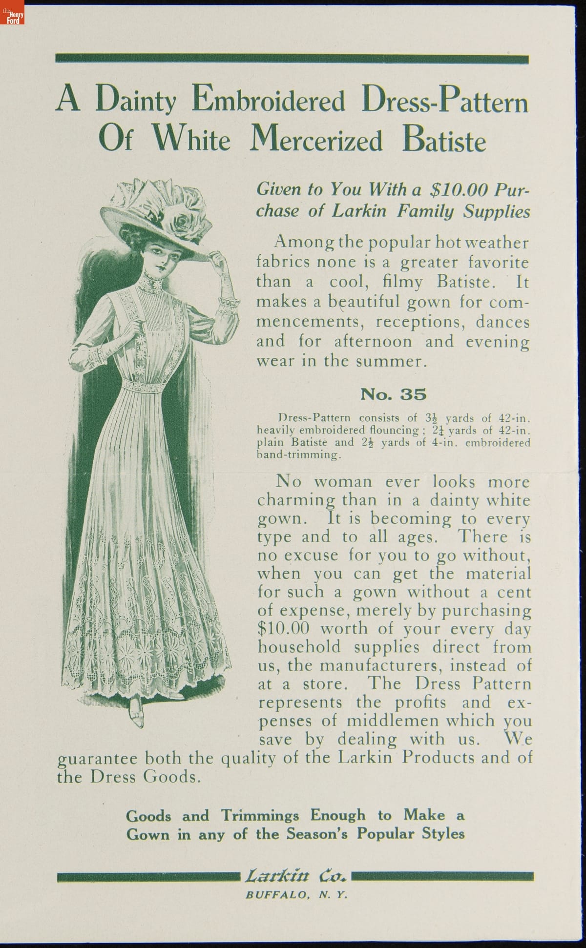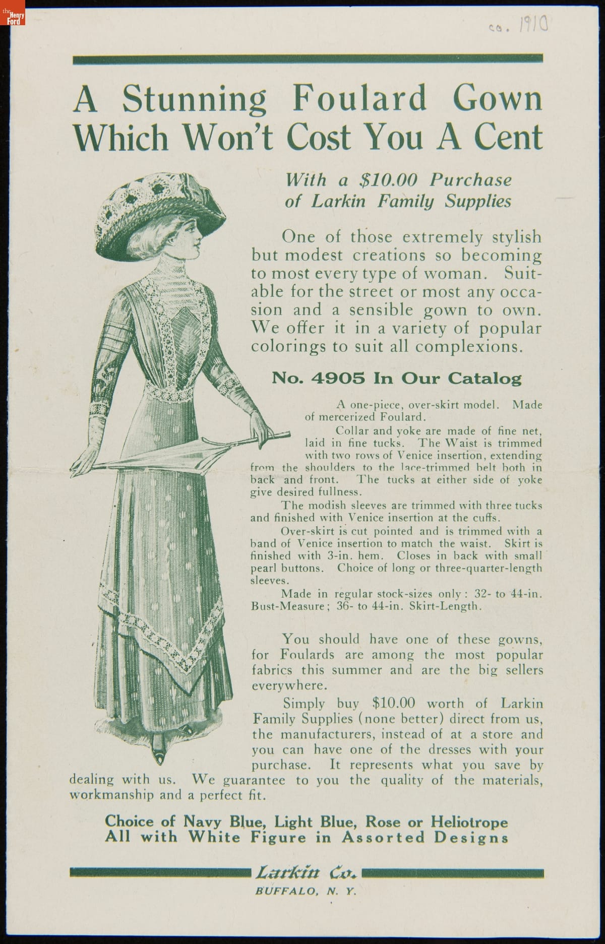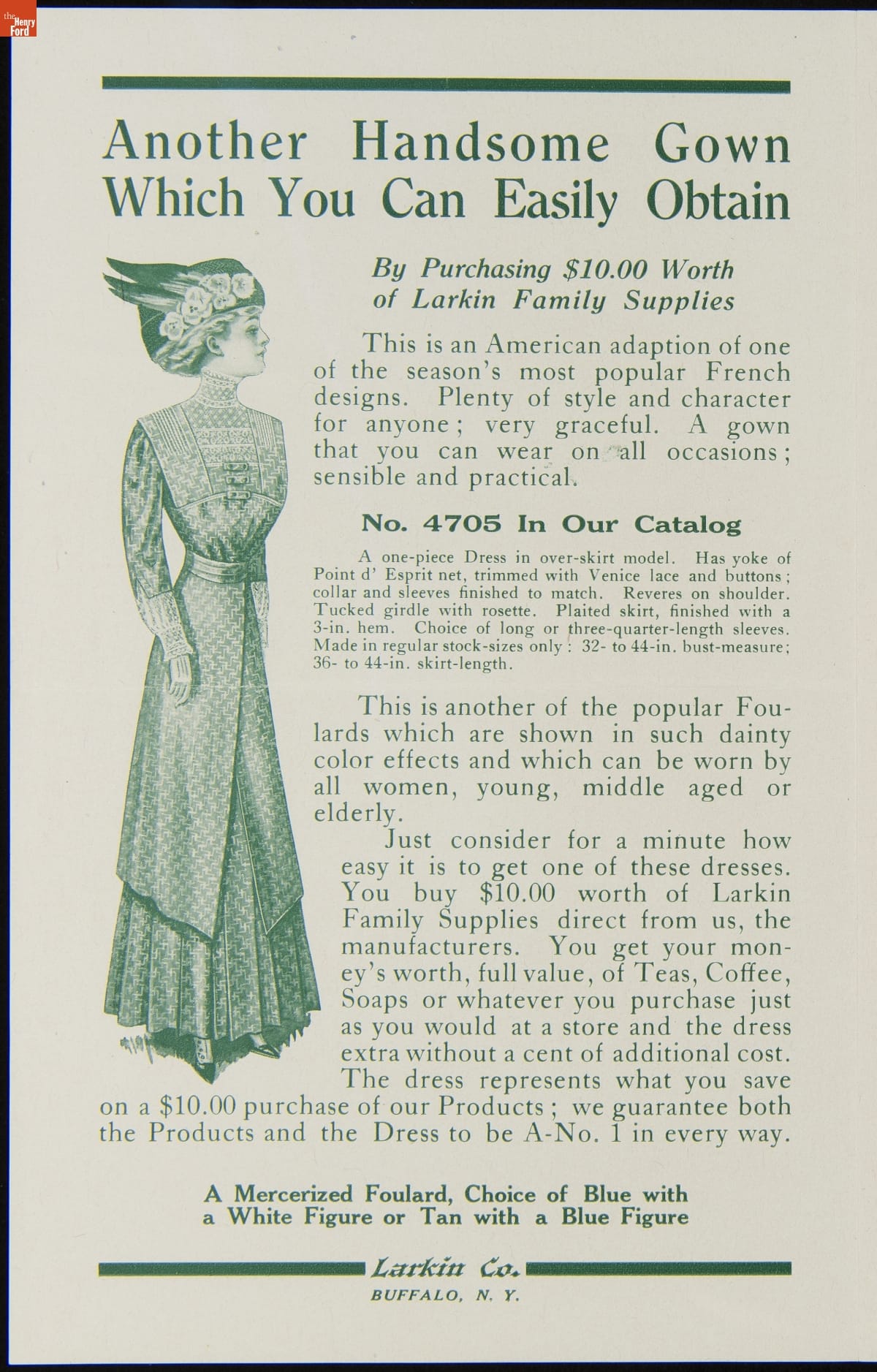 Larkin Company Trade Catalog, "A Stunning Foulard Gown Which Won't Cost You a Cent," circa 1910