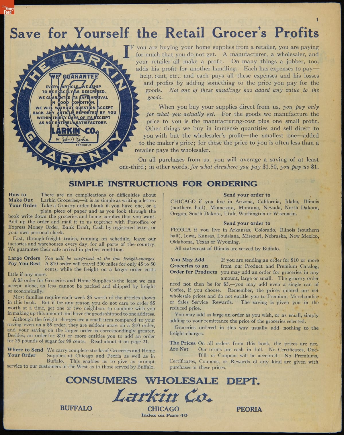 THF297865 / Larkin Company Trade Catalog, "Pure Food Groceries and Home Supplies," April 1915 / pg. 1