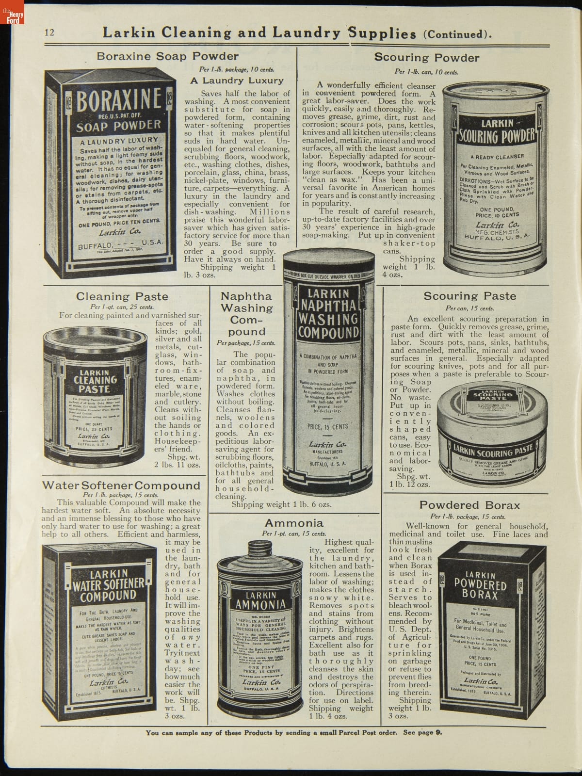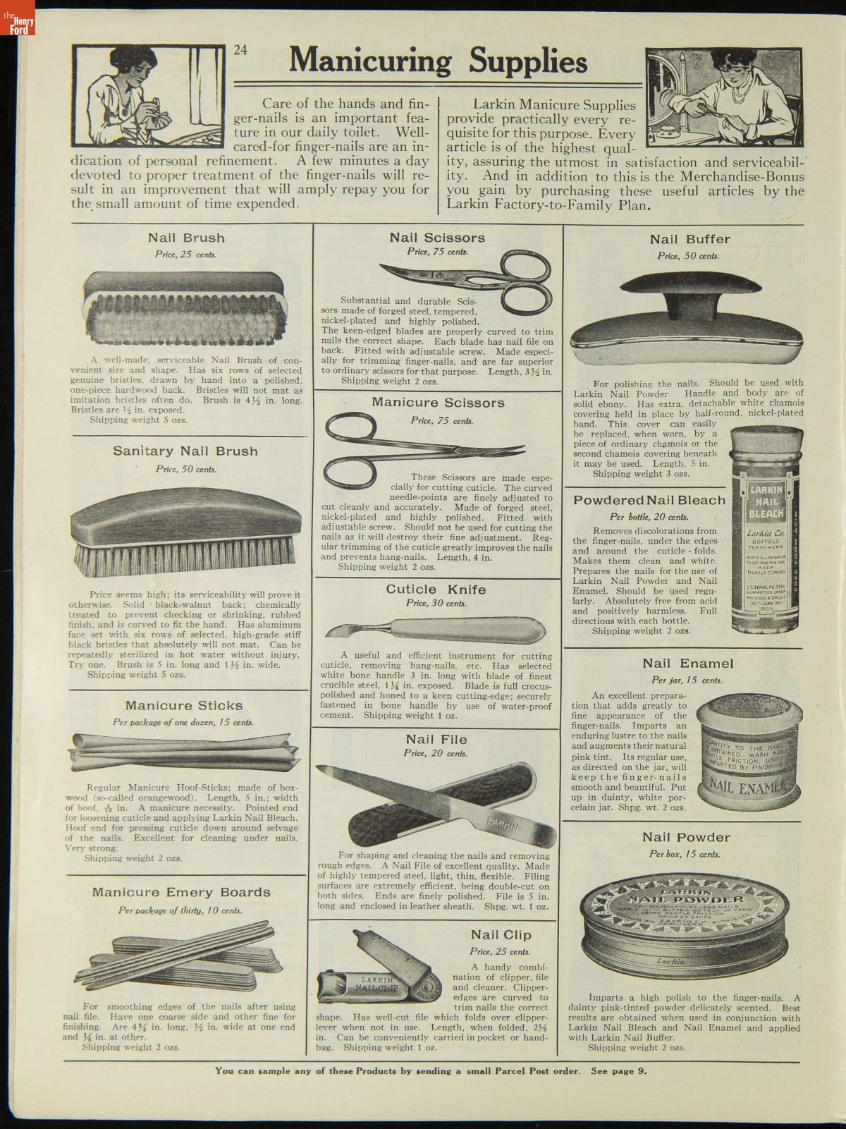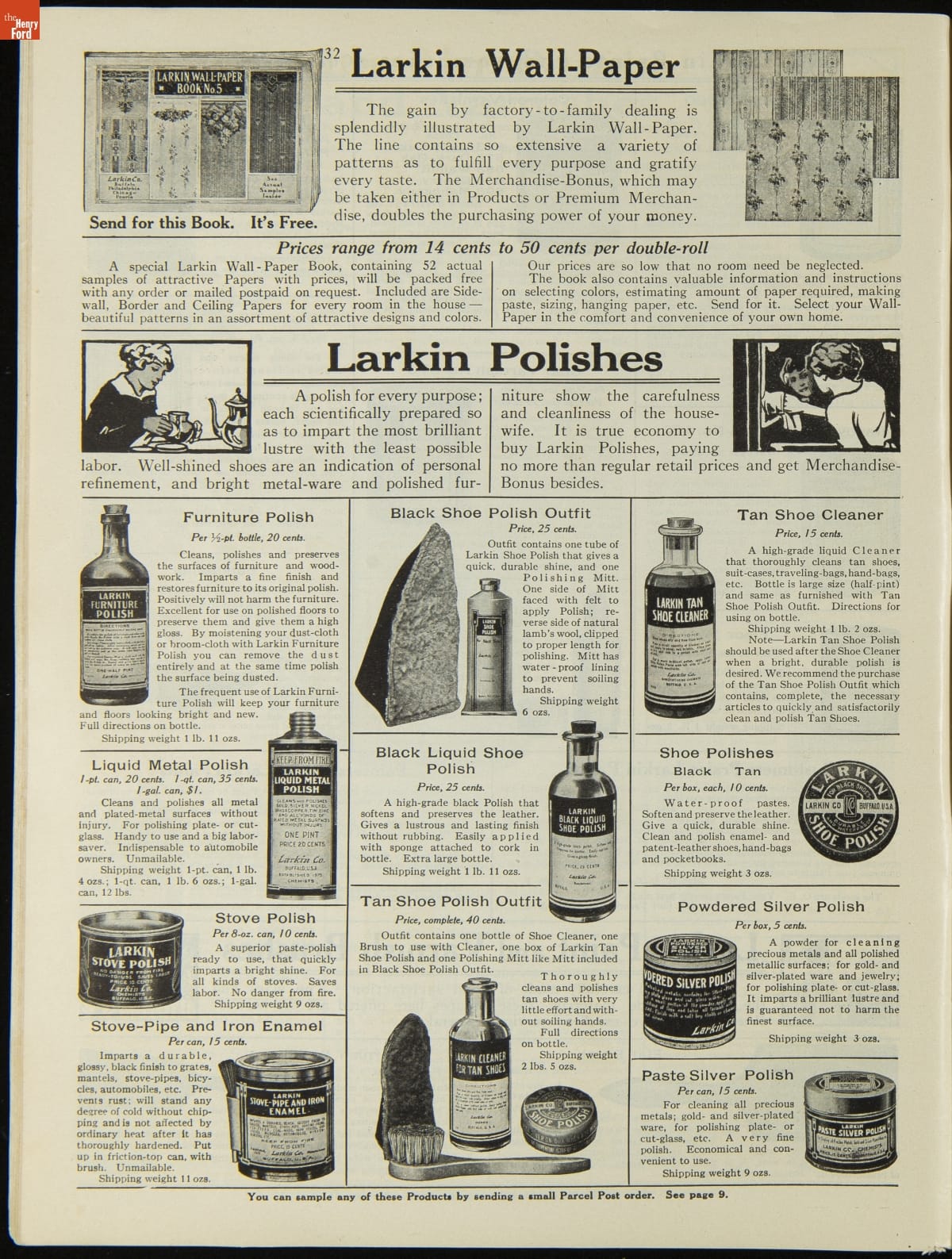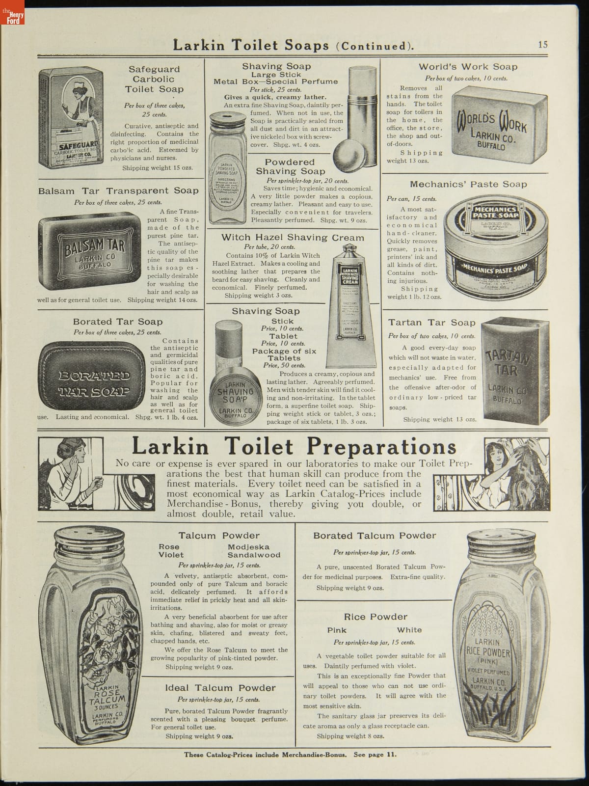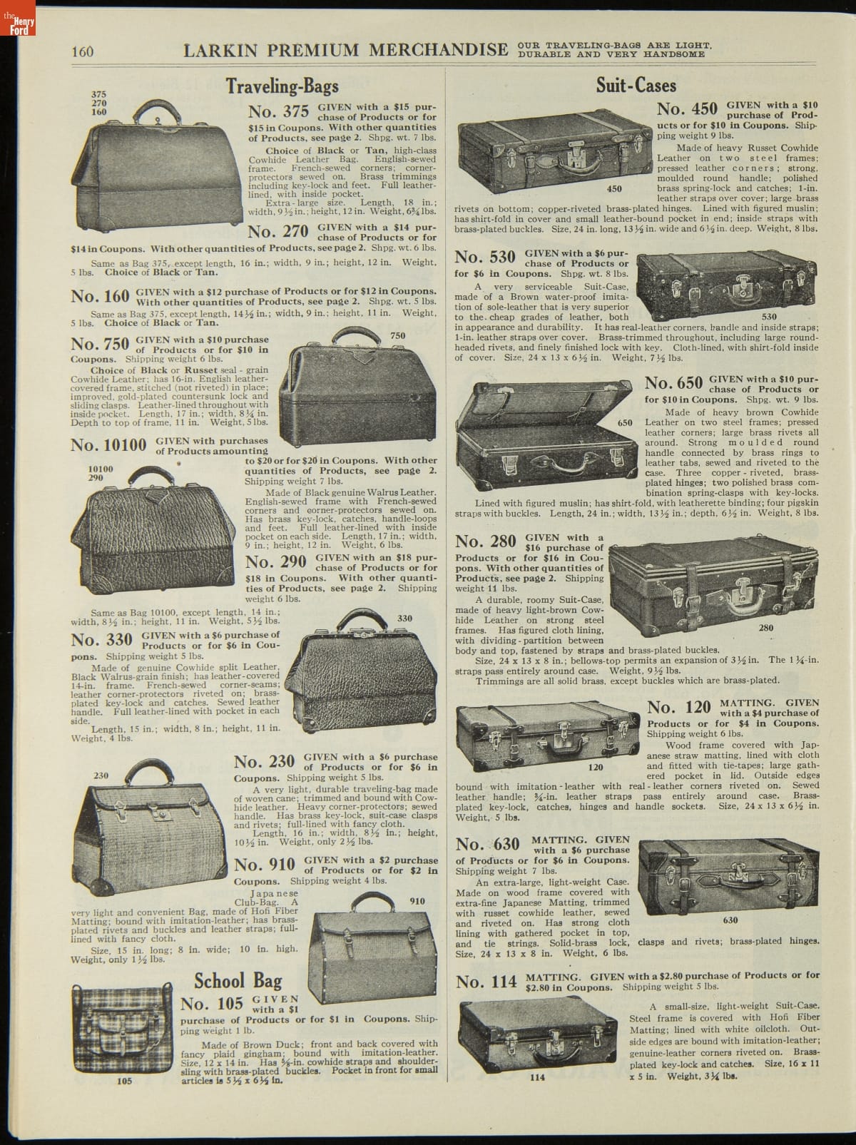 John D. Larkin established a soap manufacturing company in 1875. He hired his brother-in-law, Elbert Hubbard, as a salesman. Hubbard developed "The Larkin Idea," a plan that sold goods directly to consumers through mail-order catalogs and offered incentivizing giveaways. It was a success. By the early 1900s, Larkin's catalogs contained pages of products and even more pages of premiums from which customers could choose.
