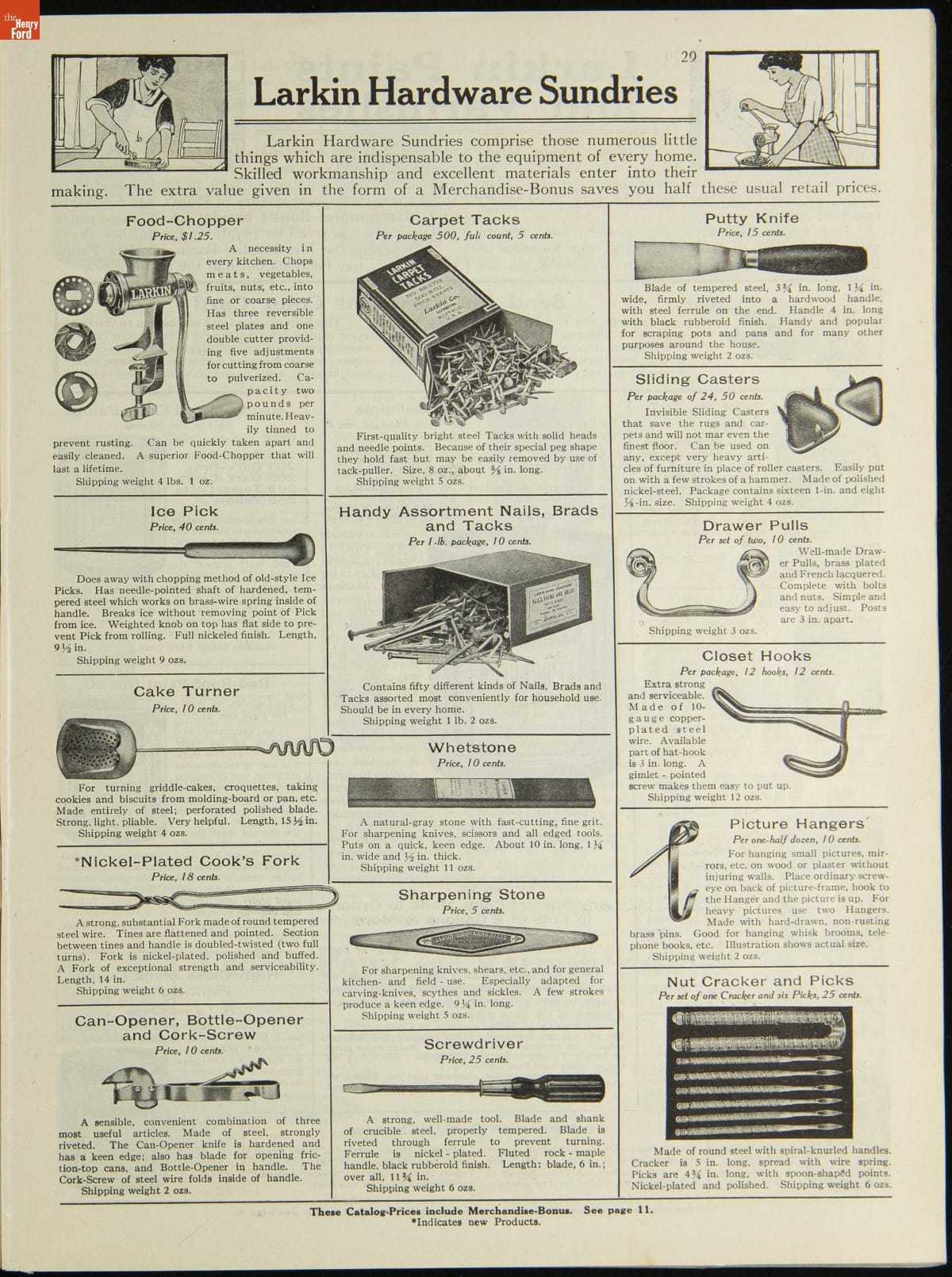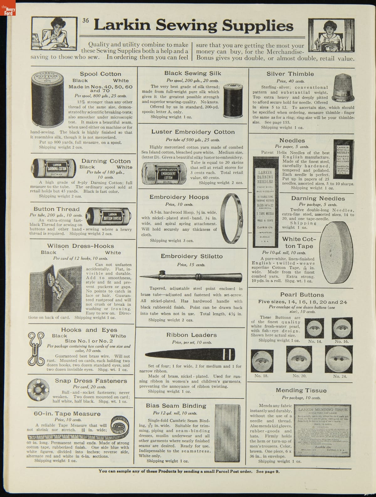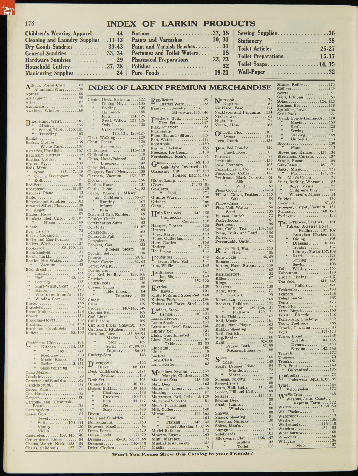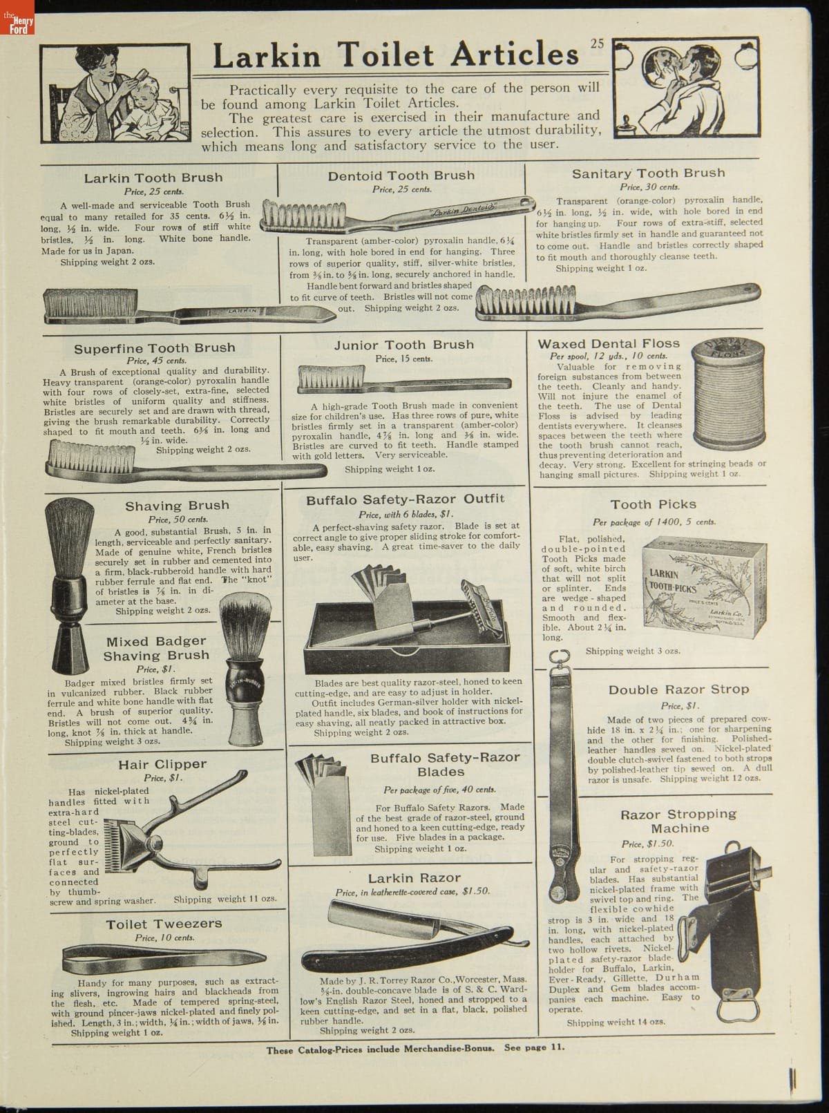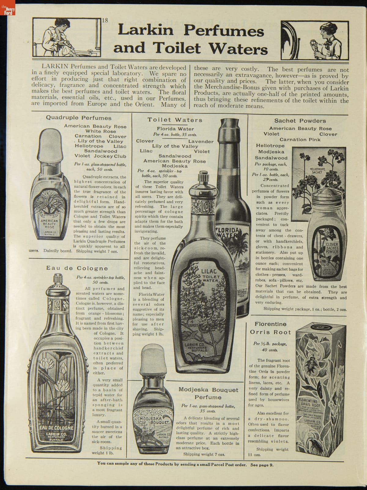 John D. Larkin established a soap manufacturing company in 1875. He hired his brother-in-law, Elbert Hubbard, as a salesman. Hubbard developed "The Larkin Idea," a plan that sold goods directly to consumers through mail-order catalogs and offered incentivizing giveaways. It was a success. By the early 1900s, Larkin's catalogs contained pages of products and even more pages of premiums from which customers could choose.