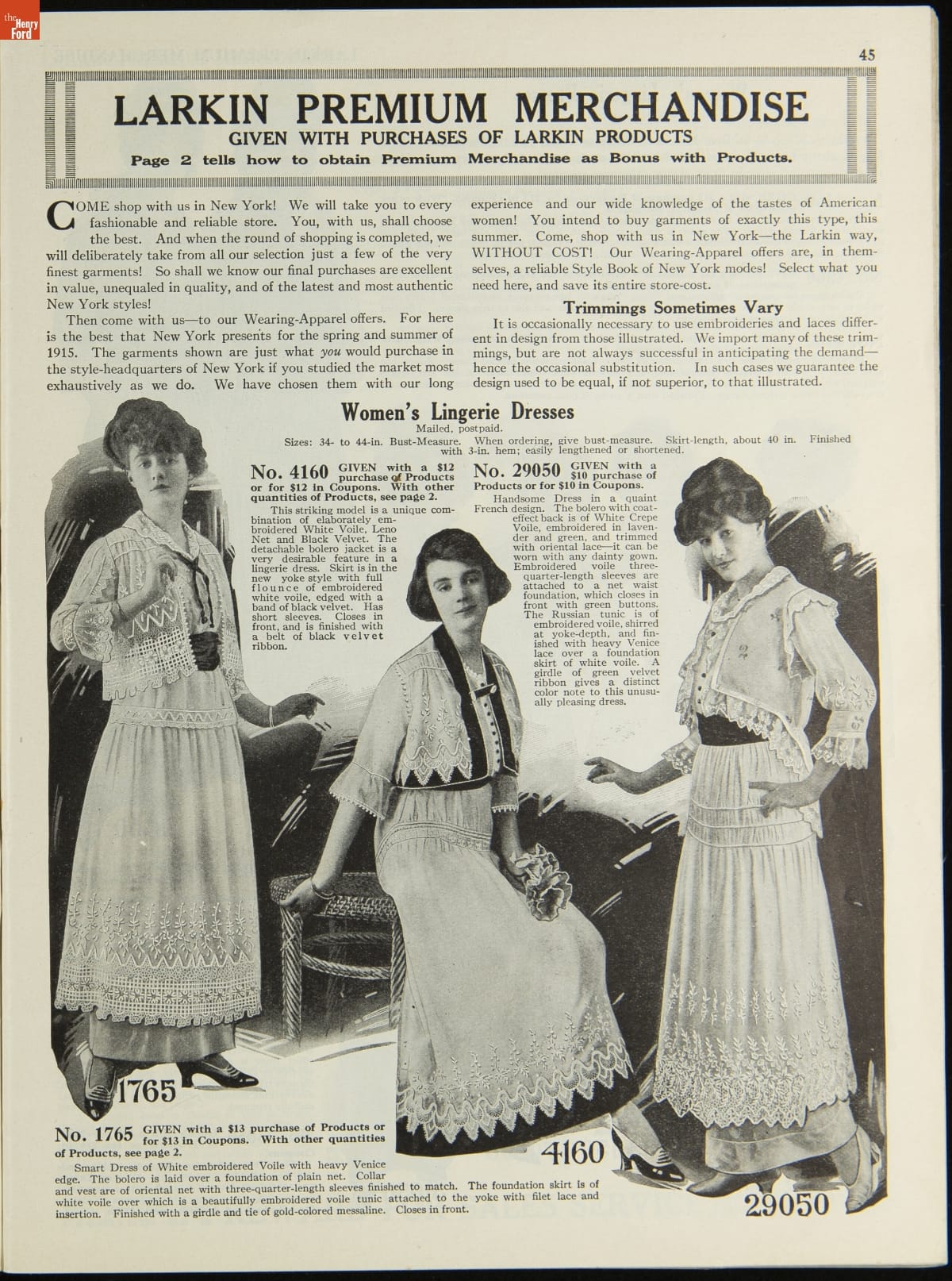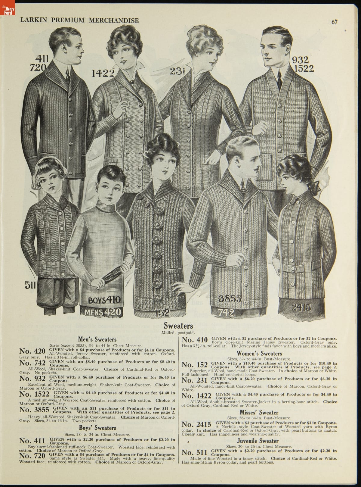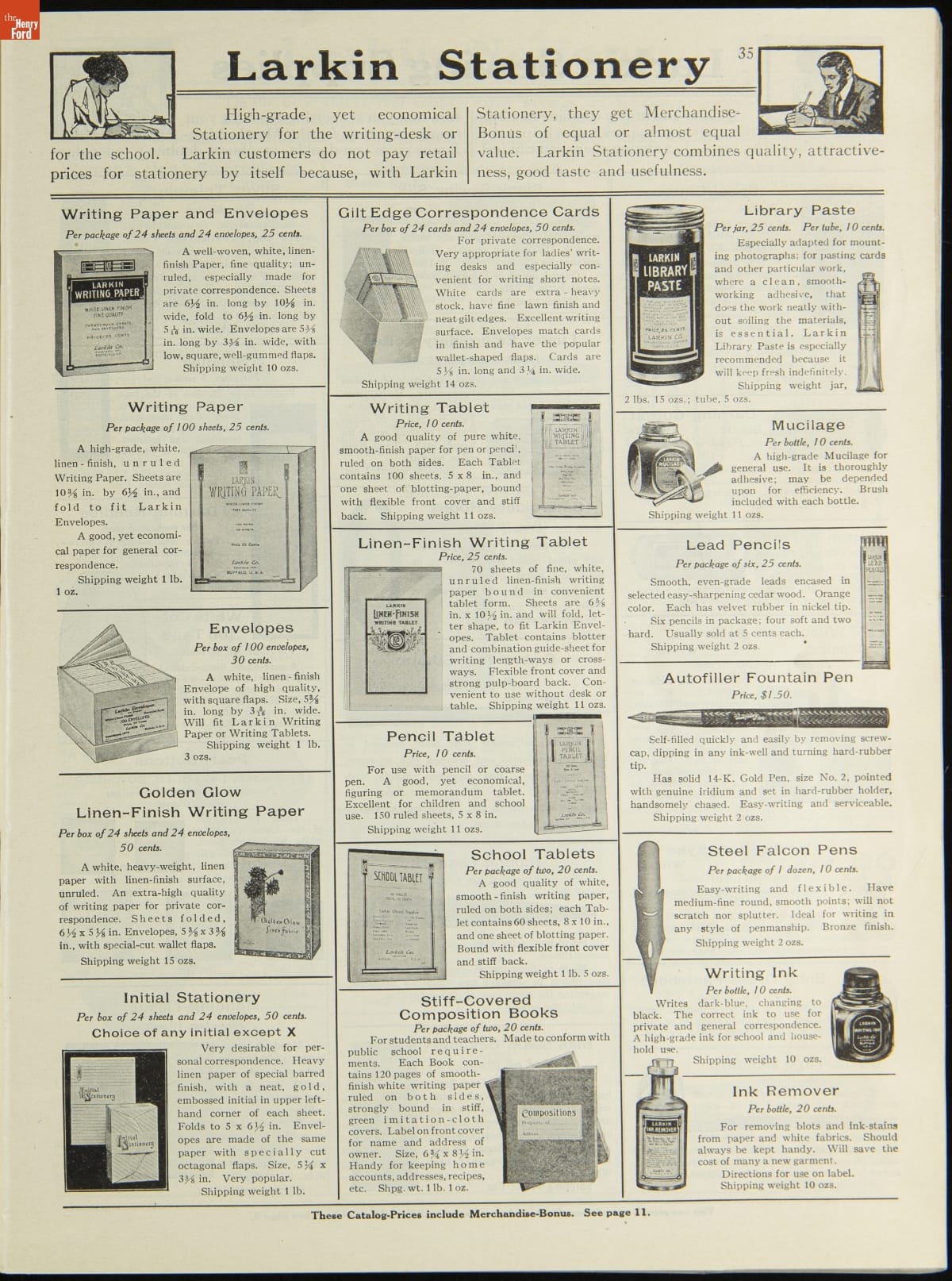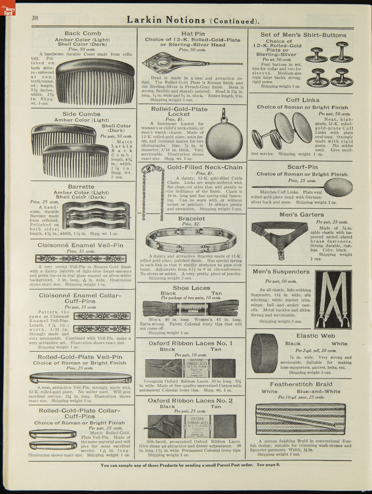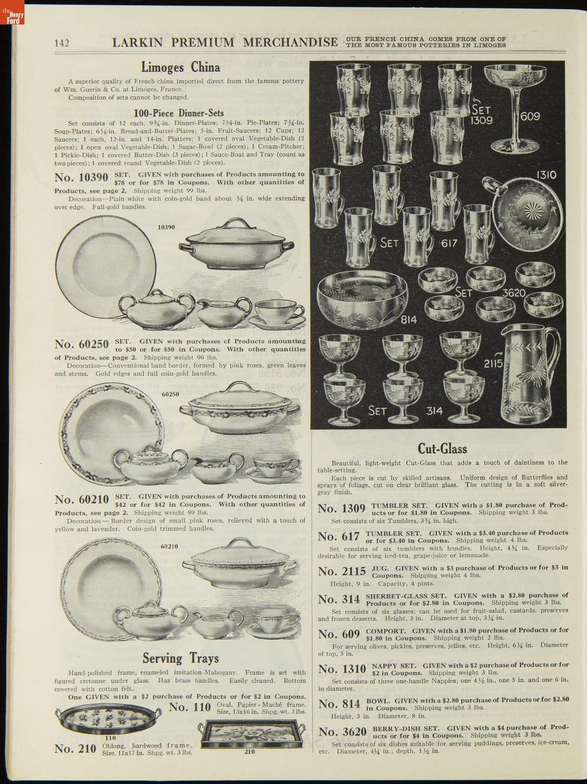 John D. Larkin established a soap manufacturing company in 1875. He hired his brother-in-law, Elbert Hubbard, as a salesman. Hubbard developed "The Larkin Idea," a plan that sold goods directly to consumers through mail-order catalogs and offered incentivizing giveaways. It was a success. By the early 1900s, Larkin's catalogs contained pages of products and even more pages of premiums from which customers could choose.