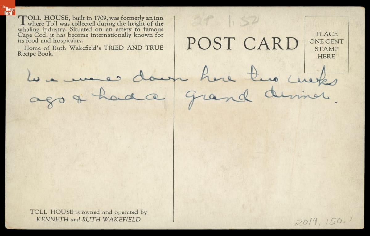 Ruth Wakefield was a dietitian and food lecturer until she and her husband Kenneth opened the Toll House Inn restaurant in Whitman, Massachusetts, in 1930. At the Toll House Inn, Wakefield served home-cooked meals for tourists and local customers. And, in the late 1930s, she "invented" what would become America's favorite cookie -- the chocolate chip.